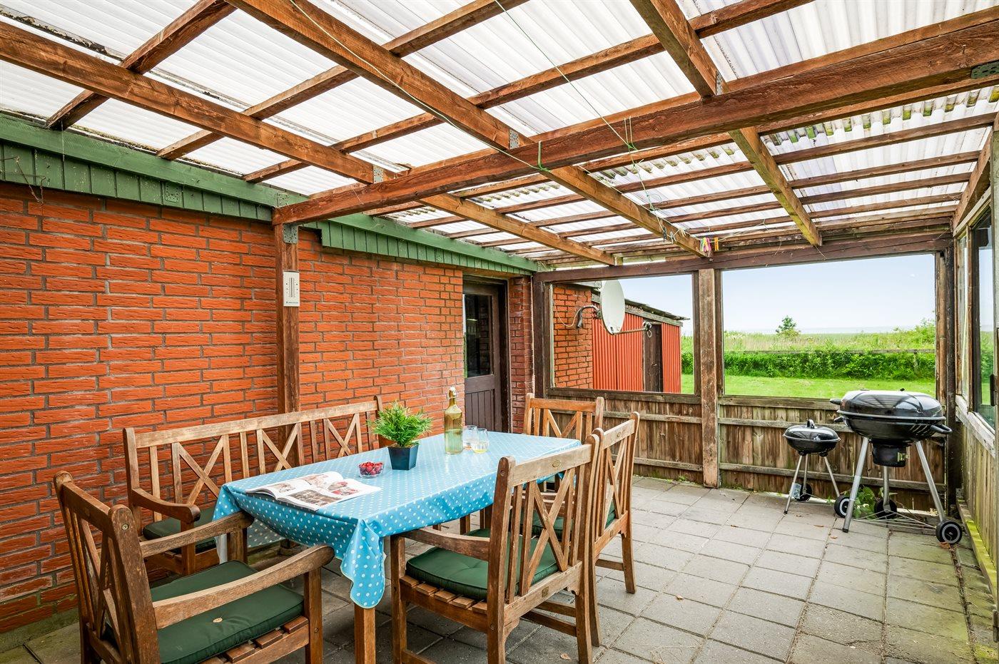 Dette sommerhus i sten, bygget i 1978 og moderniseret i 2004, ligger på en ugeneret, stor naturgrund med den skønneste udsigt over Vadehavet. Såvel åben som overdækket terrasse med havemøbler. Badeværelse med bruser og gulvvarme. Gæstetoilet. Køkkenet er udstyret med bl.a. mikrobølgeovn og opvaskemaskine samt udgang til en skøn, overdækket terrasse. Den lyse opholdsstue er indrettet med brændeovn, TV med parabolantenne, video og stereoanlæg med CD-afspiller. Sovepladserne er fordelt på 3 rummelige værelser; 2 med dobbeltseng og 1 med 2 enkeltsenge. Desuden gratis ADSL-internetforbindelse (computer skal medbringes), vaskemaskine, tørretumbler samt fryser til rådighed og der er installeret energibesparende varmepumpe. Til de små feriegæster er der gynge og sandkasse på grunden. Et godt beliggende sommerhus, kun 50 m fra Vadehavet.