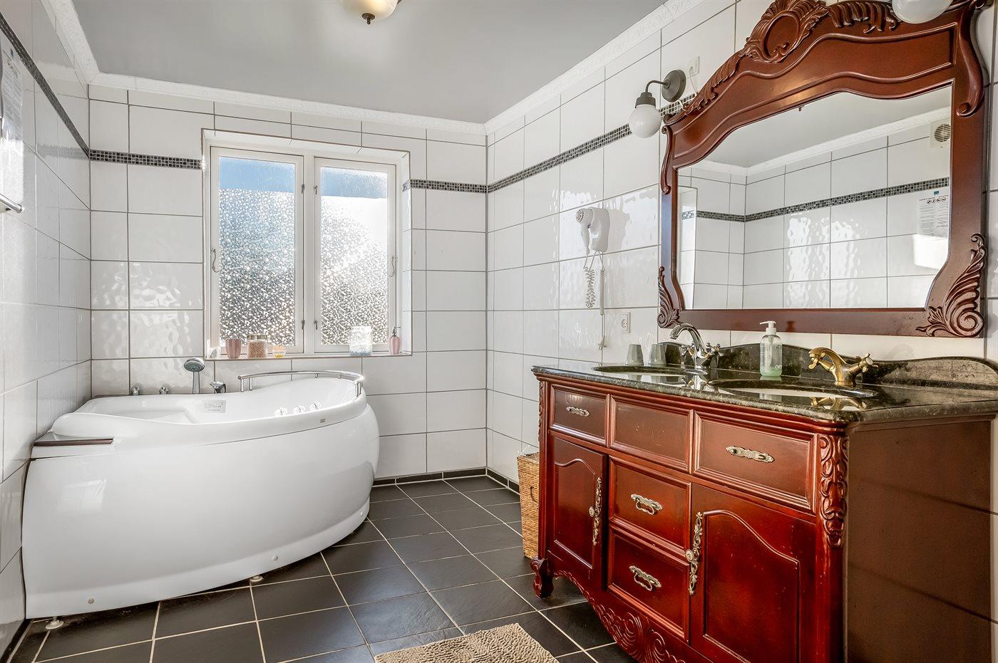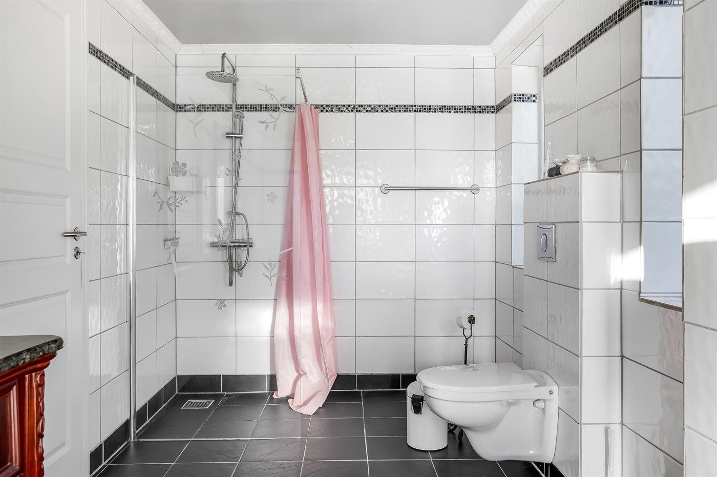 Der er 2 badeværelser med bruseniche og 2 toiletter. Der er gulvvarme på 2 badeværelser.