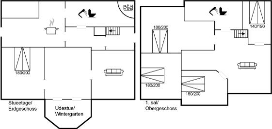Der er i alt 5 soveværelser. Sovepladserne fordeler sig på: 10 sovepladser i dobbeltsenge. Derudover er der 1 stk. barneseng.