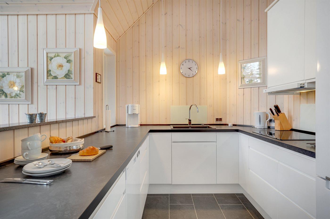 Køkkenet er udstyret med 1 køleskab. Der er 4 induktionskogeplader, varmluftovn, mikrobølgeovn samt opvaskemaskine.