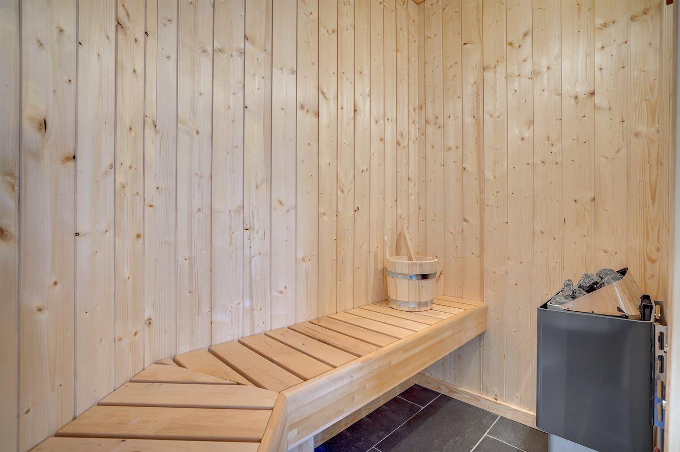 Der er 2 badeværelser med bruseniche og 2 toiletter I saunaen er der mulighed for afslapning.