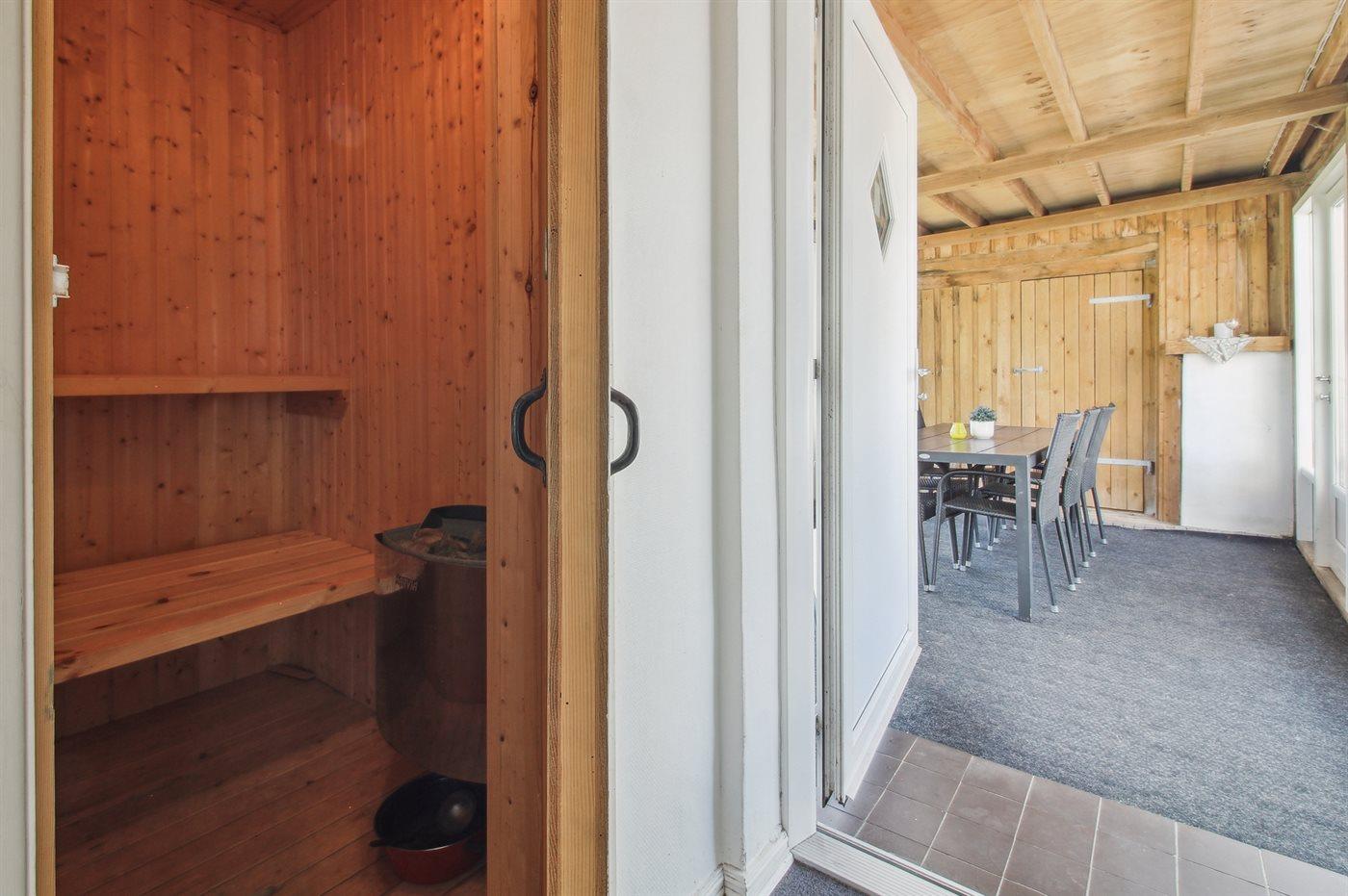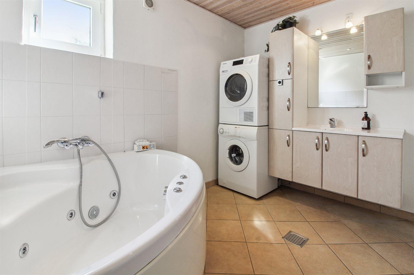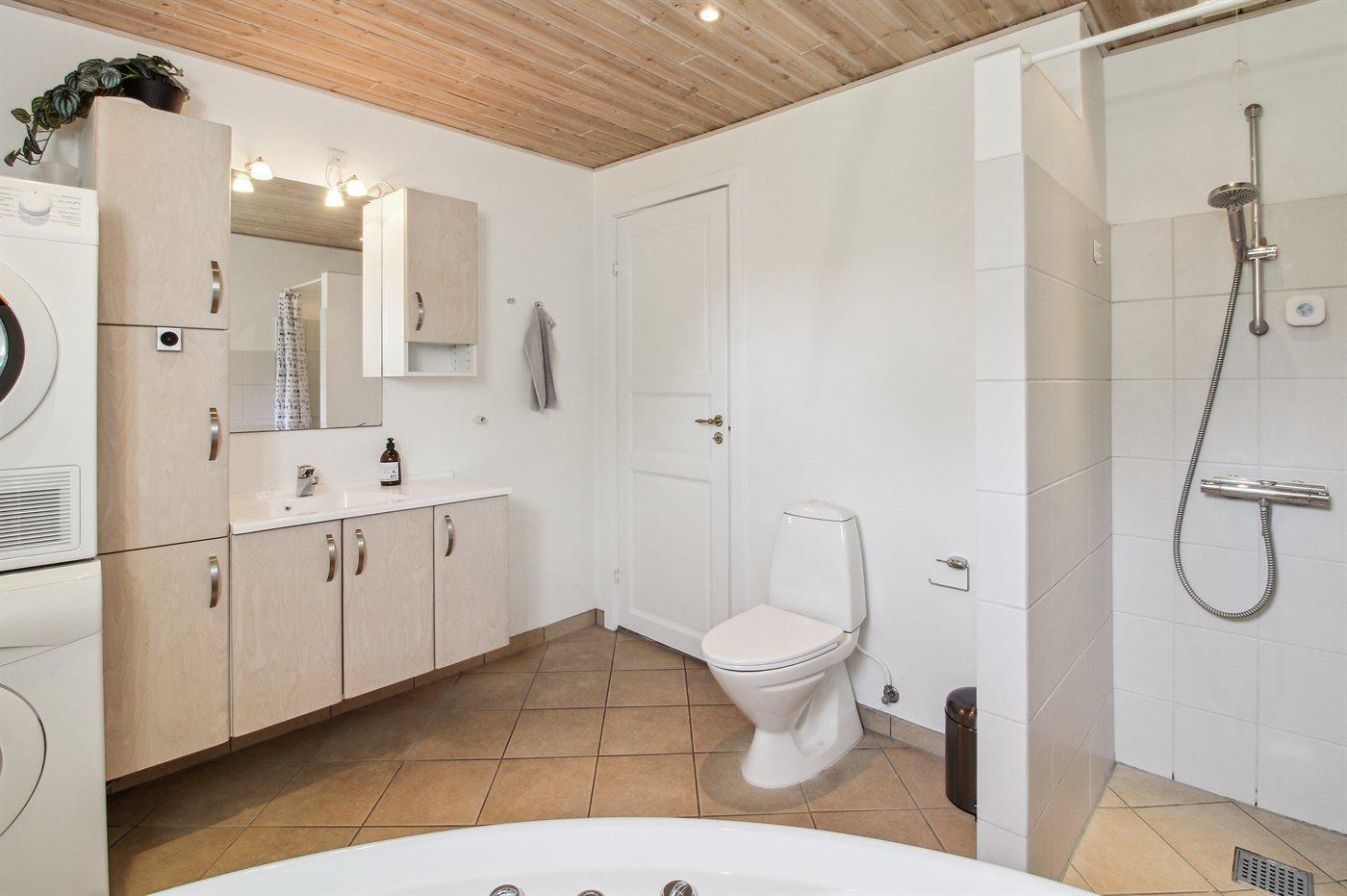 Der er 2 badeværelser med bruseniche og 2 toiletter. Der er gulvvarme på 1 badeværelse. I saunaen er der mulighed for afslapning.