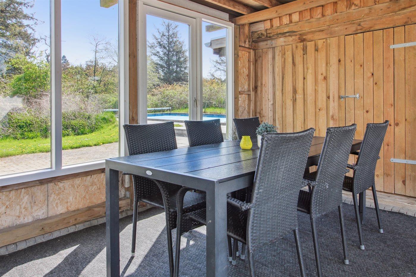Flot sommerhus i sten, beliggende på en stor grund, der er omkranset af træer med udendørs opvarmet swimmingpool, som kan benyttes fra 1. maj til og med 30. september. Huset er lyst og lækkert indrettet. Der findes et værelse med dobbeltseng på husets lille 1. sal. Et virkeligt dejligt sommerhus i naturskønne omgivelser.