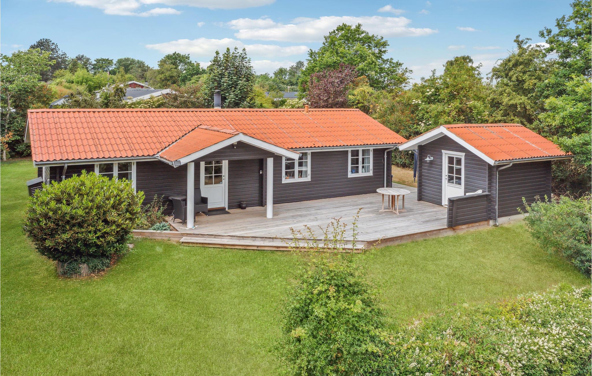 Hyggeligt sommerhus ved Musholm Bugt med terrasse, have og tæt på sandstrand, perfekt til familieferie ved vandet.