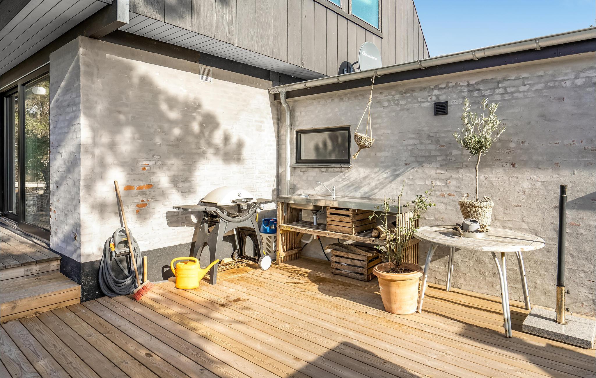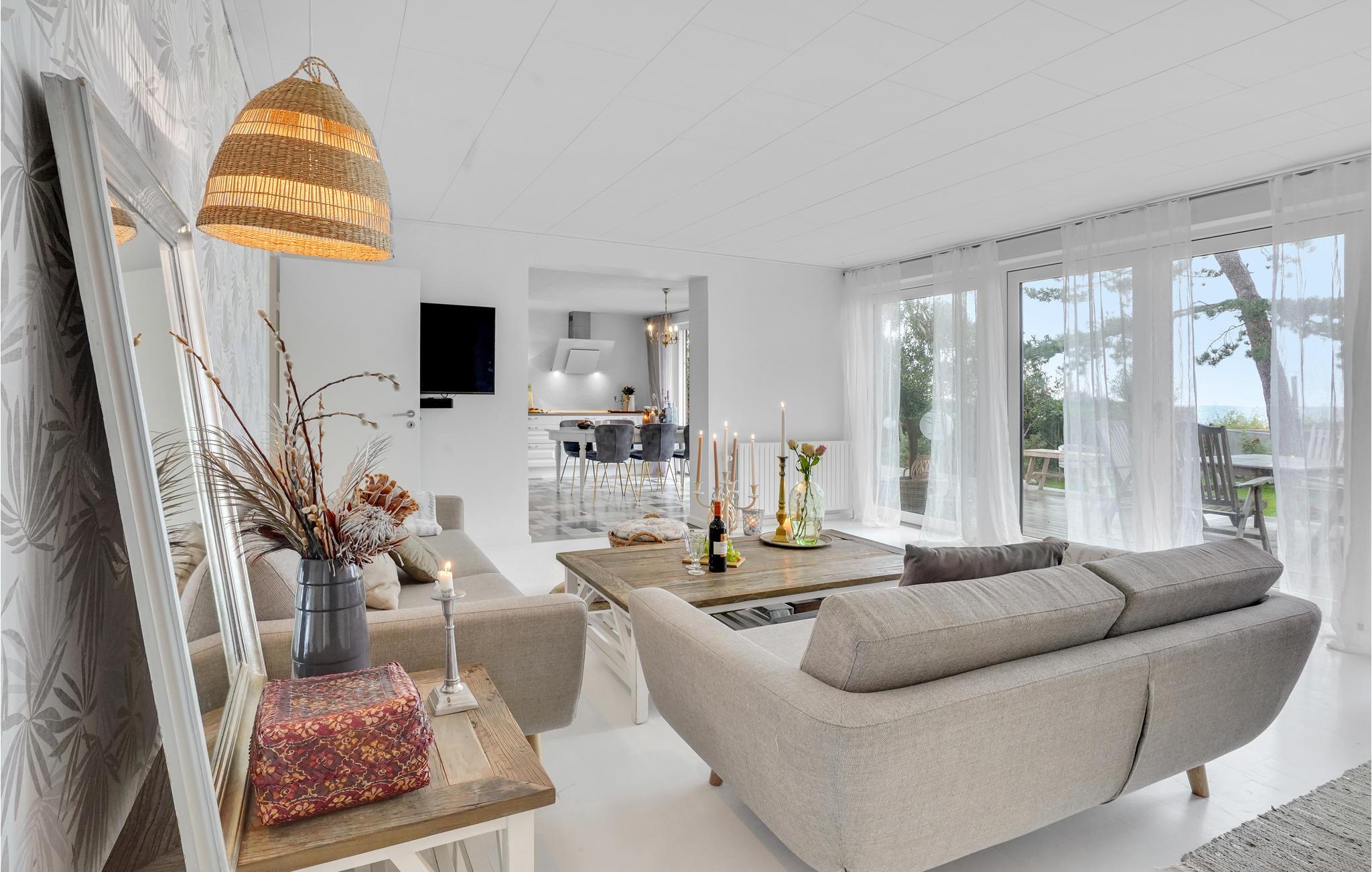 På den skønne åbne terrasse er der rig mulighed for at nyde de solrige dage eller lade roen sænke sig, mens der er tændt op i grillen og den enestående udsigt nydes. For enden af haven er der anlagt en skøn afskærmet udsigtsterrasse, hvorfra I kan nyde den smukke solnedgang.