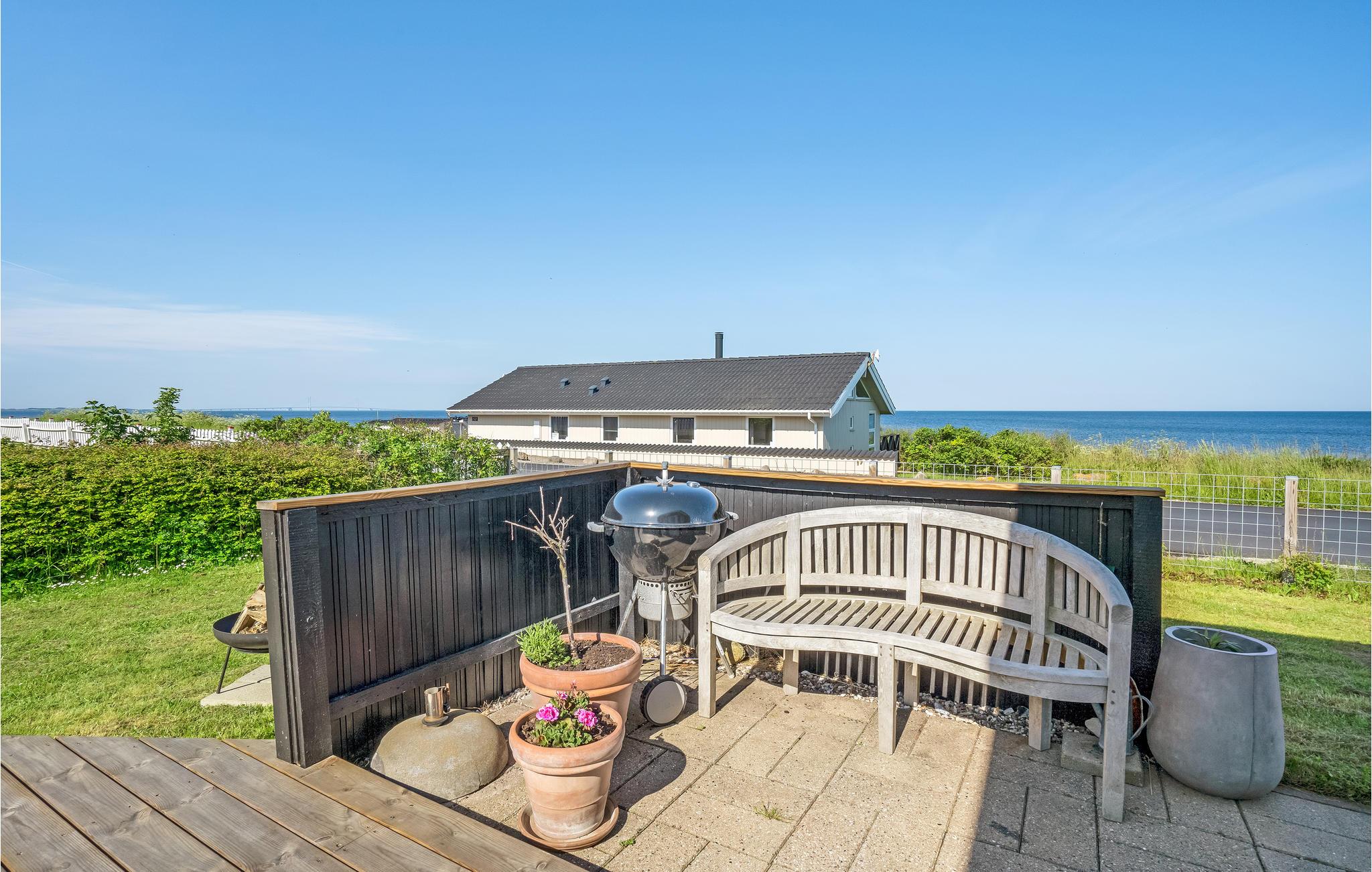 Charmerende fritidshus med panoramaudsigt over Storebælt, direkte adgang til vandet og åben terrasse til afslapning.