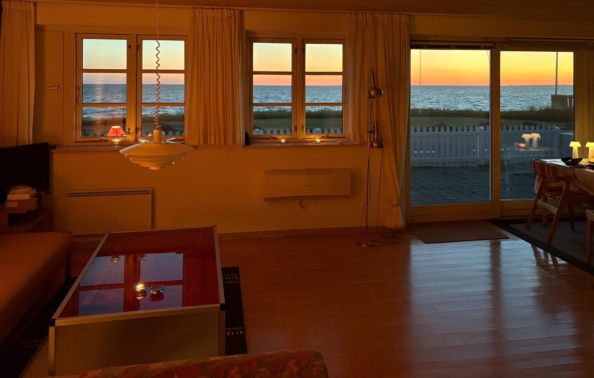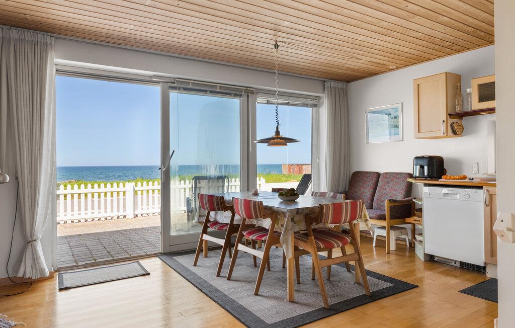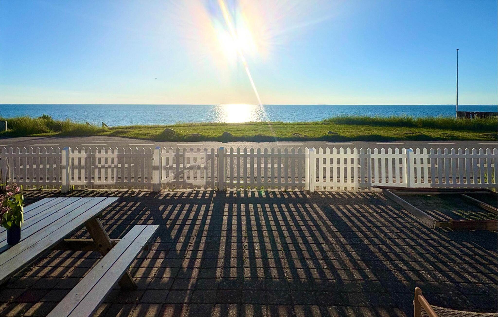 I dette charmerende sommerhus har I en smuk 180 graders udsigt over havet, der ligger kun få skridt væk. Glæd jer til lækre måltider ved spisebordet med udsigt til det glitrende havog til hyggelige spilleaftener i sofaen.