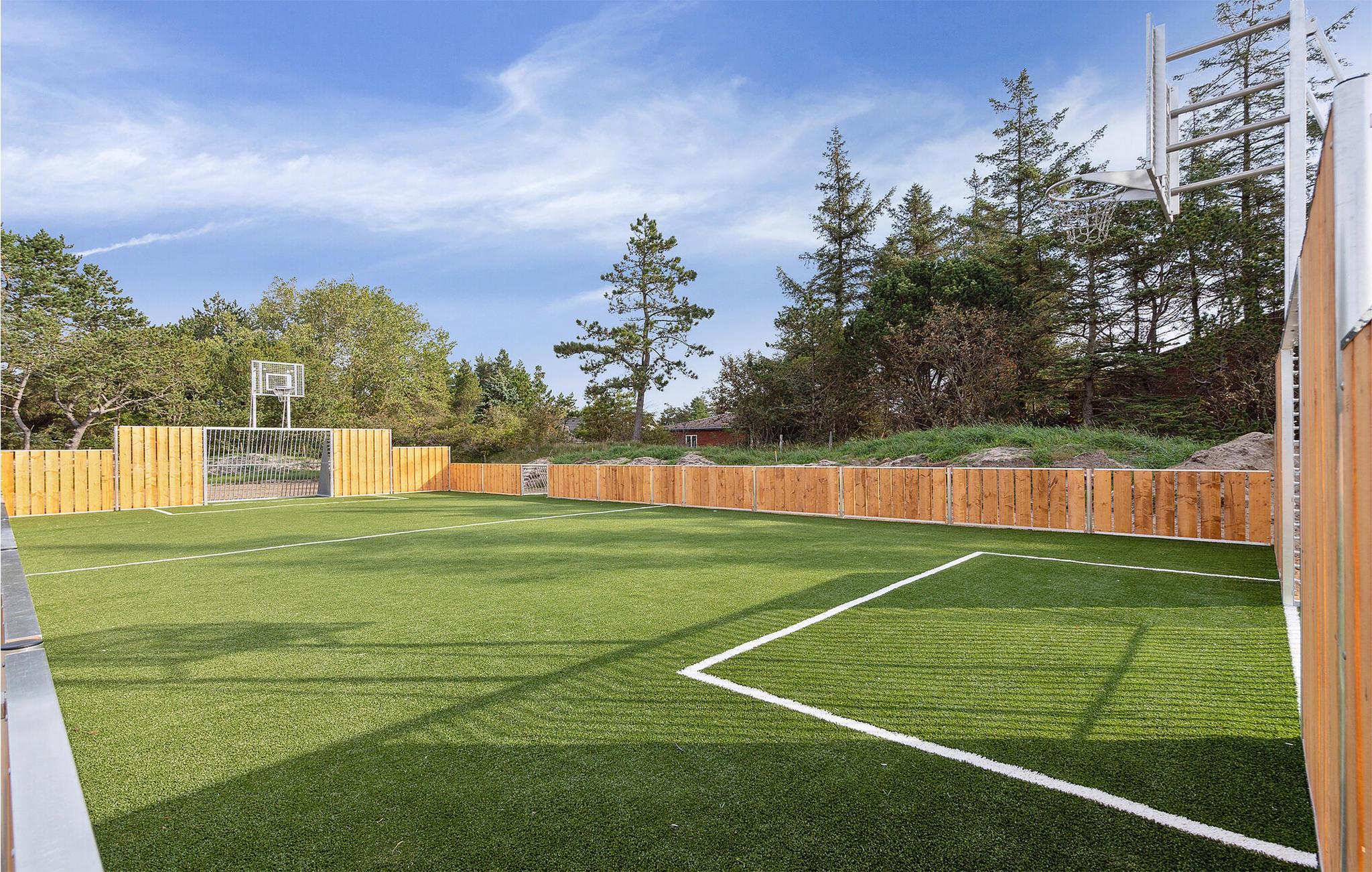 Det store hus ligger badet i lys og har nem adgang til den store terrasse, som er det perfekte sted at grille. Børnene vil sikkert også gerne ud at tumle på legestativerne en hel masse. I nærheden ligger der en multi-purpose bane, som giver nogle aktive børn de helt rigtige rammer.