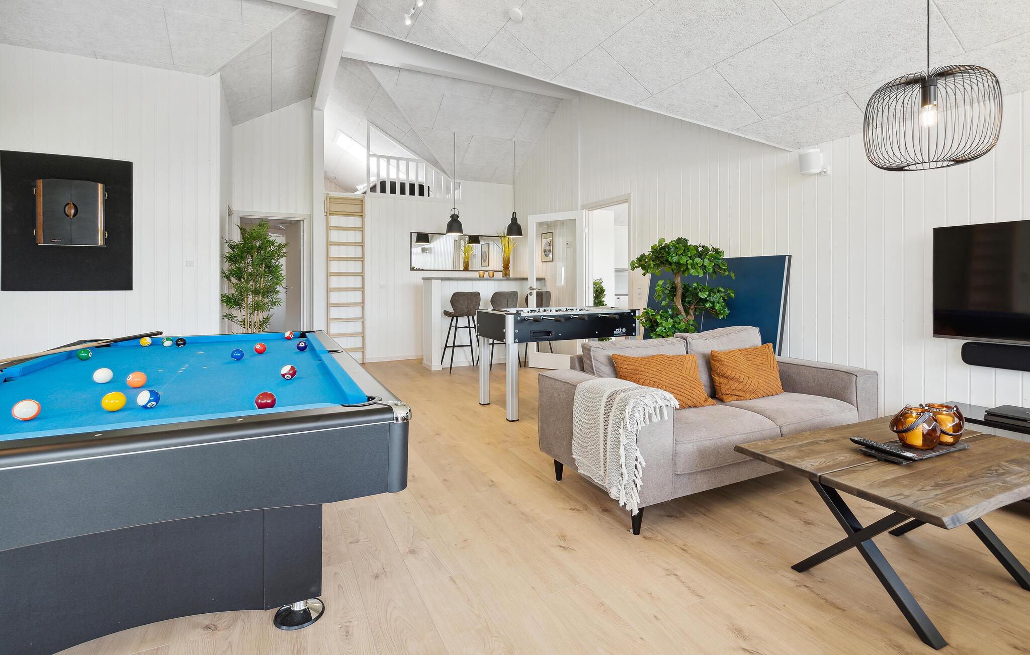 I Kongsmark på Rømø ligger dette flotte feriehus med plads til op til flere familier. Her kan I tilbringe sjove dage i poolen eller nyde varmen i saunaen eller den udendørs jacuzzi efter en lang gåtur i den friske luft. I løbet af dagen kan I udfordre hinanden til et spil billard, bordtennis eller bordfodbold. Hyg jer i det store, skønne terrasseområde, mens de yngste feriegæster leger i haven.