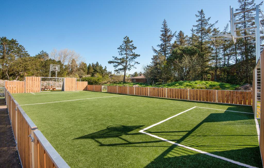 Som gæster har I adgang til et fællesareal med en stor legeplads, der byder på alt fra gynger, rutsjebaner og klatrestativer til en imponerende multibane med kunstgræs. Multibanen kan bruges året rundt til aktiviteter som fodbold, basketball, volleyball og badminton. Ved legepladsen og banen finder I flere borde og bænke, som er perfekte til en picnic eller en forfriskning.