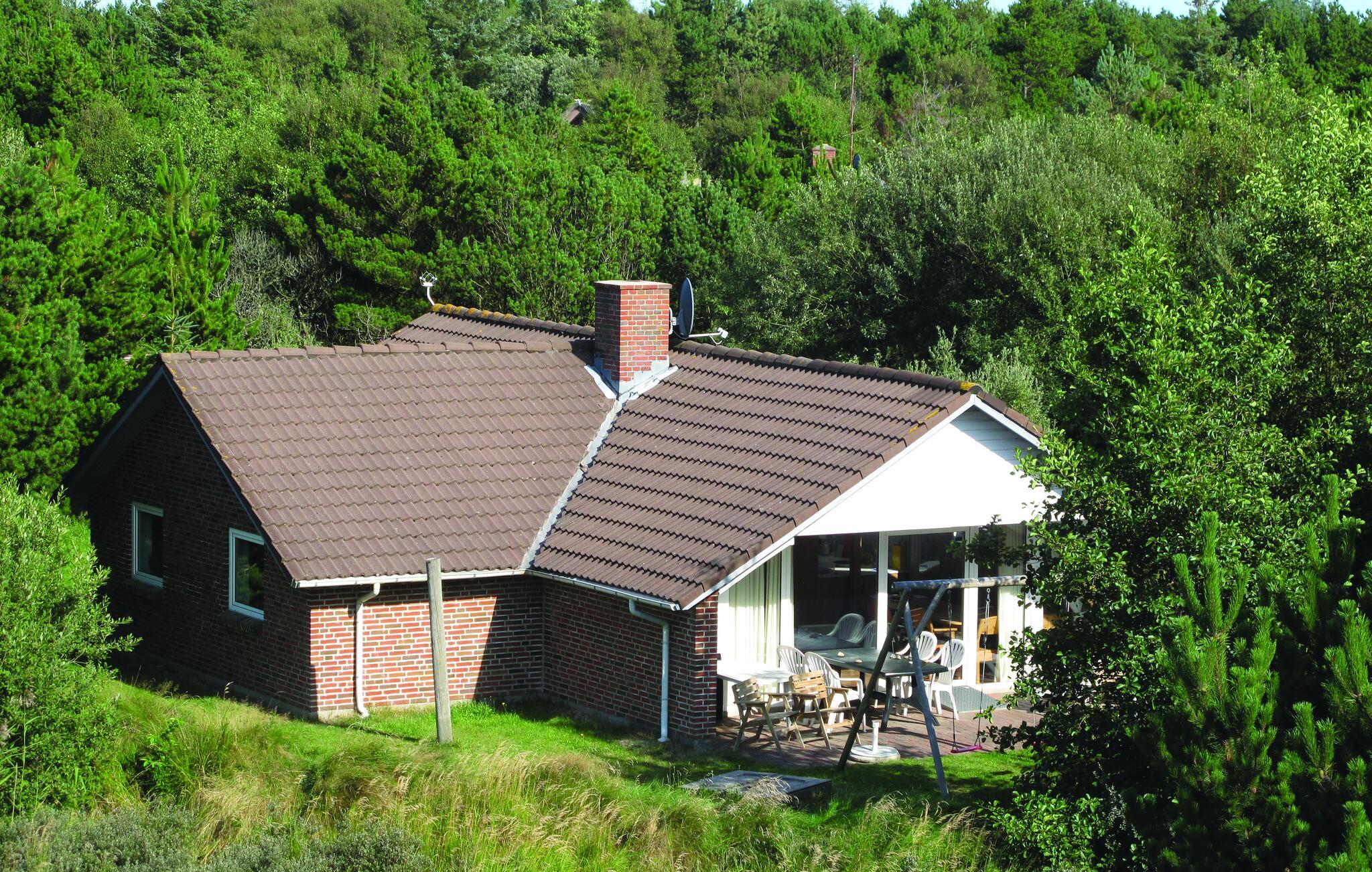 Velindrettet sommerhus på Rømø med overdækket terrasse og høj privatlivsfølelse omgivet af lægivende bevoksning.