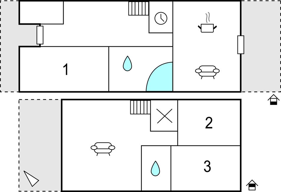 Badeværelse 6m2 (nr. 1) - WC. Varmt og koldt vand. Bruser