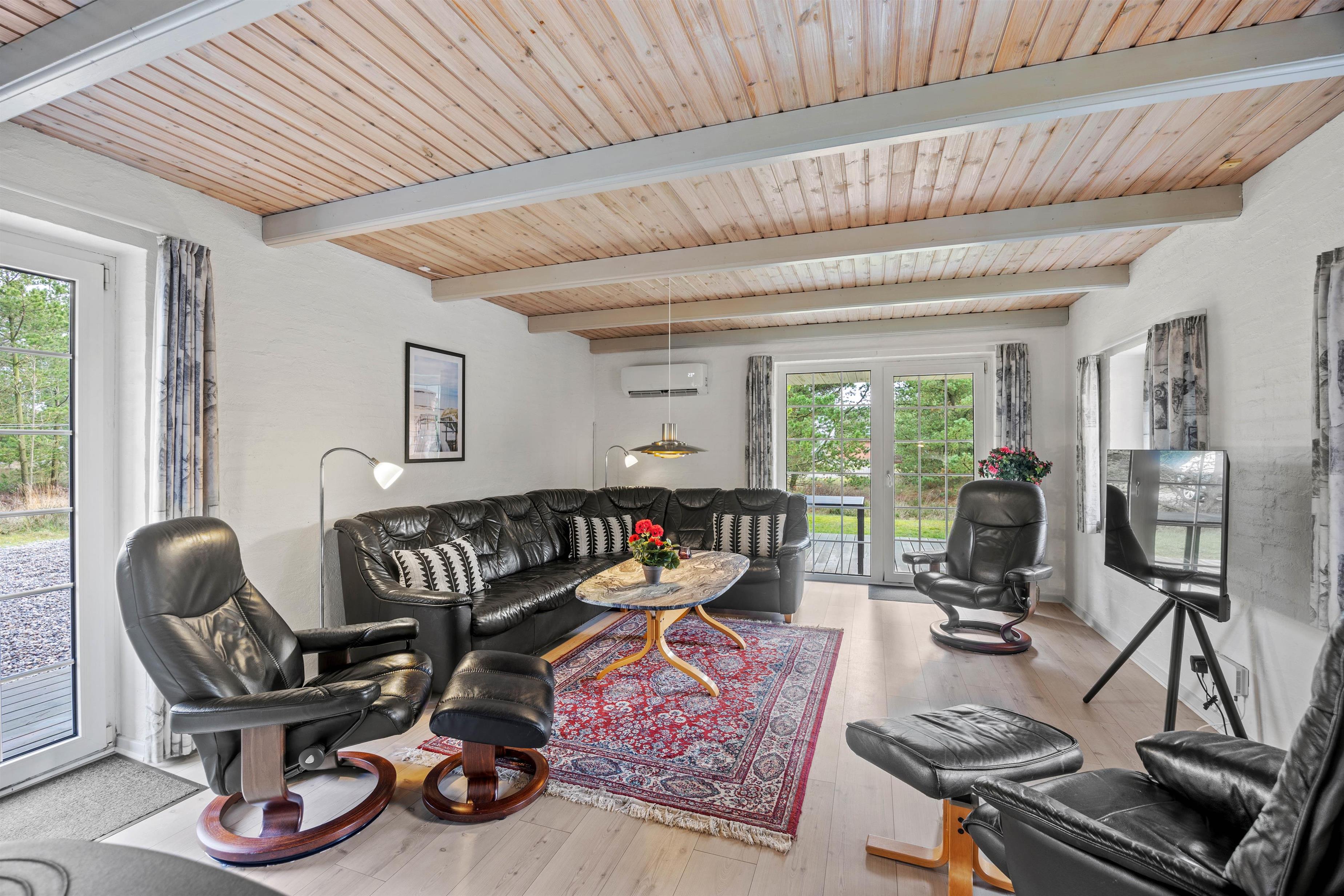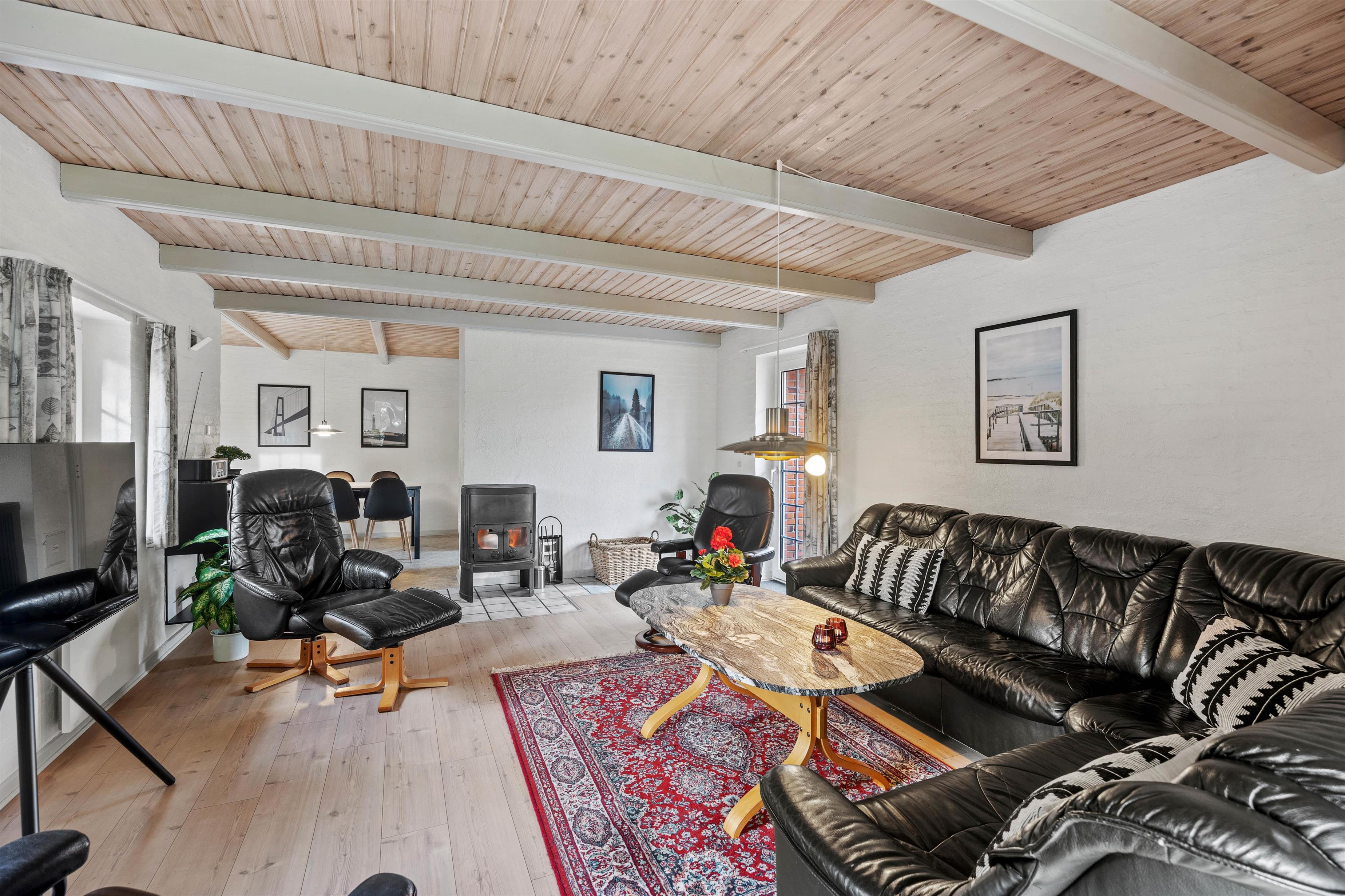 Træd ind i et velplejet, idyllisk beliggende og charmerende stråtag feriehus, som bare venter på at byde jer velkommen. Brændeovnen i stuen spreder ikke kun behagelig varme, men skaber også en unik atmosfære. Når dagene bliver kortere og aftenerne længere, kan I lune jer ved de flakkende flammer og måske fordybe jer i en god bog. Den moderne varmepumpe og gulvvarmen på badeværelset sikrer en behagelig temperatur i hele huset på alle tider af året.