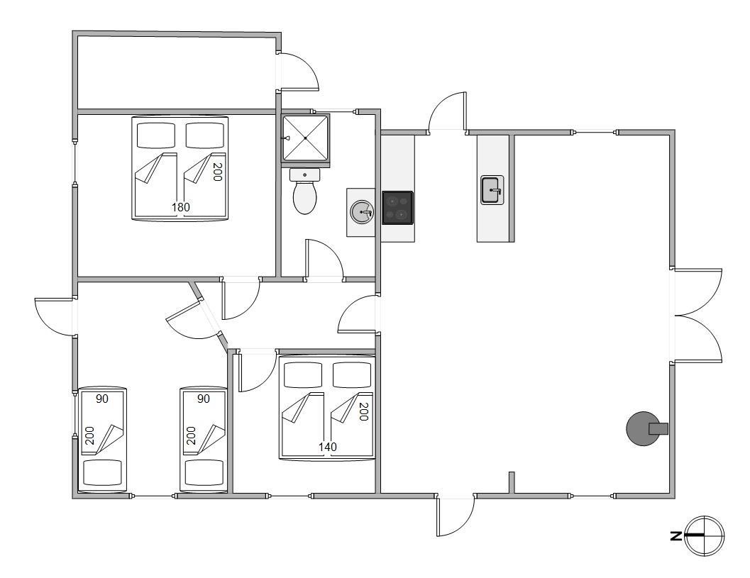 Det lyse opholdsrum er møbleret med sofa og fladskærms-tv, så hyggeaften kan nydes i ro og komfort. Den knitrende brændeovn bidrager til den hjemlige stemning, mens gratis fibernet sørger for, at I kan streame en film eller surfe på nettet i aftentimerne. Sommerhuset har 3 rummelige soverum – et med dobbeltseng og to med enkeltsenge – hvor der er plads til i alt 6 personer. Indretningen er hyggelig med bløde tæpper, varme farver og detaljer i træ, så I rigtig kan føle jer hjemme.