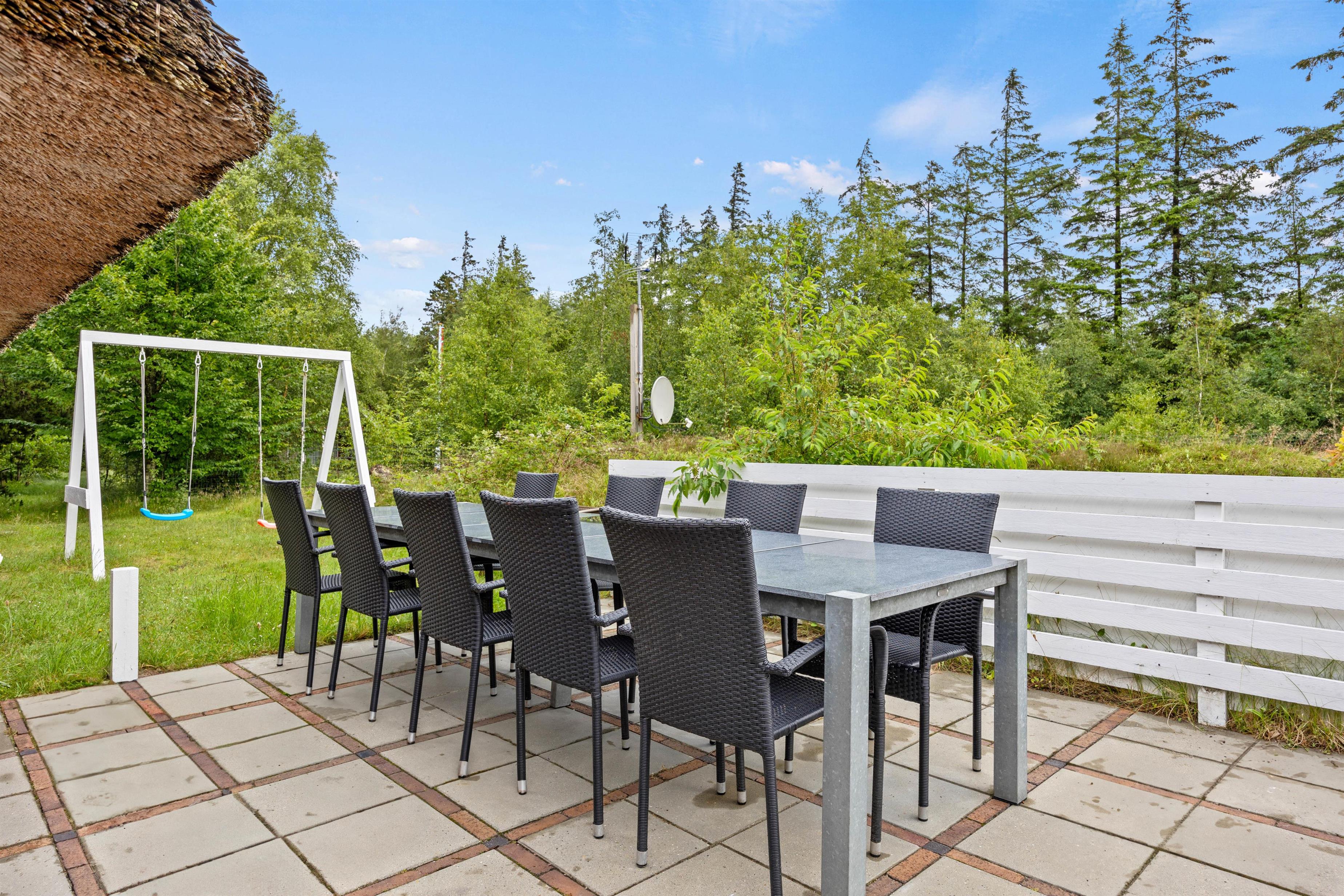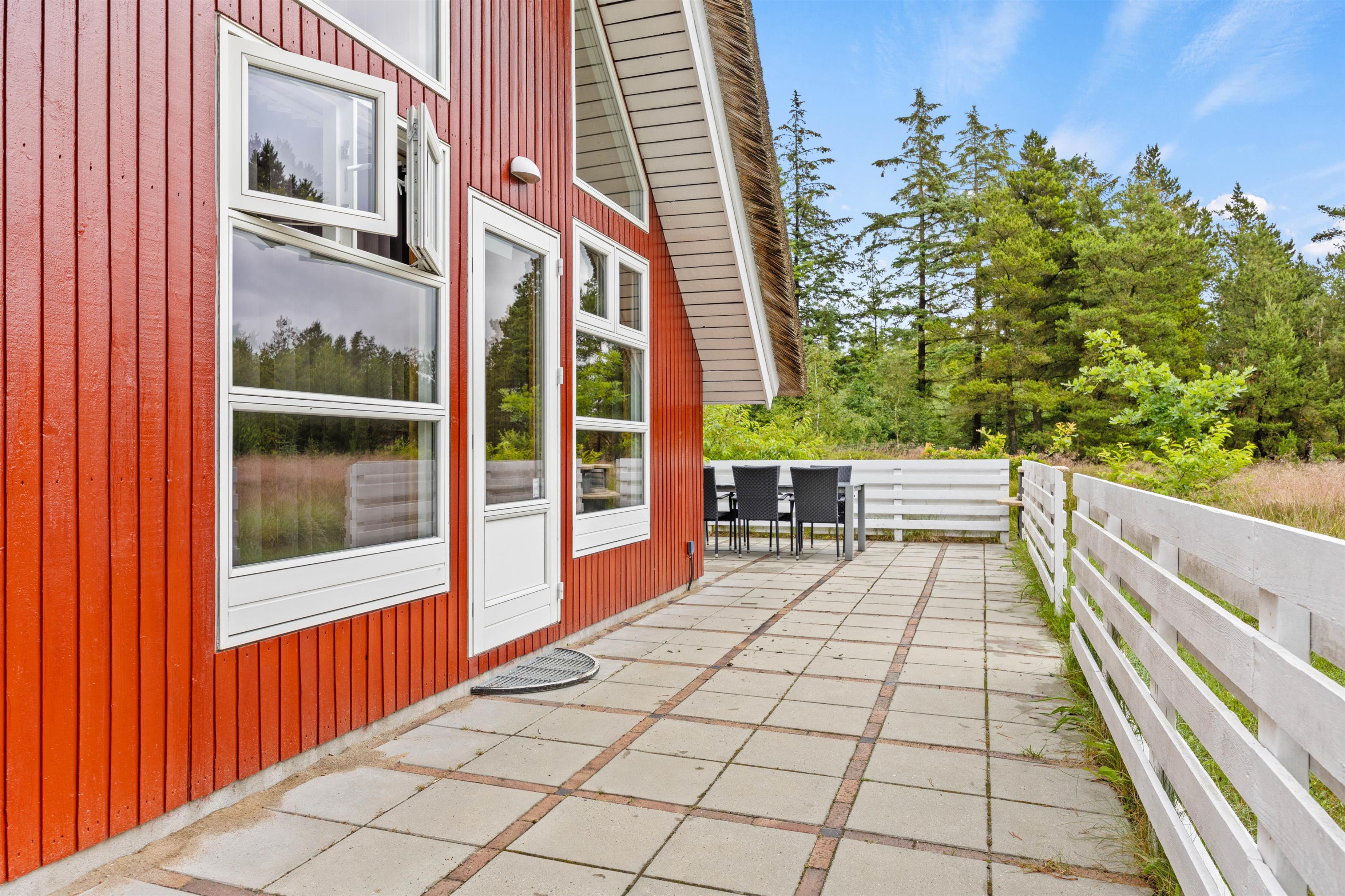 Huset ligger i meget rolige omgivelser - på en åben naturgrund med lægivende træer omkring. Stor øst-, syd- og vestvendt terrasse på 65 m2 - med nye havemøbler og stor stengrill, der indbyder til hyggelige grillaftener sommeren igennem.