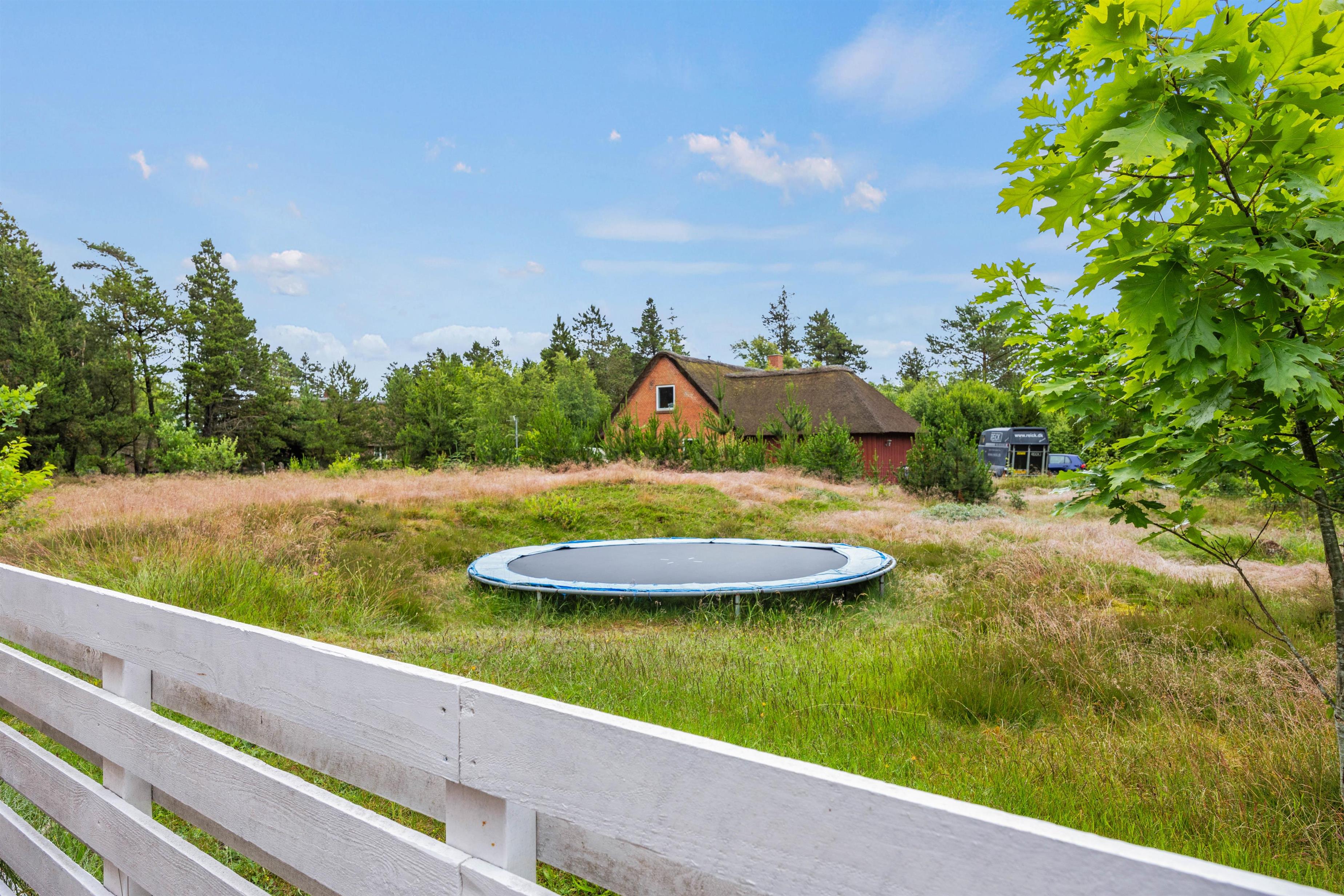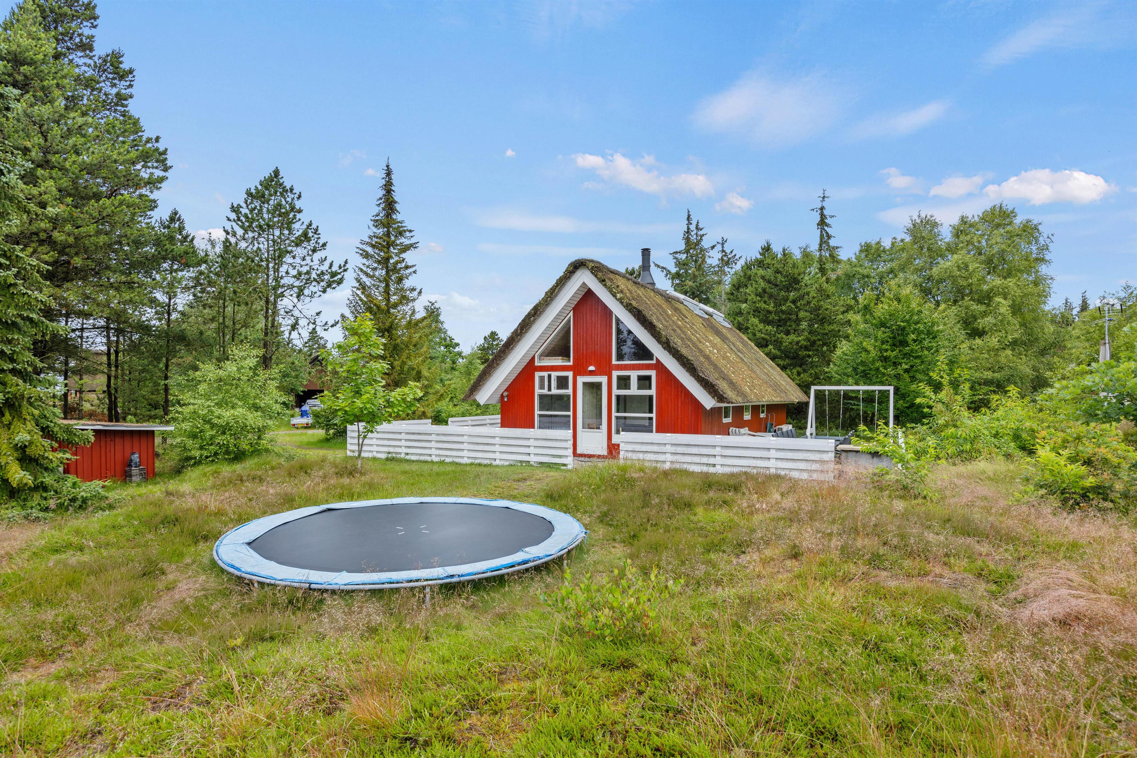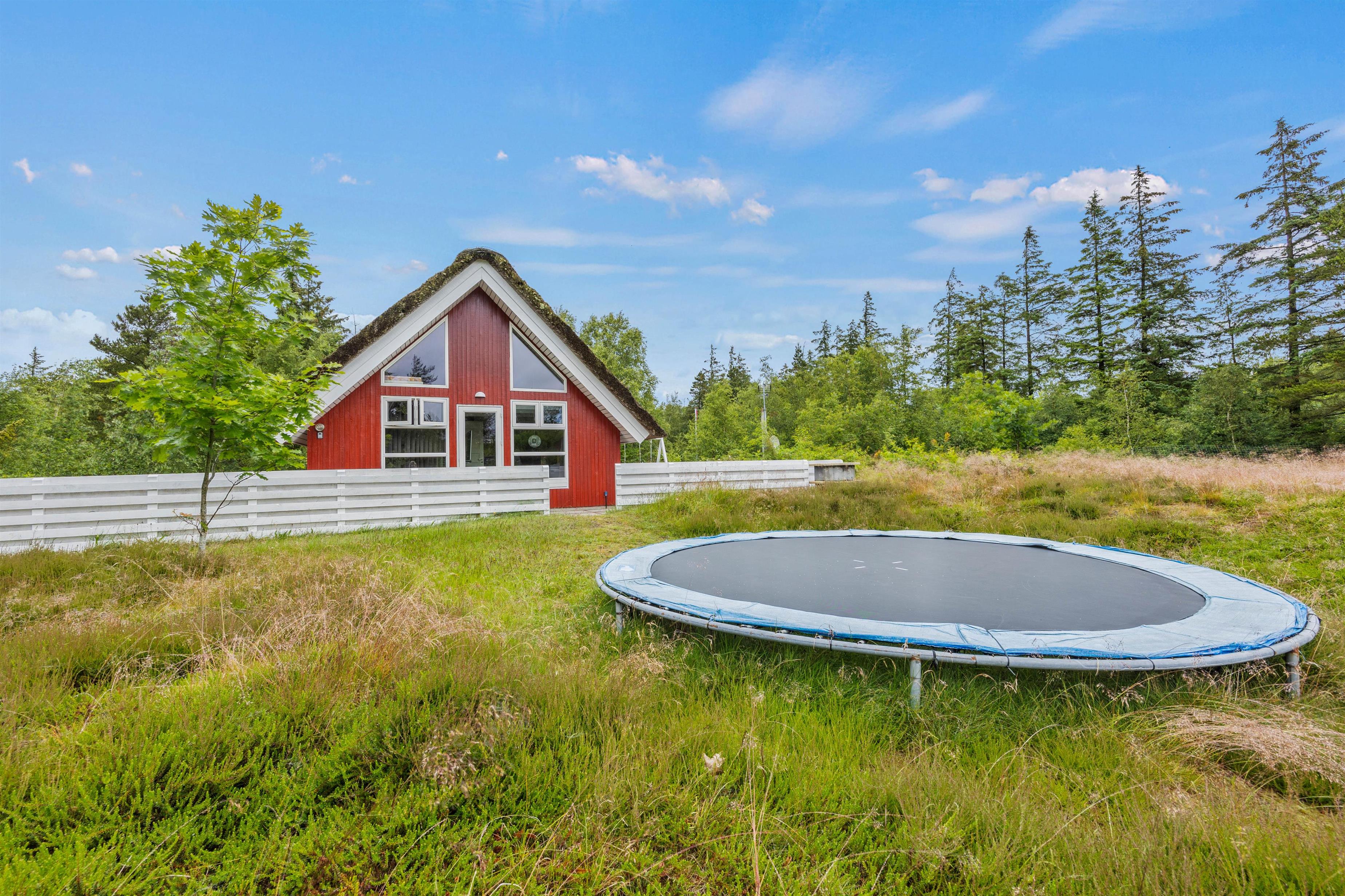 Til børnene er der en stor trampolin, gynger og overdækket sandkasse.