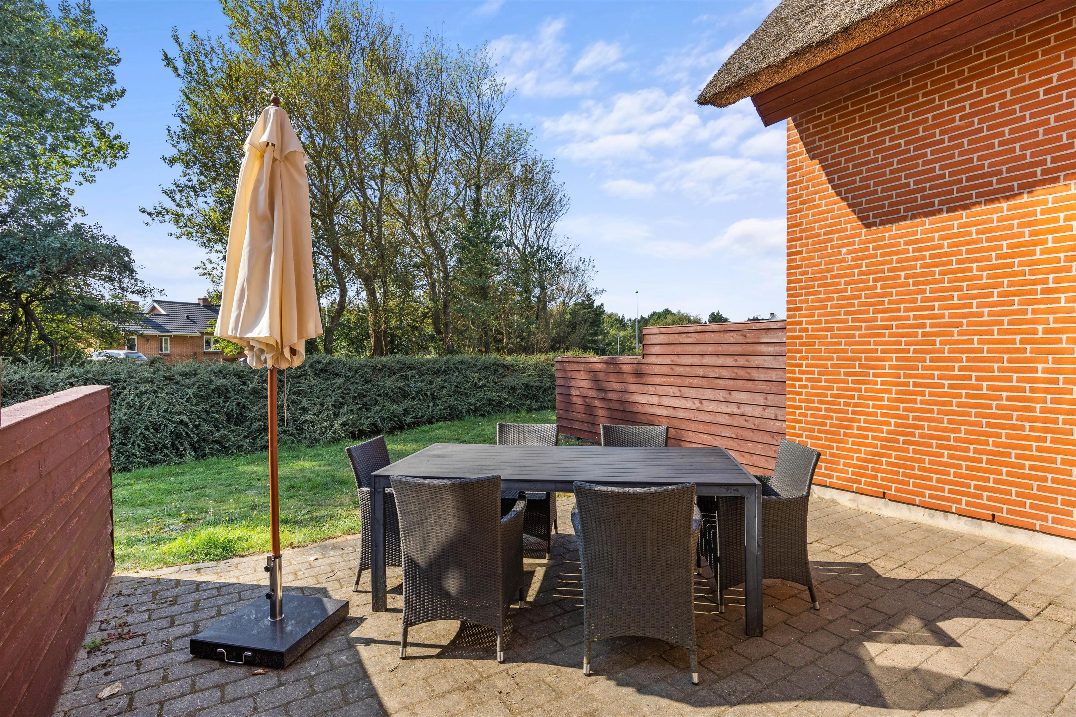 På nordsiden af lejligheden er der også en fin terrasse i stueplan, hvor I kan lave saftige bøffer på grillen og planlægge morgendagens ferieaktiviteter, inden sengen kalder.