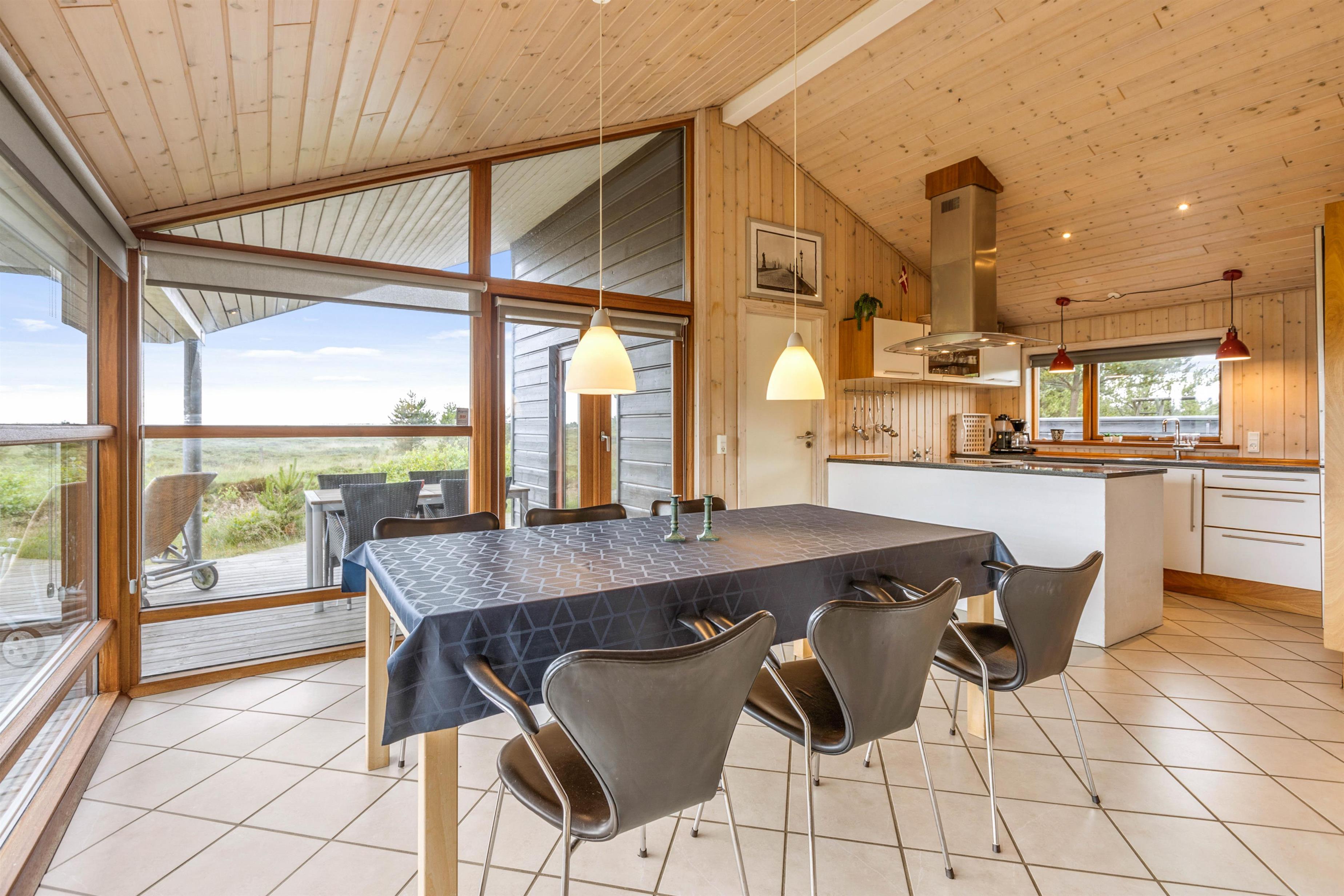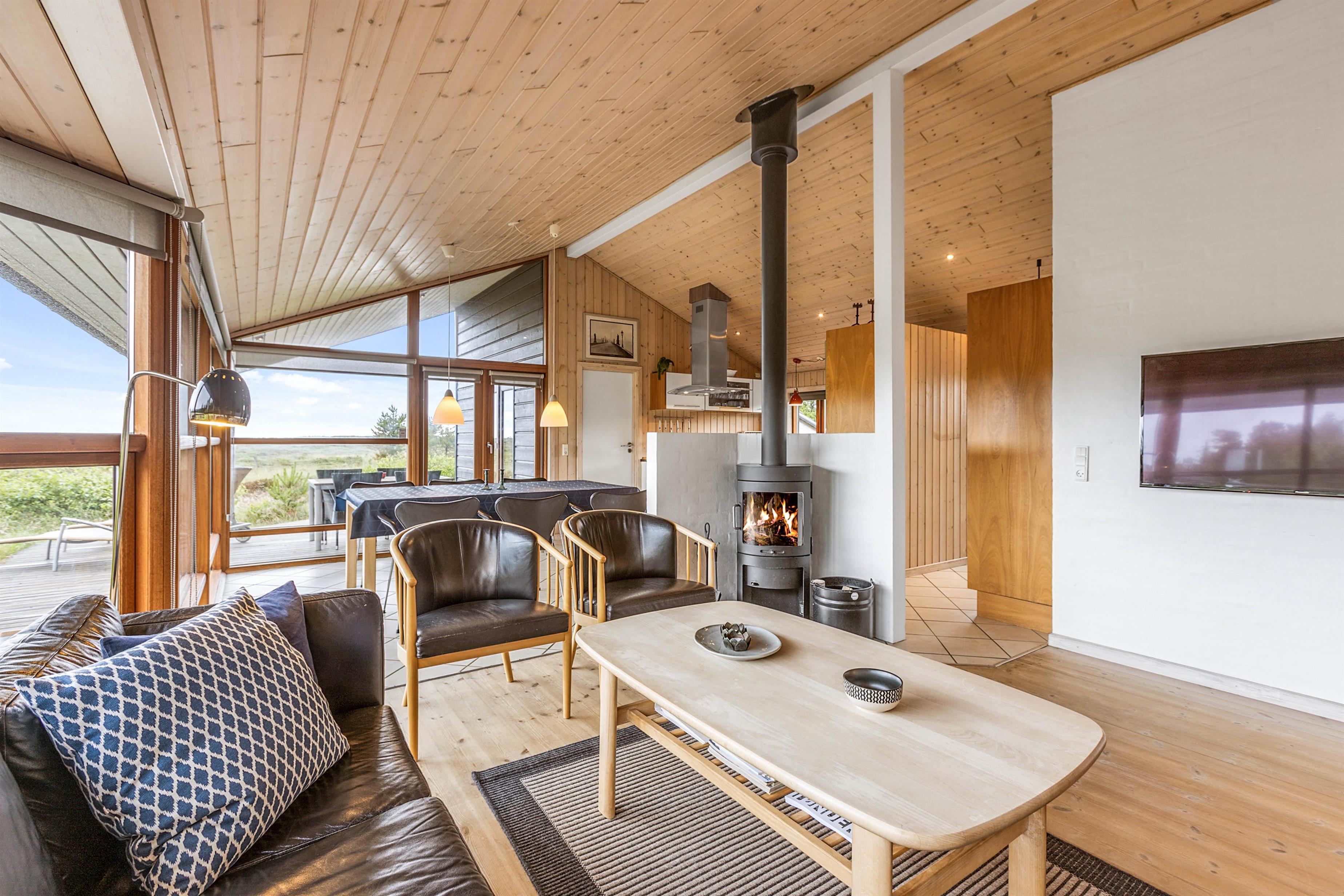 Fra stuen er der afgang til sommerhusets rummelige terrasse, som løber næsten rundt om hele huset. Den delvise overdækning betyder, at du altid kan finde et sted i læ, hvor du kan nyde den friske luft og den fantastiske udsigt.