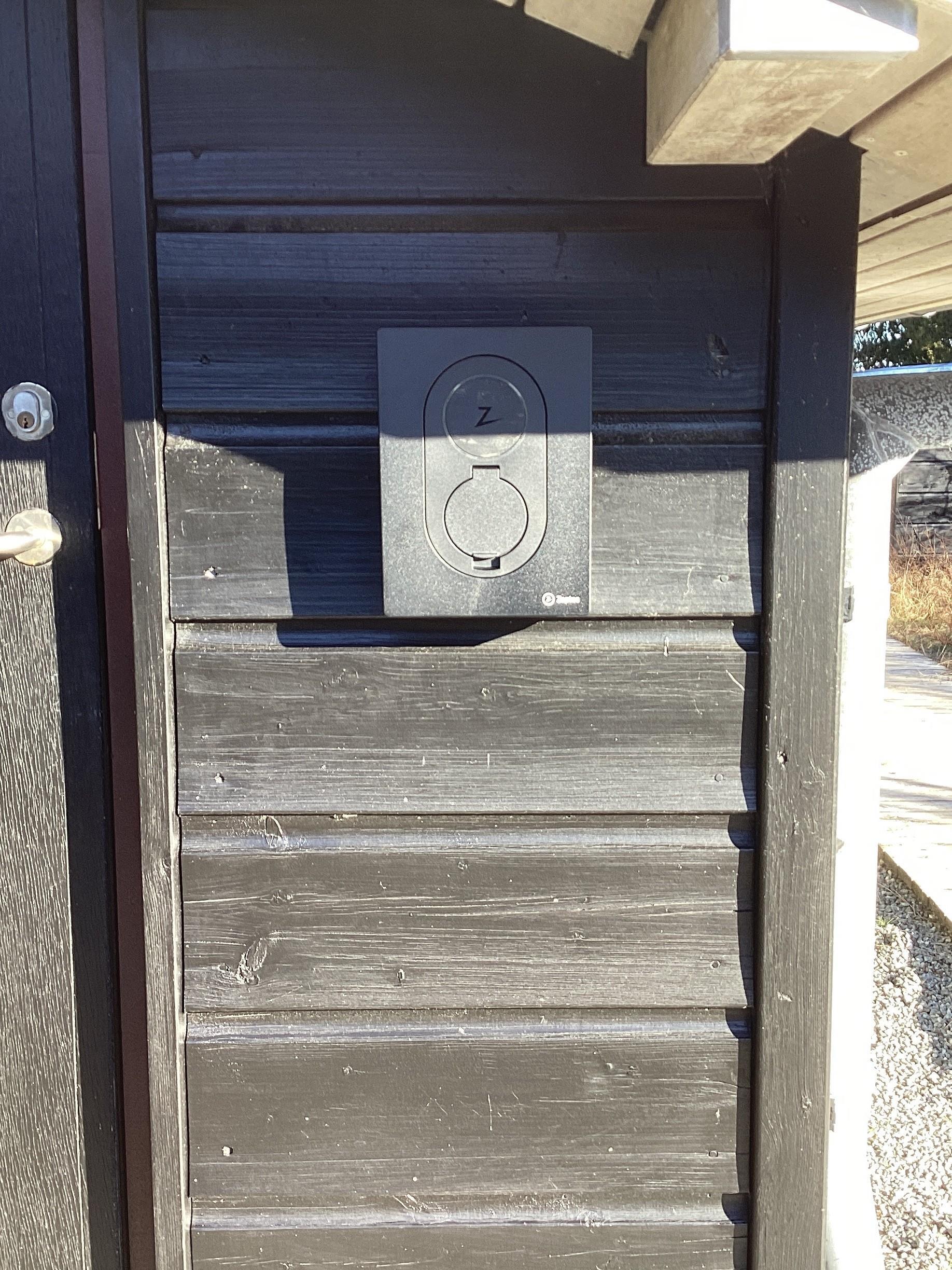 Hvis i tager et kabel med, er der mulighed for at lade el-bilen op ved huset (Zaptec, Type 2).