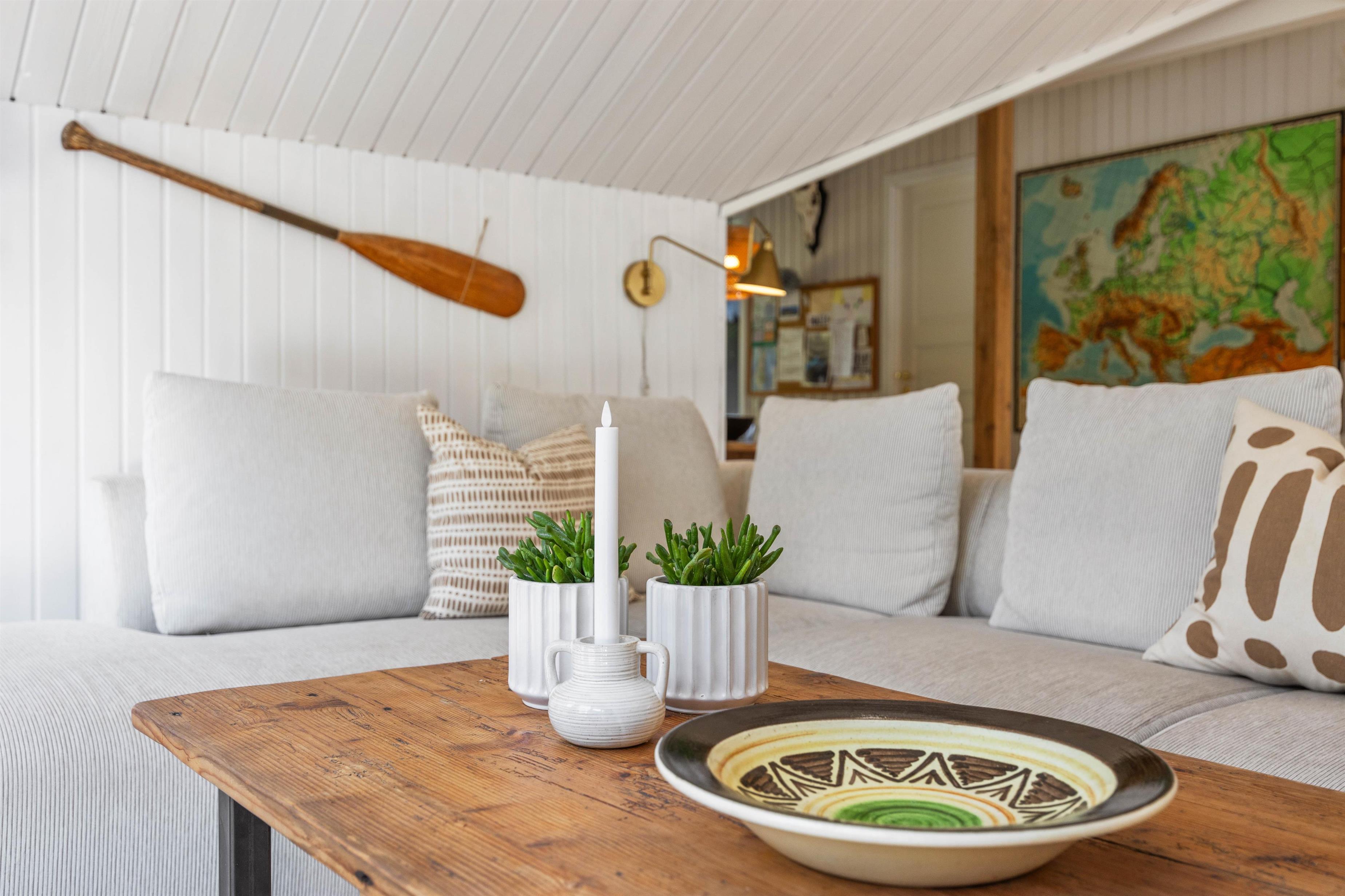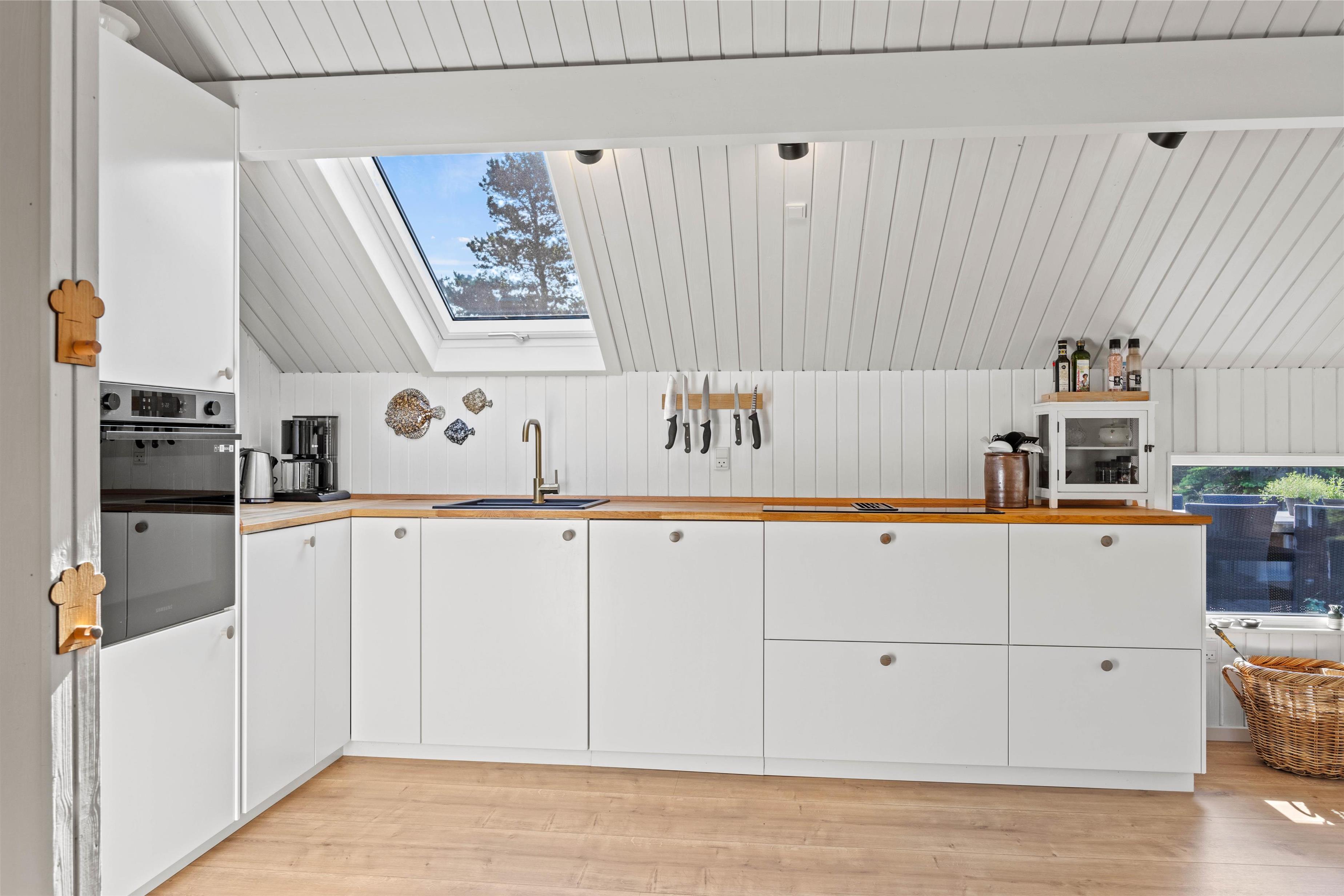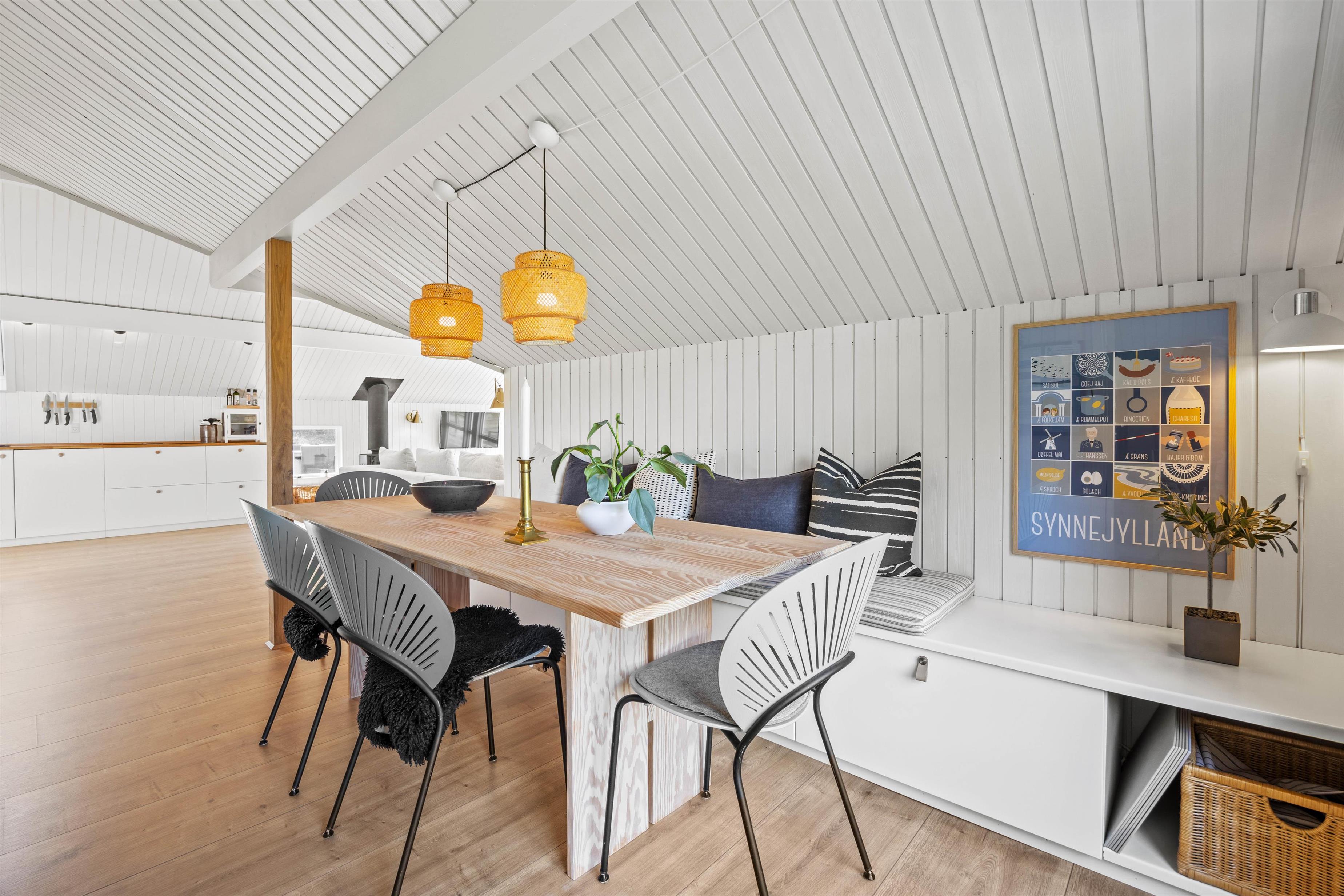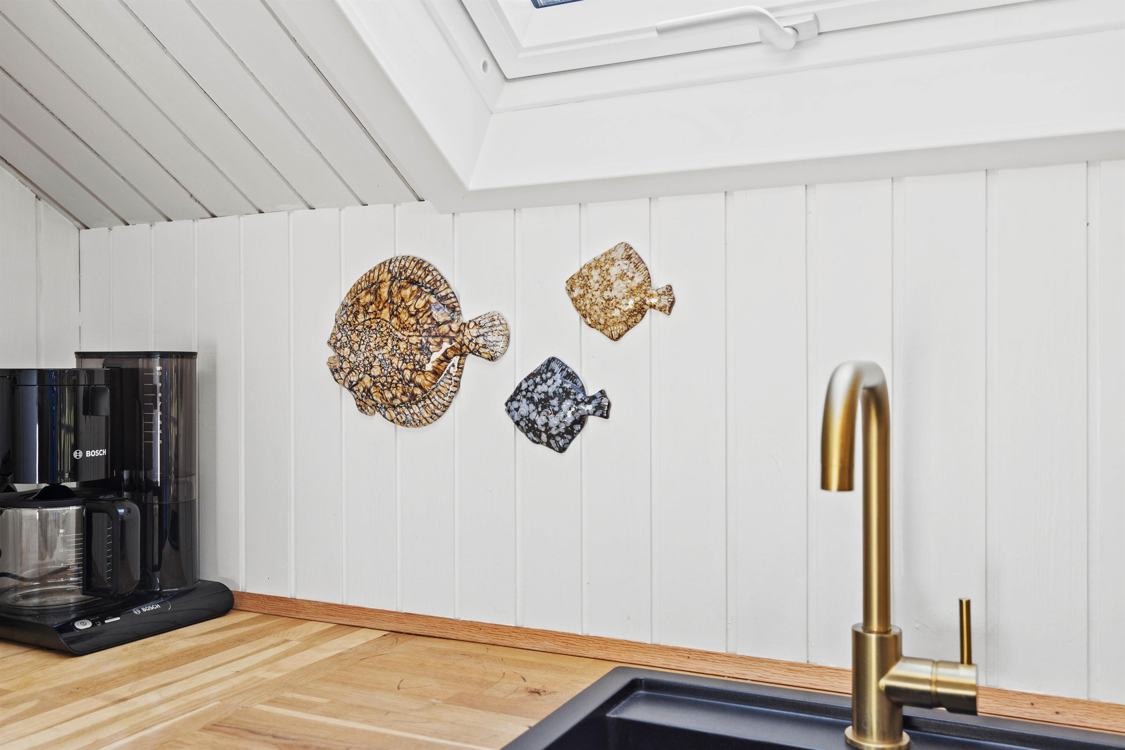 Feriestemningen melder sig straks, man træder ind ad døren til Småfolksvej 18. De lyse, træbeklædte vægge og gulve giver et dejlig let miljø, og med ild i brændeovnen kan man slappe af i sofaen og mærke fred og ro folde sig ud i rummet. Den omkostnings- og energibesparende varmepumpe sørger for behagelige temperaturer i feriehuset. Det veludstyrede køkken indeholder alt, hvad I har brug for, når I vil forkæle hinanden med lækre hjemmelavede måltider, herunder opvaskemaskine, mikrobølgeovn og en 114 liters separat fryser.