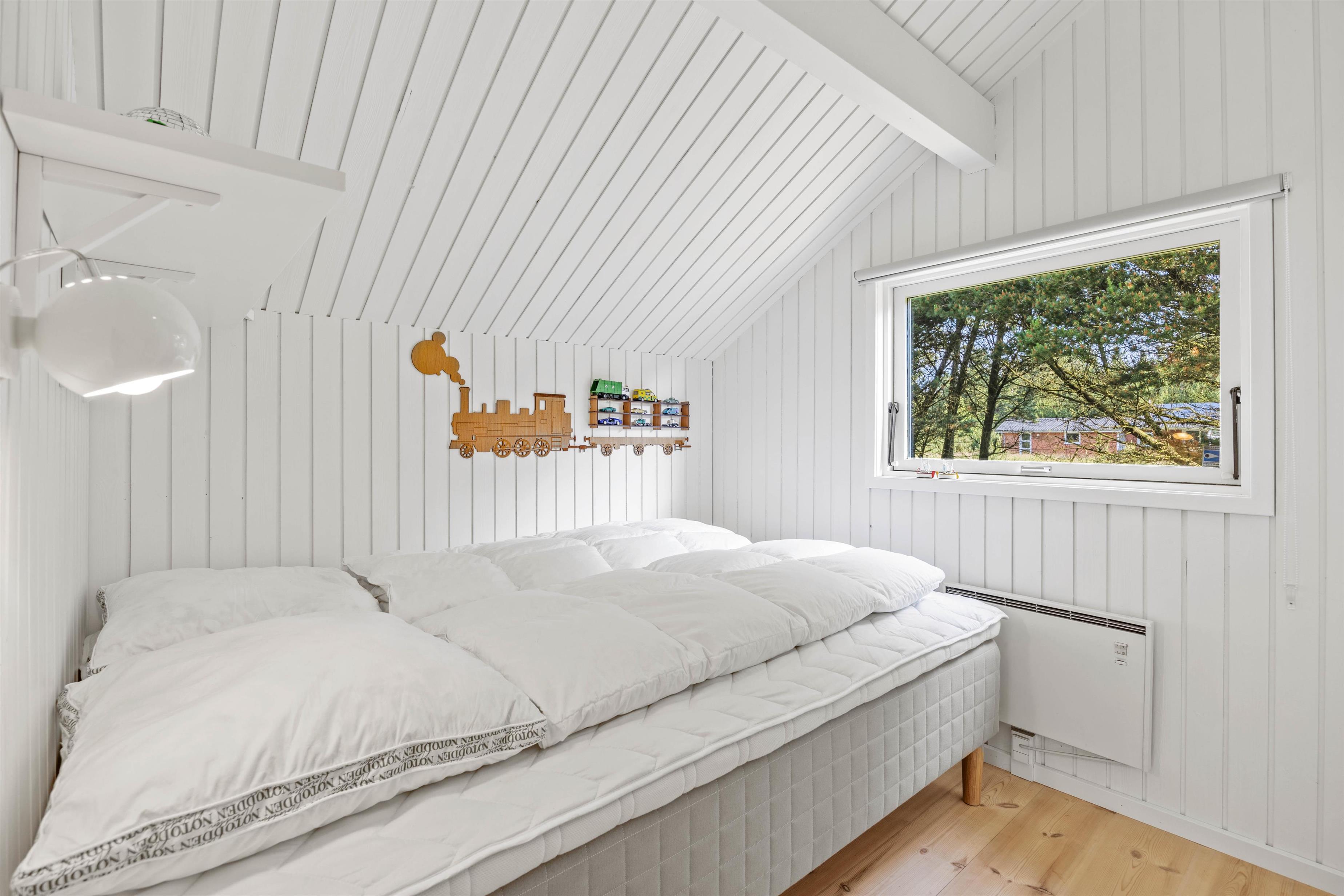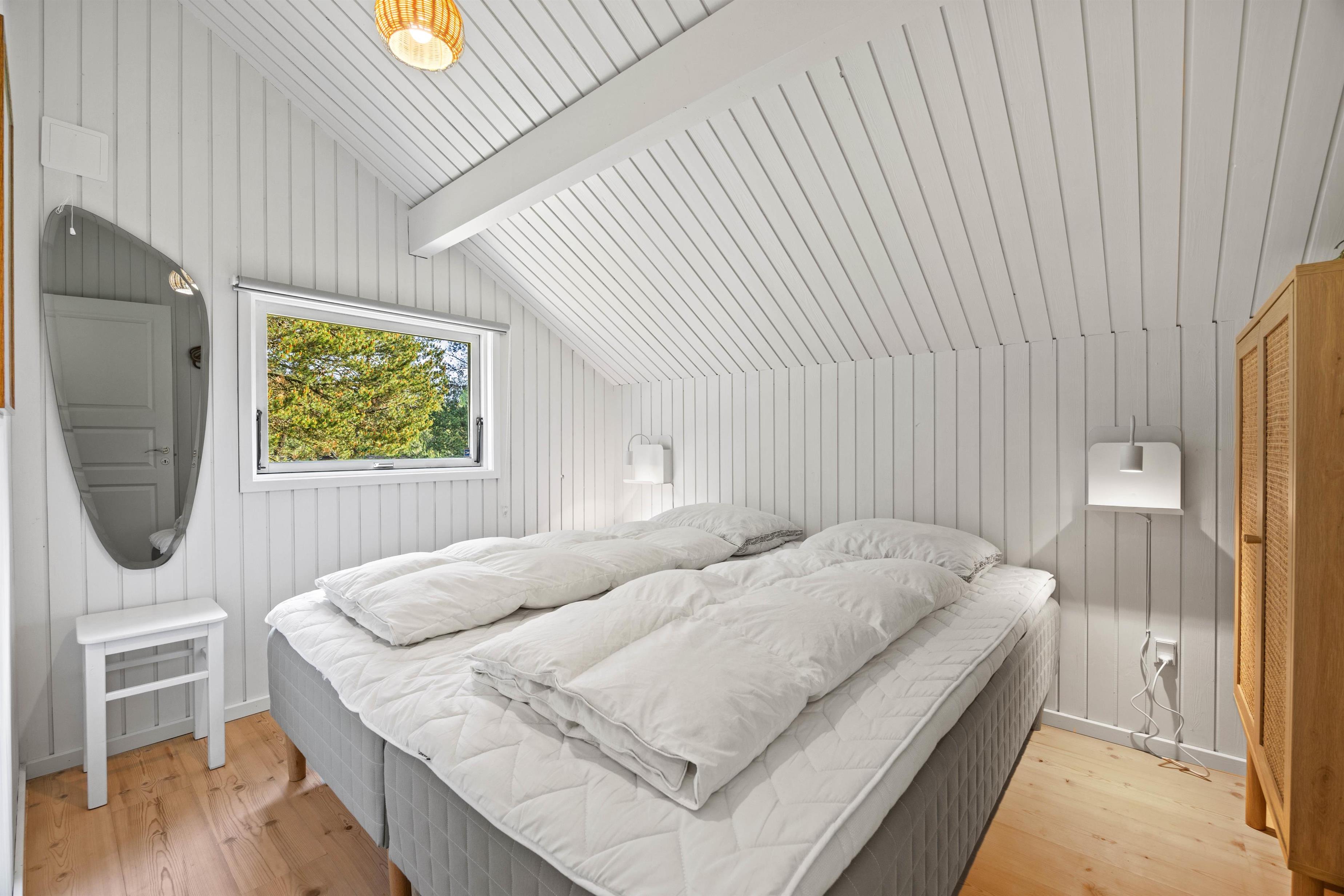 De 3 soveværelser er udstyret med komfortable dobbeltsenge, 1 x på 160x200 cm, 1 x 180x200 og i det sidste værelse på 140x200 cm. Desuden er der barneseng og højstol til de små. Der er vaskemaskine og tørretumbler til jeres rådighed i feriehuset, så I kan opfriske garderoben og håndklæder i løbet af ferien.