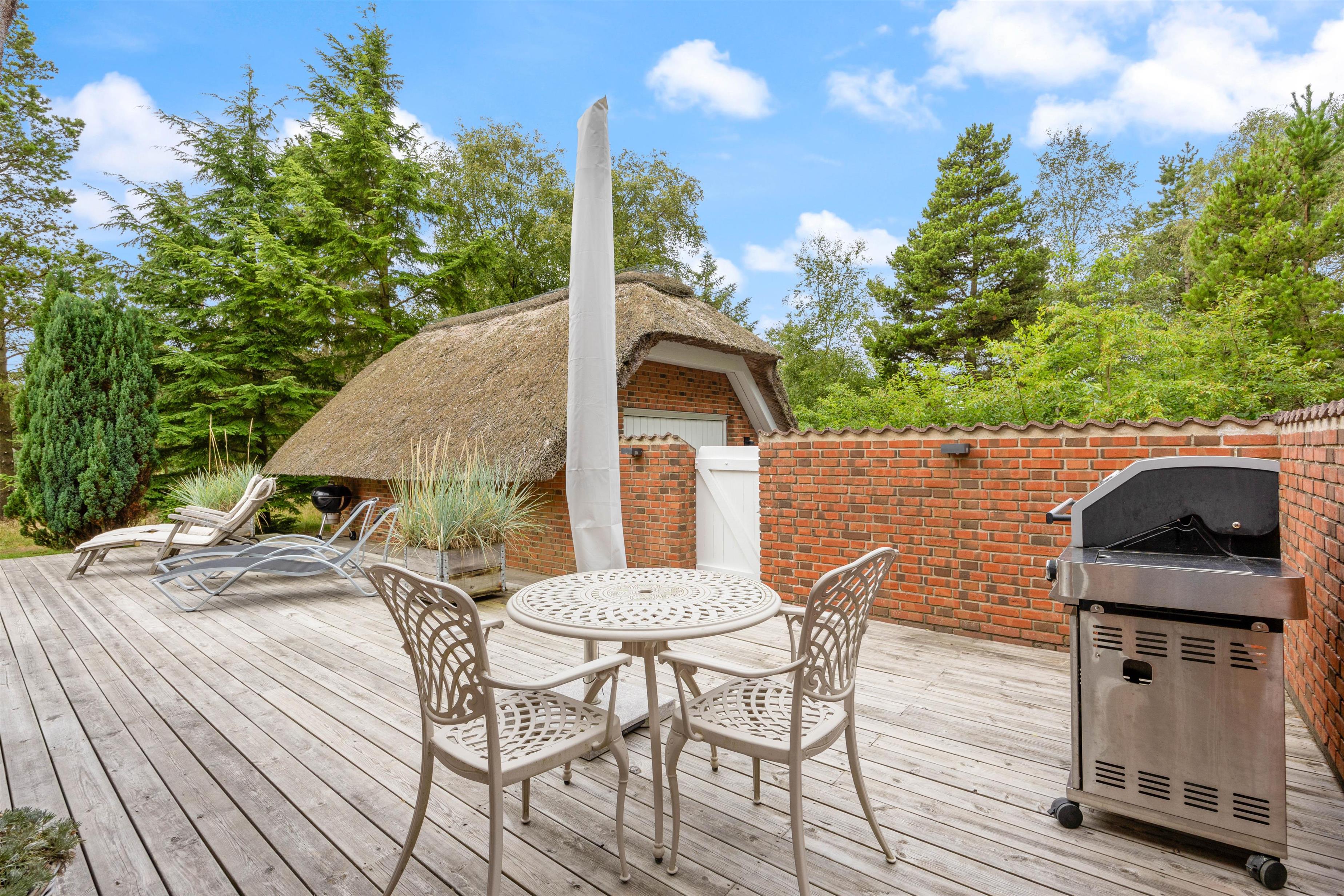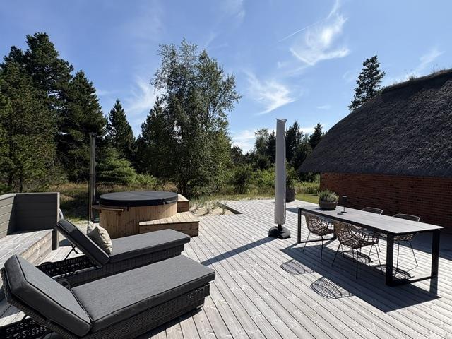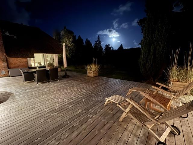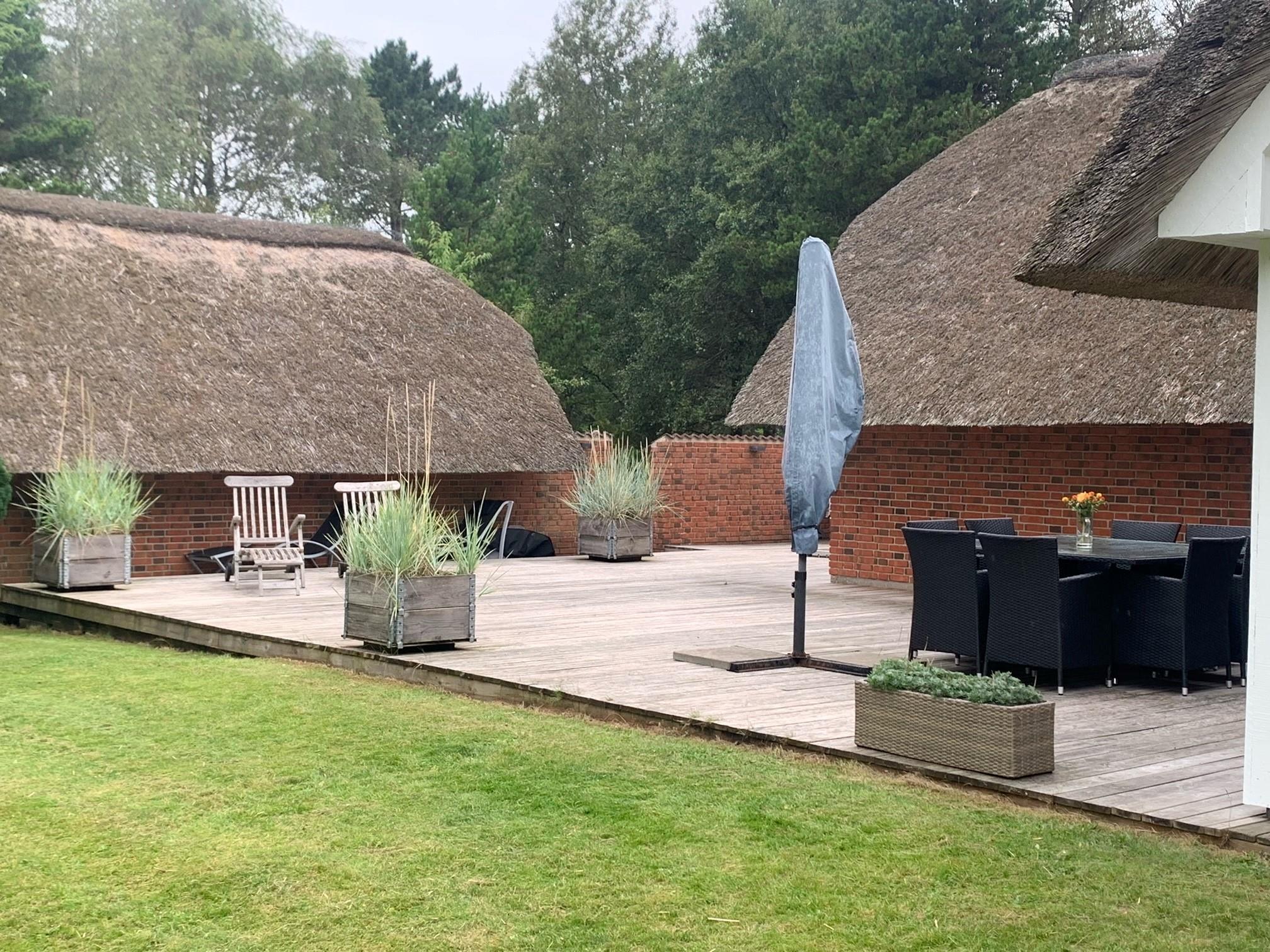 To rummelige åbne terrasseområder, beskyttet mod vind og nysgerrige øjne, inviterer dig til at blive hængende. Her kan du nyde solen og slappe af fra de tidlige morgentimer til aften. Den sydøst vendte terrasse, nybygget i 2024, er en lille wellness-oase med overdækket loungeområde med sauna og udendørs bruser. På begge terrasser (sydøst og sydvest) er der spiseborde til op til otte personer, liggestole og parasoller, så du kan vælge alt efter vejret. En kul og en gasgrill, som i er velkommen til at gøre brug af. Den engang overdækkede terrasse blev omdannet til en vinterhave.