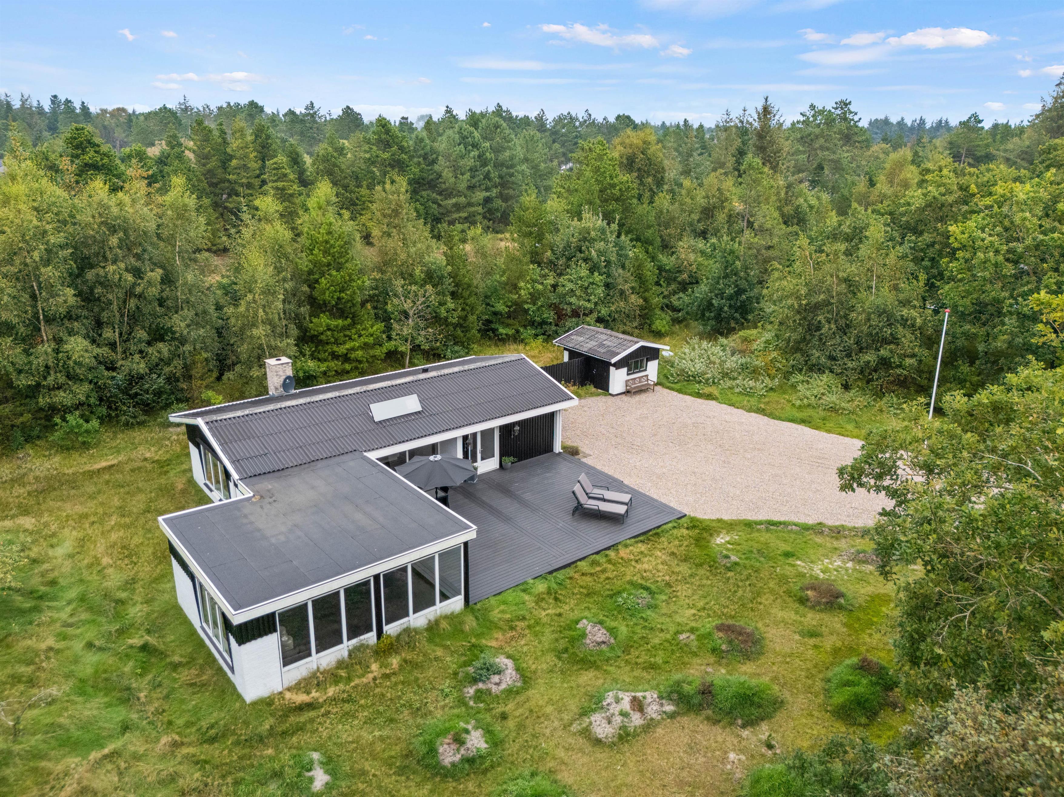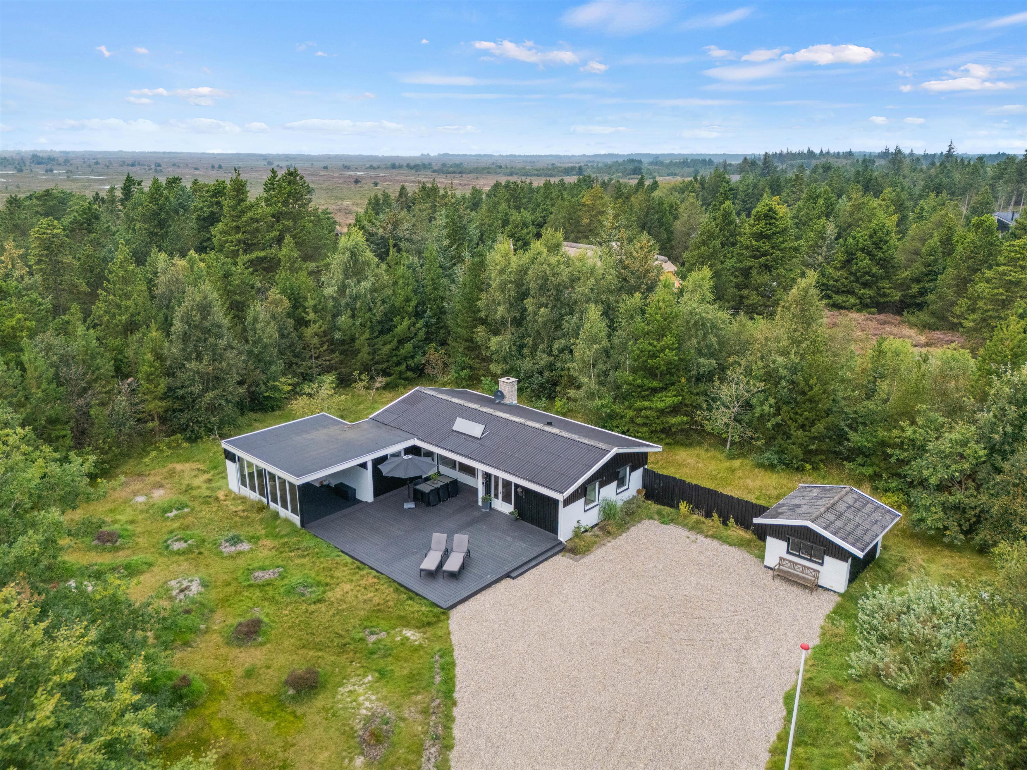 Et af feriehusets store fortrin er den smukke terrasse. På den åbne del kan I solbade i de komfortable liggestole, eller I kan nyde måltiderne i havemøblerne. Tænd op i grillen til aften og nyd et lækkert grillmåltid sammen, imens skyggerne bliver lange. Dagene kan forlænges ved at trække ind på den overdækkede terrasse, hvor I kan slappe af i de dybere havemøbler med en godnatdrink. Alternativt kan I nå en fredfyldt vandretur til Vadehavet før sengetid.