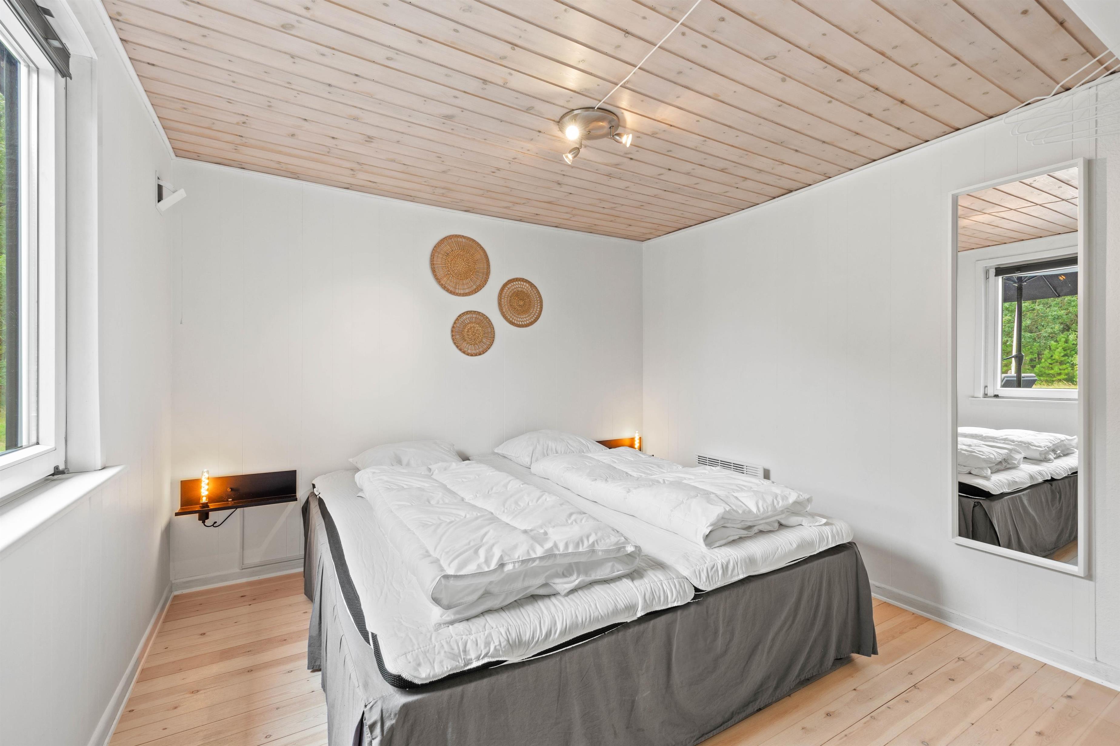 Badeværelset har gulvvarme, og der er også vaskemaskine i feriehuset, så I kan friske håndklæderne op under jeres ophold. De 6 gode sovepladser er fordelt i 3 soverum, 2 med dobbeltsenge og 1 med en dobbelt sovesofa. Der er en energibesparende varmepumpe, som hurtigt og effektivt sørger for et behageligt indeklima og en god temperatur.