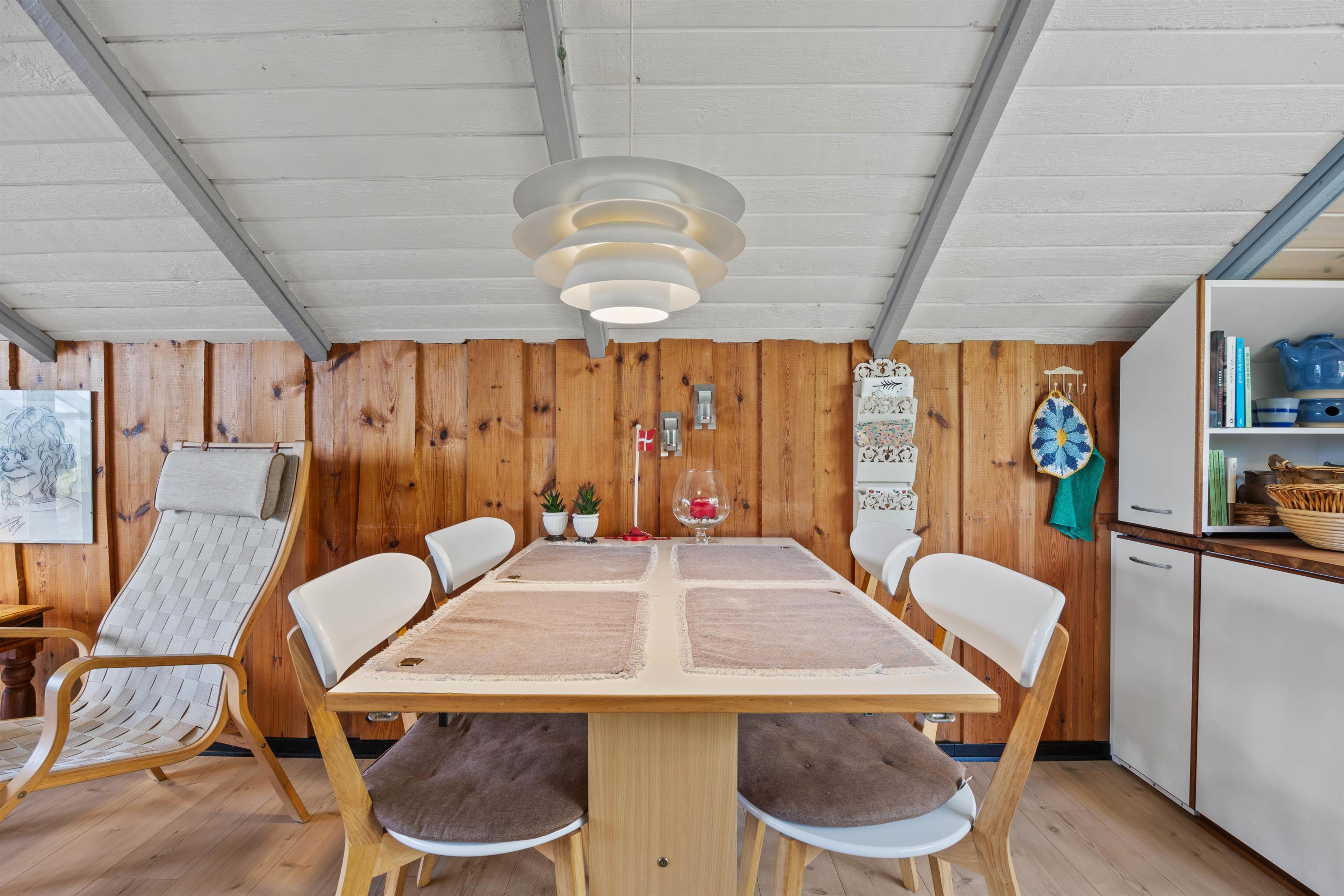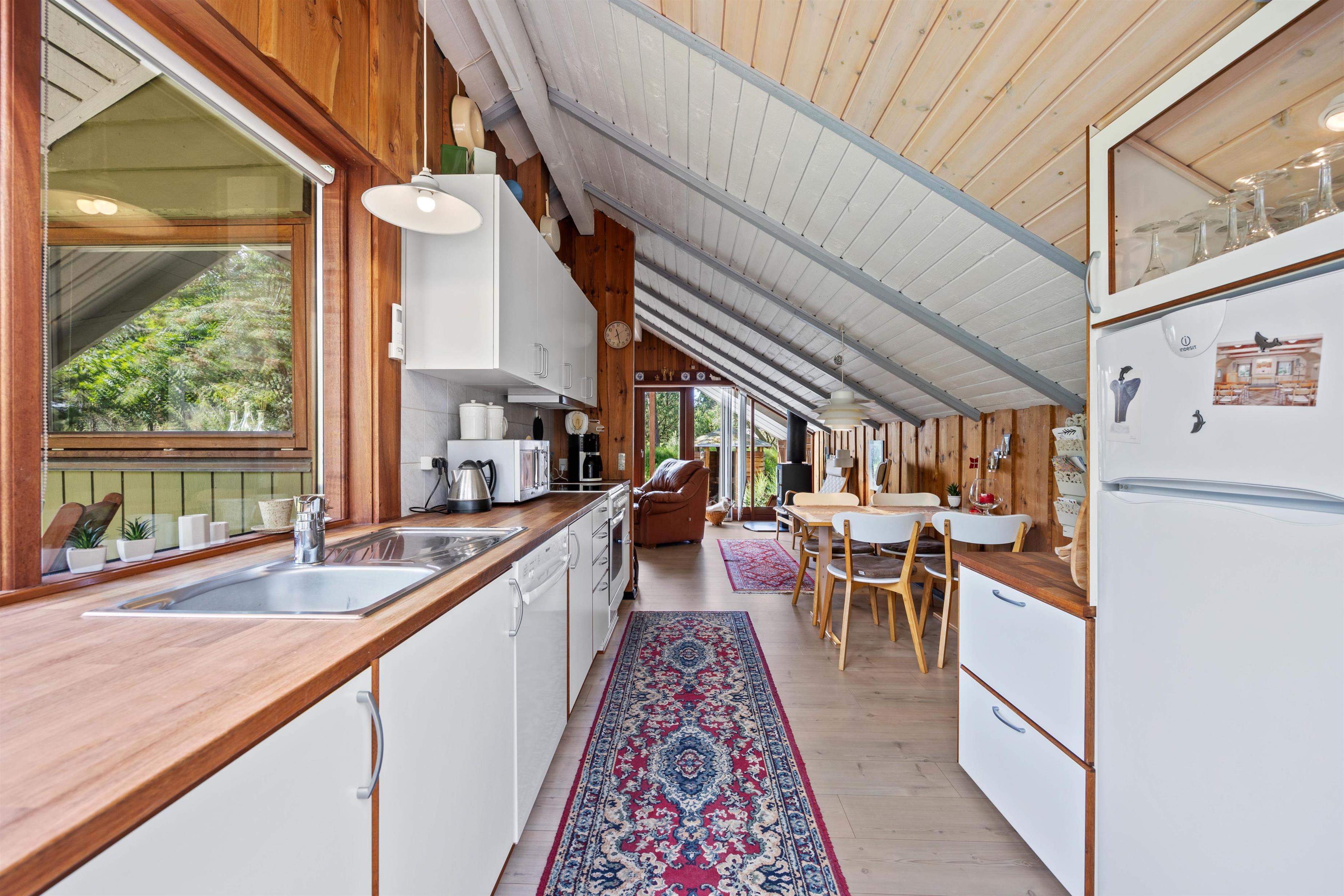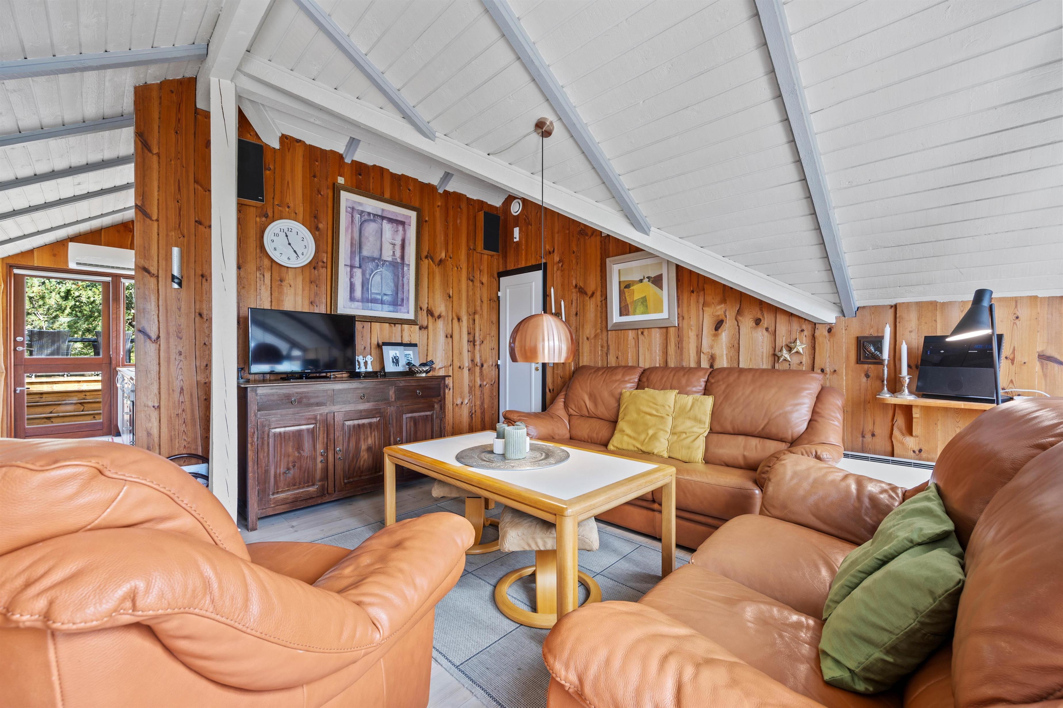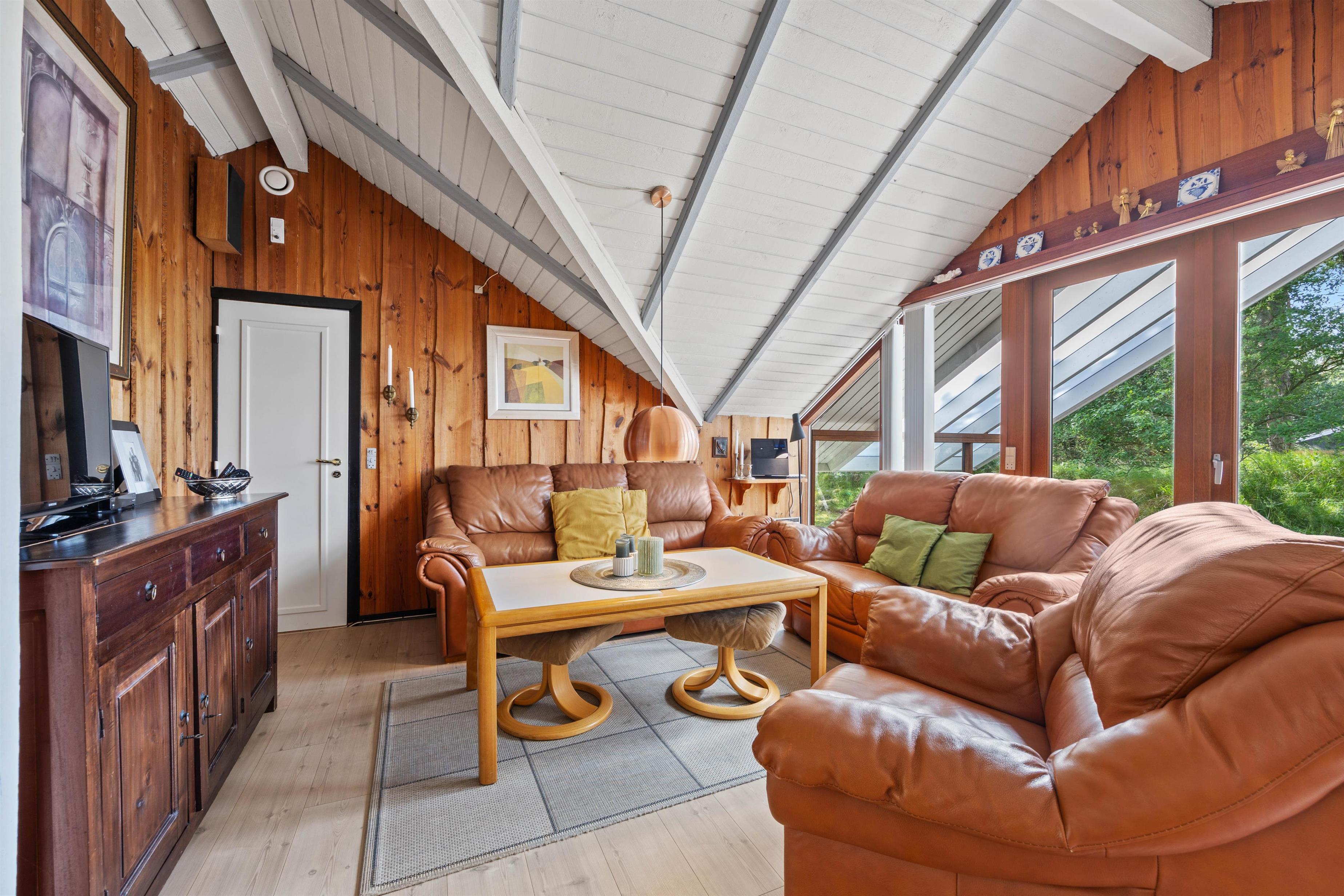 Hjerterummet er opholdsrummet, hvor stue, køkken og spiseplads er i åben forbindelse. Ligesom i resten af sommerhuset er her også loft til kip, varme trænuancer og komfortable møbler. Som et plus er her både brændeovn og en energibesparende varmepumpe, som sørger for et godt indeklima. Sid foran brændeovnen med en god bog, lav dejlig mad i køkkenet eller spil brætspil – mulighederne er mange. Nyd tiden med familien efter en spændende dag med gode oplevelser.