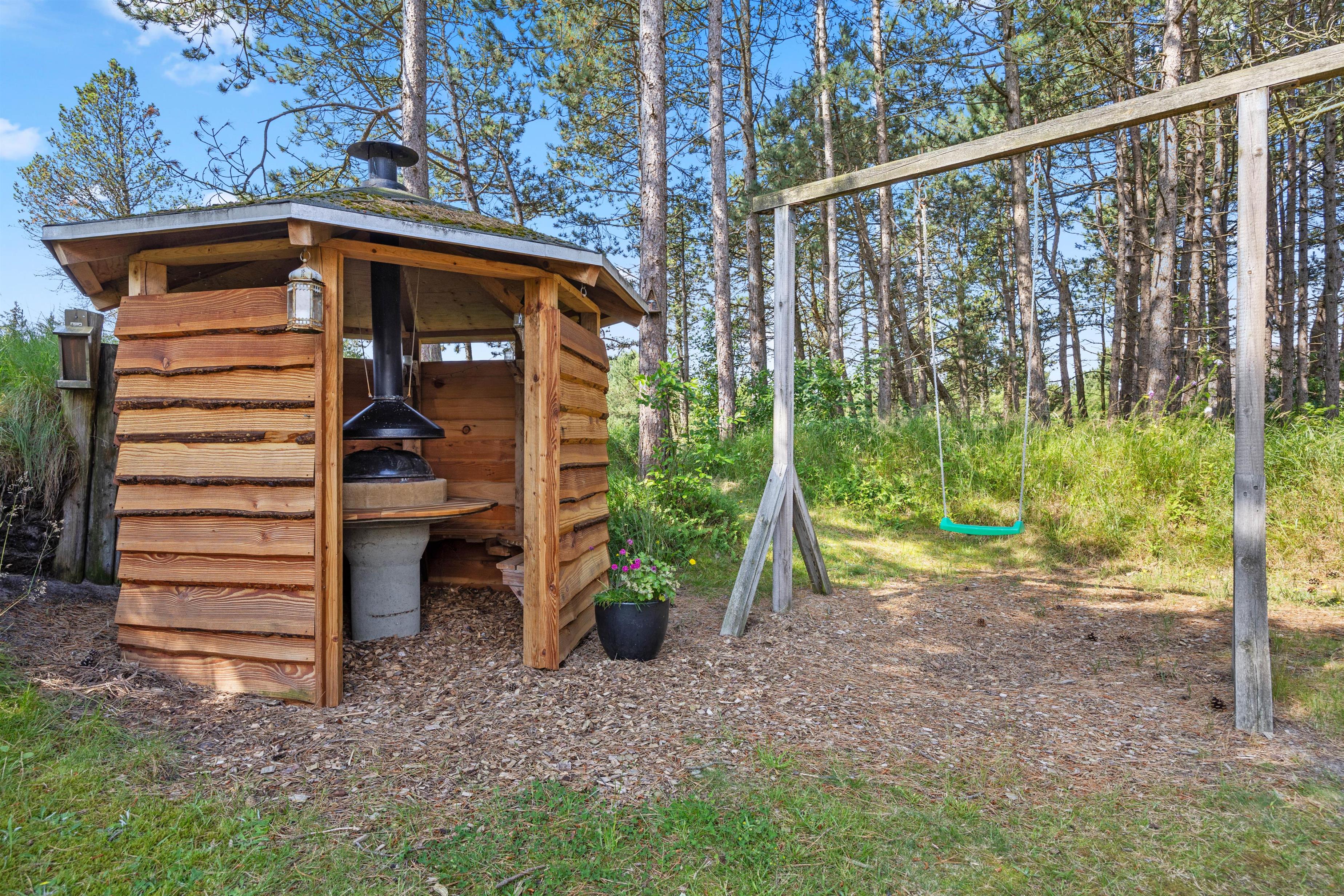 Et højdepunkt ved sommerhuset på Råbjergvej 41 er klart de skønne omgivelser og udendørsarealerne. Rundt om træhuset finder I flere solrige spots, hvor I kan slappe af i havemøblerne. Her kan I spille kort, planlægge feriedagene eller blot slappe af med en god bog – imens leger børnene på gyngerne eller hopper på trampolinen.