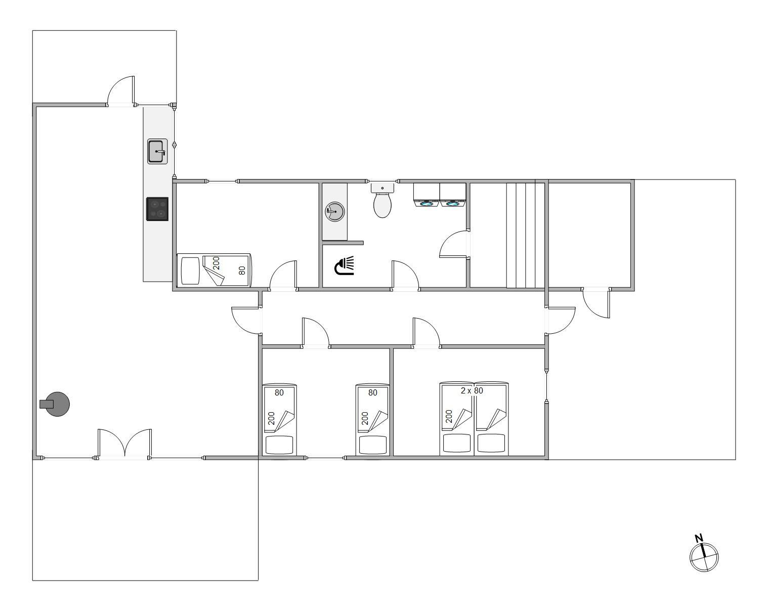Med plads til 5 gæster, er de 5 sovepladser fordelt på 3 fine soveværelser. Det ene soveværelse er med dobbeltseng, mens de andre er indrettet med enkeltsenge. På badeværelset finder I både vaskemaskine og tørretumbler, og herfra er der adgang til saunaen, hvor I kan blive varmet godt igennem efter en gåtur langs vandet.