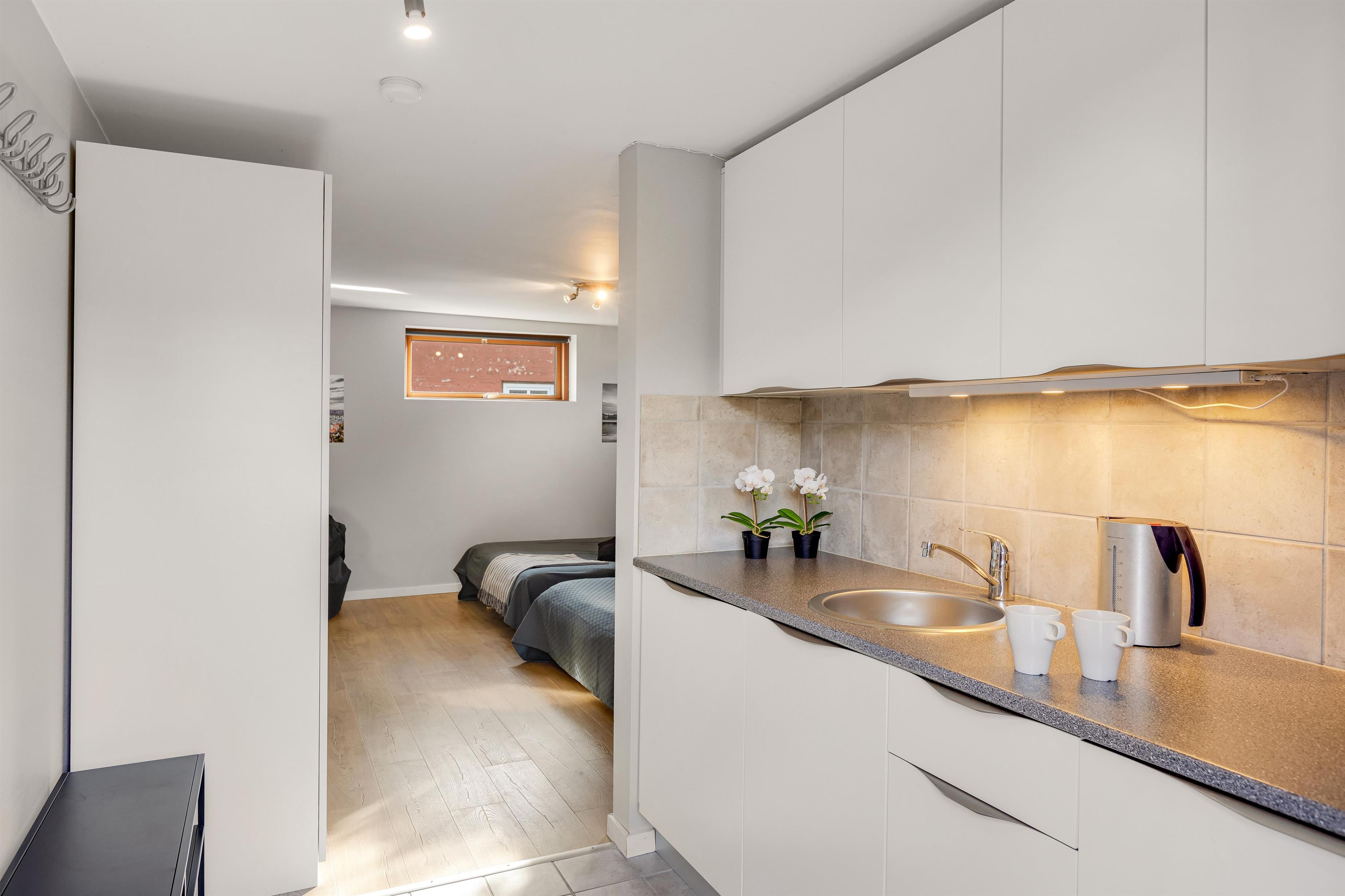 I hele hovedhuset samt i annexets badeværelse er der fliser med gulvvarme, mens opholds-/soveområdet i annexet er belagt med trælaminat. Efter en dag på stranden sørger vaskemaskine og tørretumbler hurtigt for friske håndklæder.