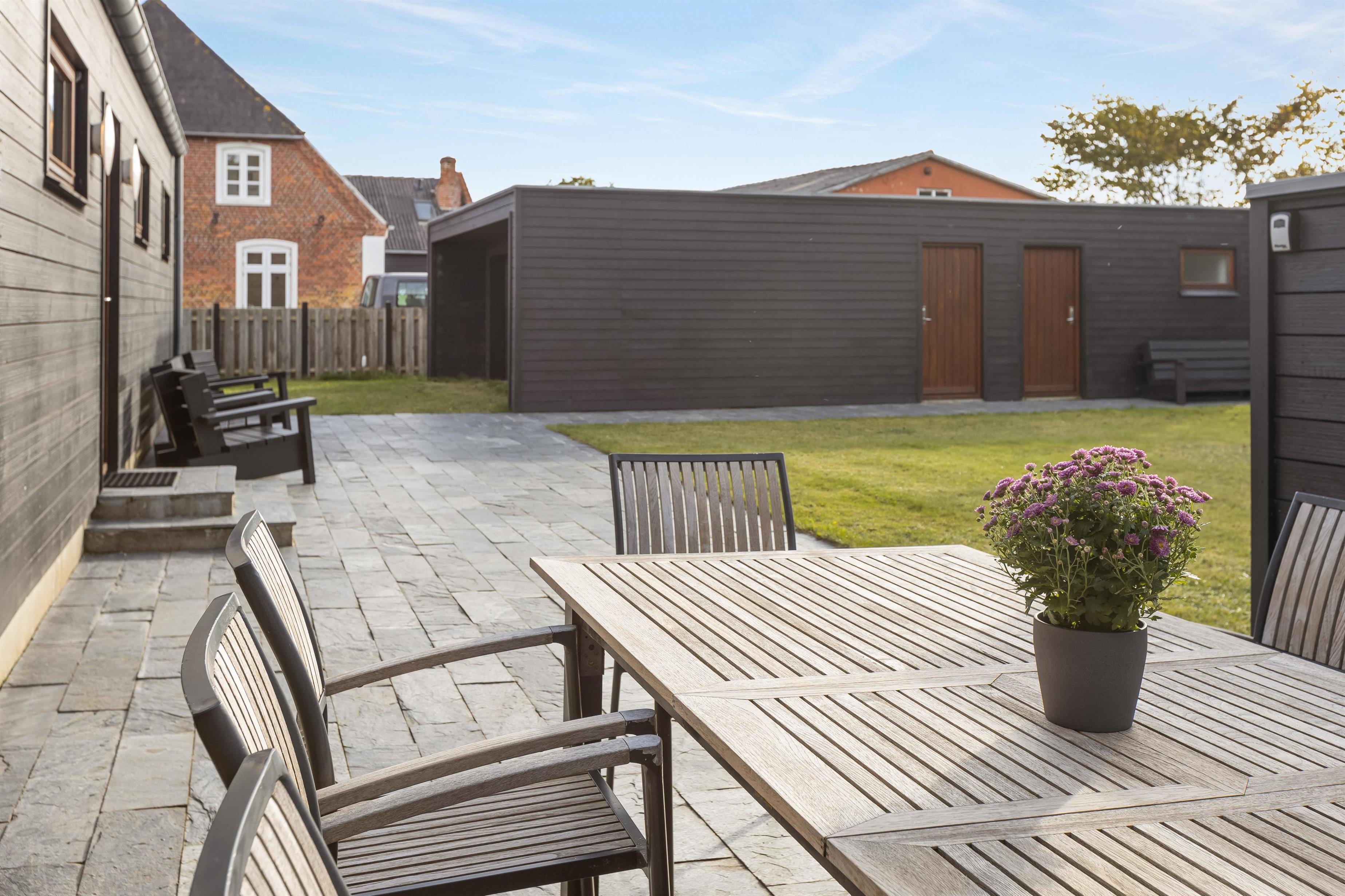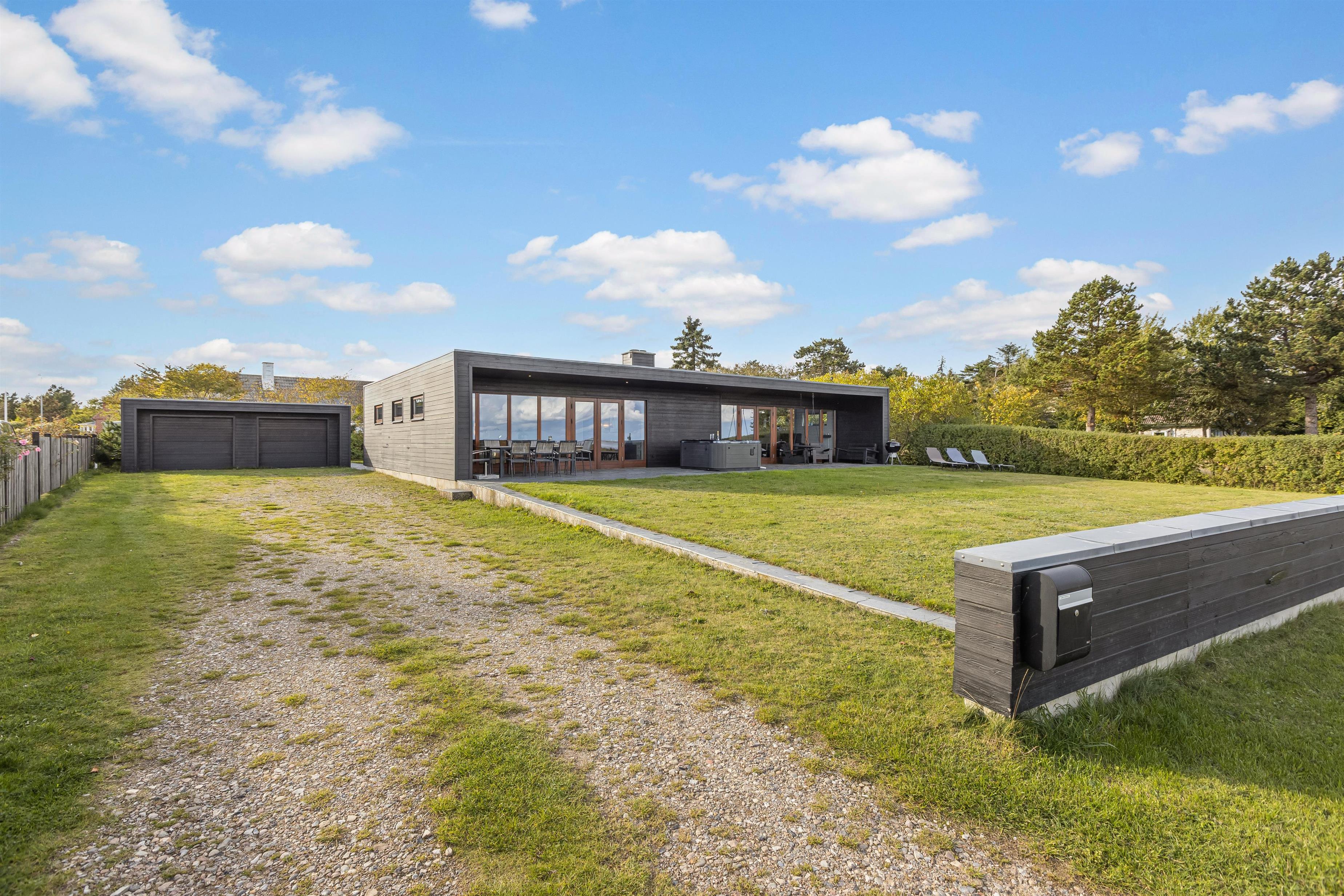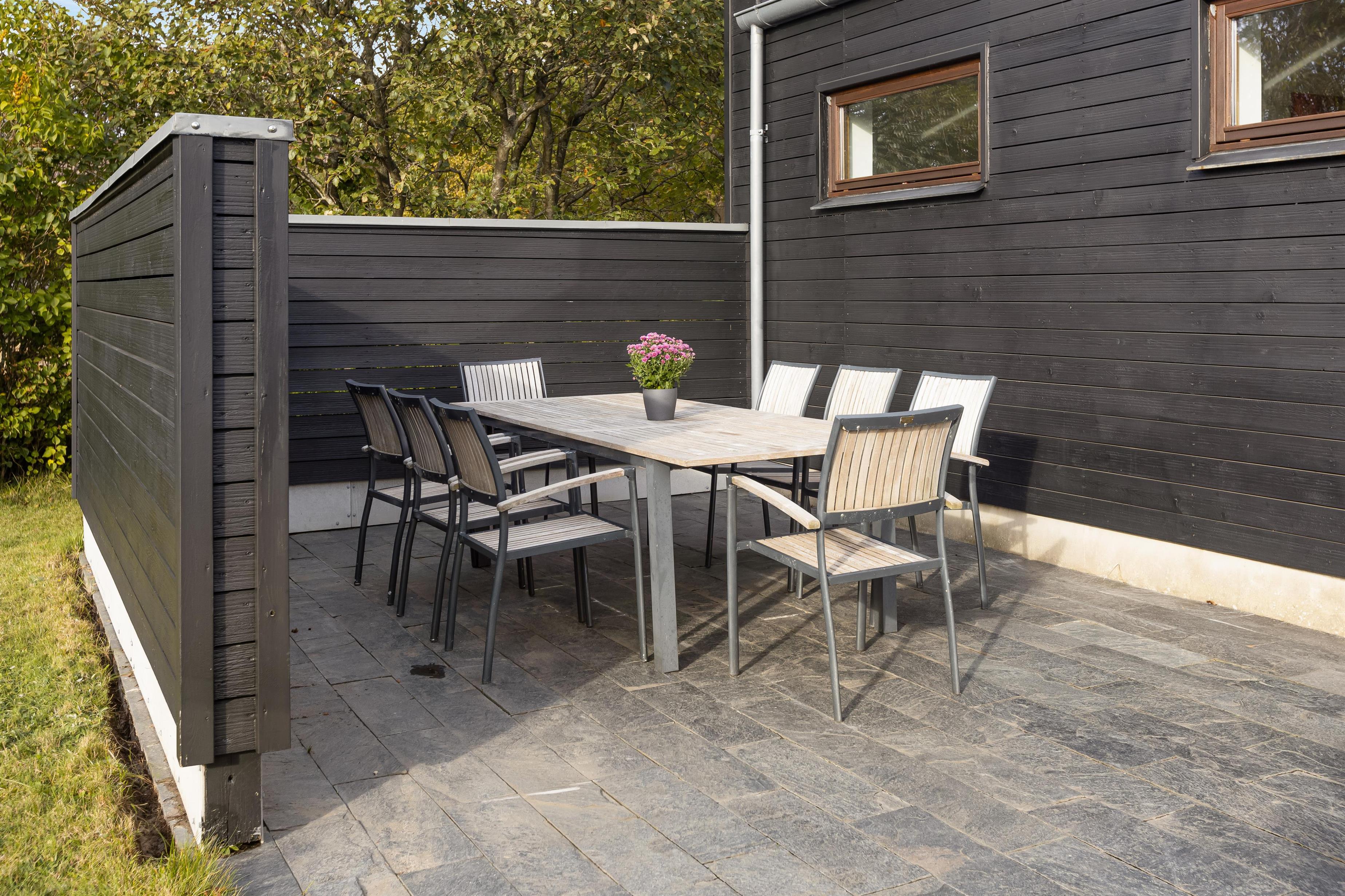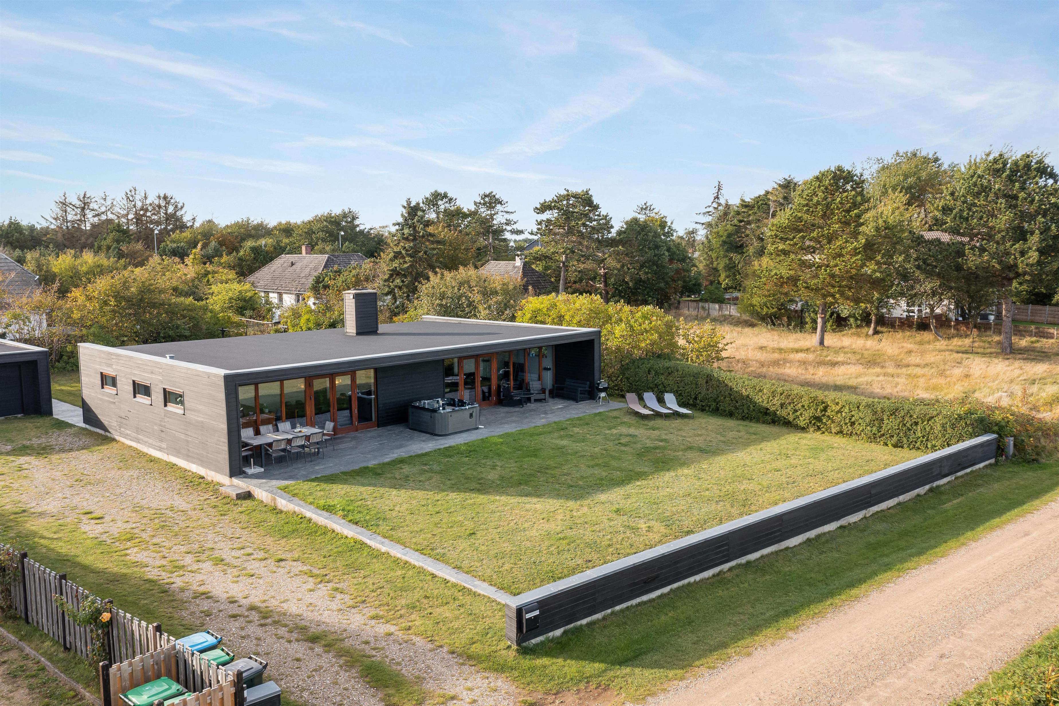 Feriehuset ligger på en 1.247 m² stor græsgrund med masser af plads til leg og afslapning. Mens børnene leger udenfor, kan I slappe af på liggestolene, læse en bog eller nyde en kop kaffe.