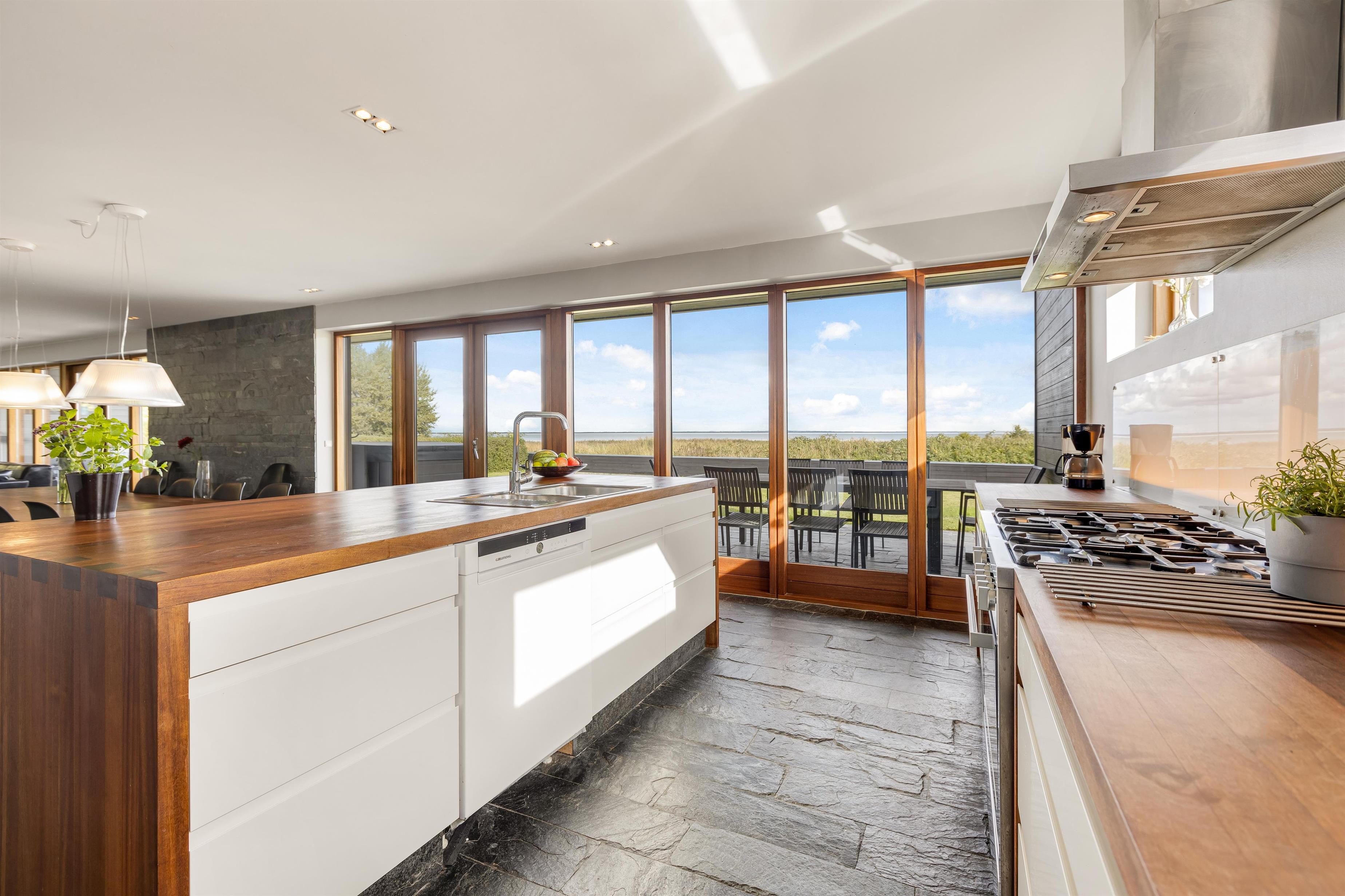 Hele østsiden af huset består af en stor, åben opholdsstue, hvor køkken, spiseplads og stue smelter harmonisk sammen. Her kan I tilbringe mange hyggelige timer sammen – mens maden tilberedes, kan børnene spille brætspil ved spisebordet. Efter aftensmaden tager opvaskemaskinen over, så der er tid til en afslappende filmaften. Der er dansk TV og Chromecast, og brændeovnen skaber ekstra hygge på kølige dage.