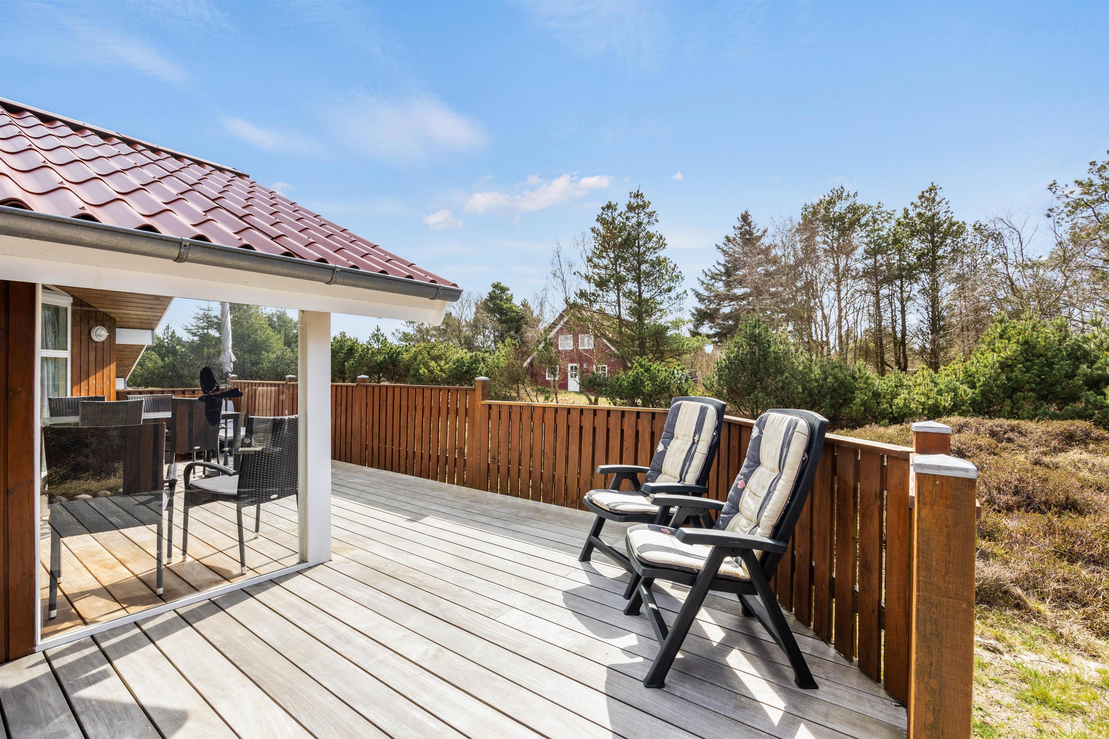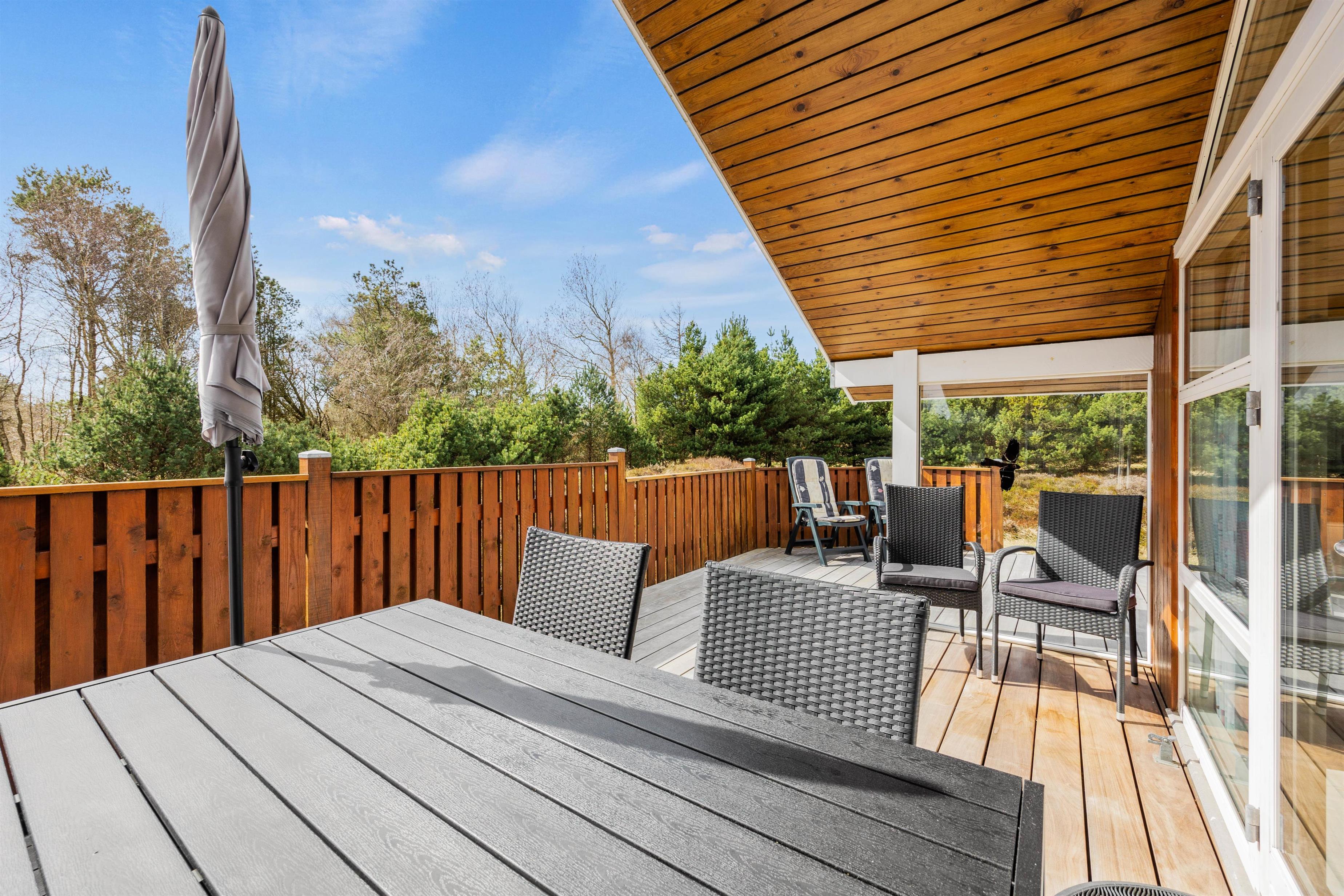 Den delvist overdækkede terrasse indbyder til mange timer i den friske luft. Her kan I altid finde et solrigt eller, hvis det er nødvendigt, et beskyttet og skyggefuldt sted at trække jer tilbage og slappe af i fred.