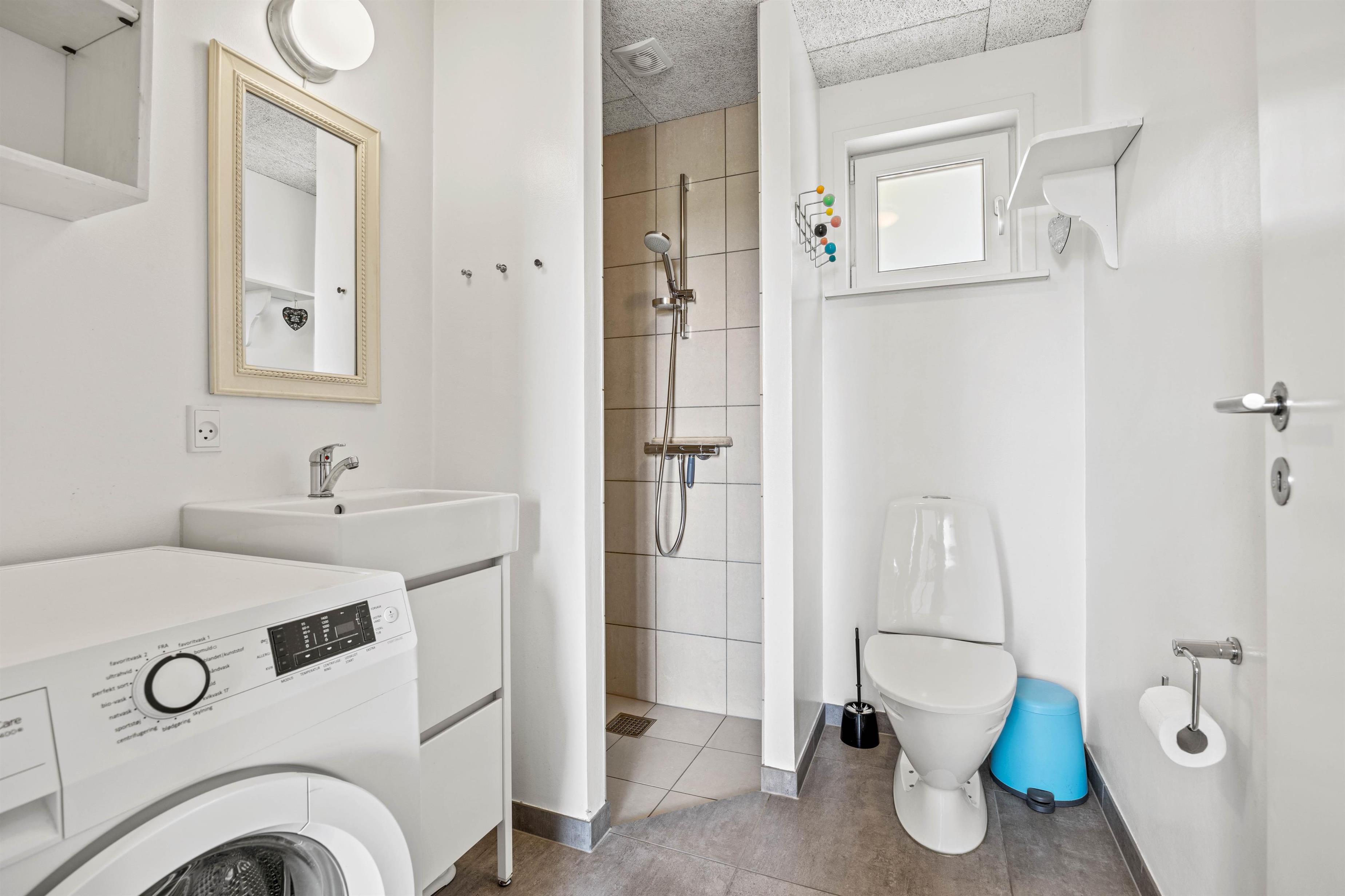 På sommerhusets badeværelse er der gulvvarme, så I ikke fryser om tæerne efter badet. Her er desuden en vaskemaskine, så I kan vaske lidt tøj eller håndklæder, hvis det skulle blive nødvendigt.