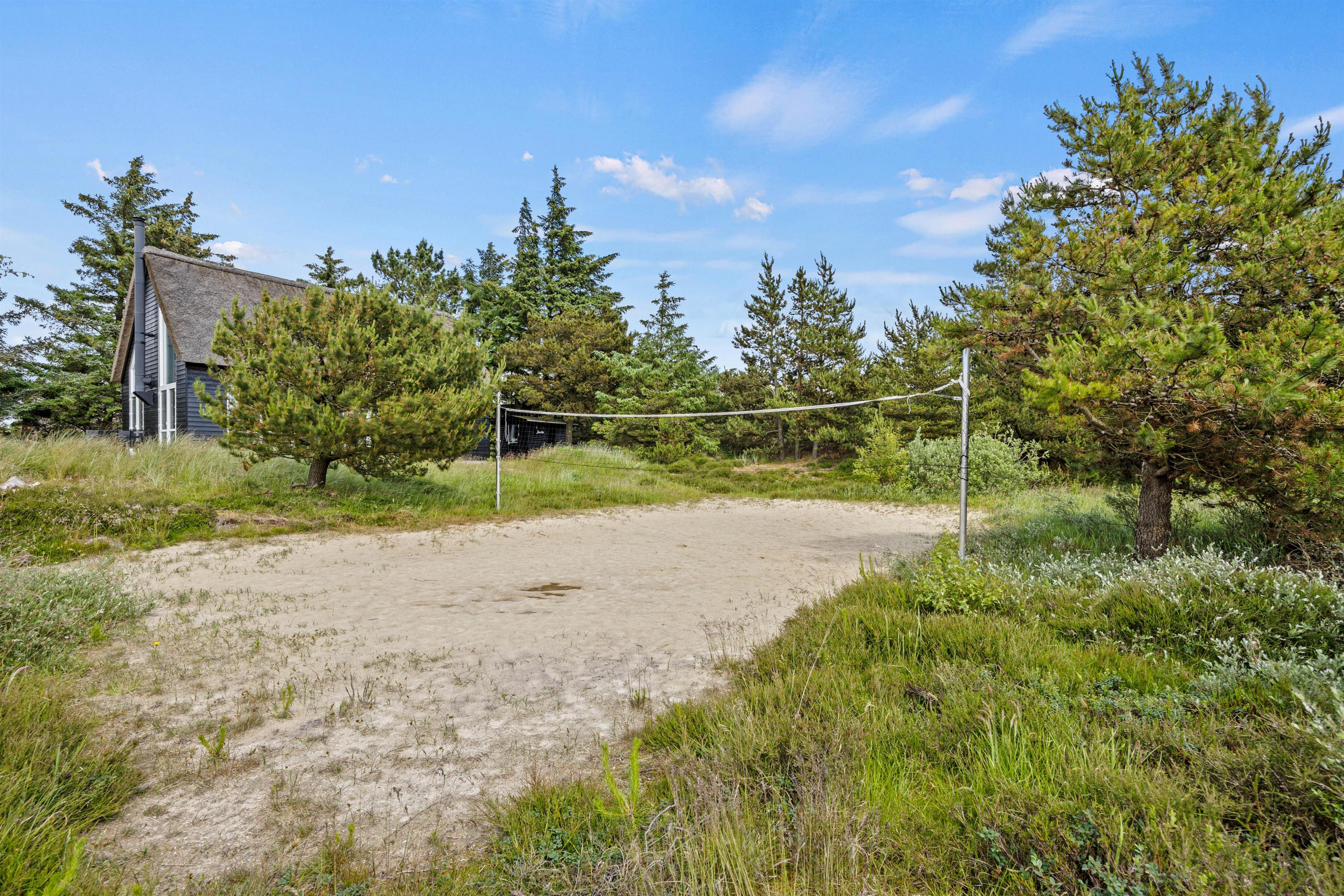 Sommerhuset ligger i udkanten af Kongsmark på en skøn naturgrund. Her har I jeres egen beachvolleybane, så familien kan afholde en sjov og spændende turnering.