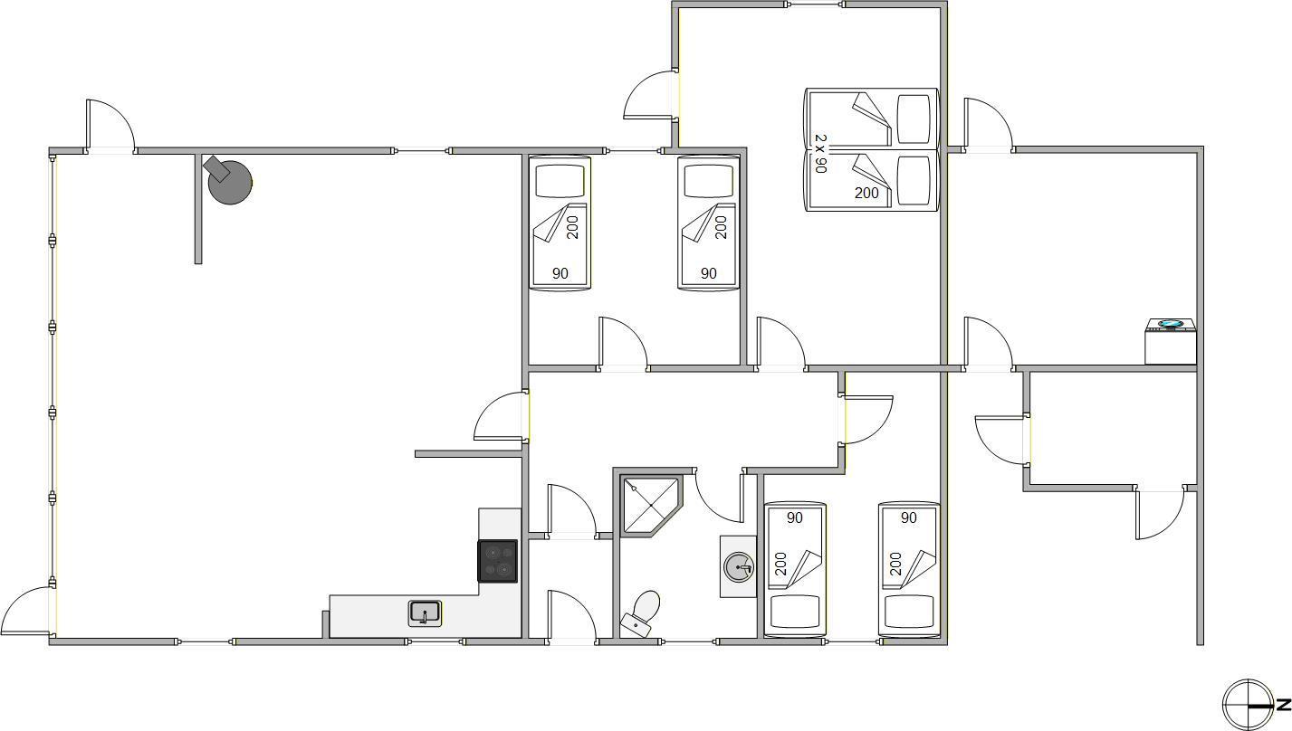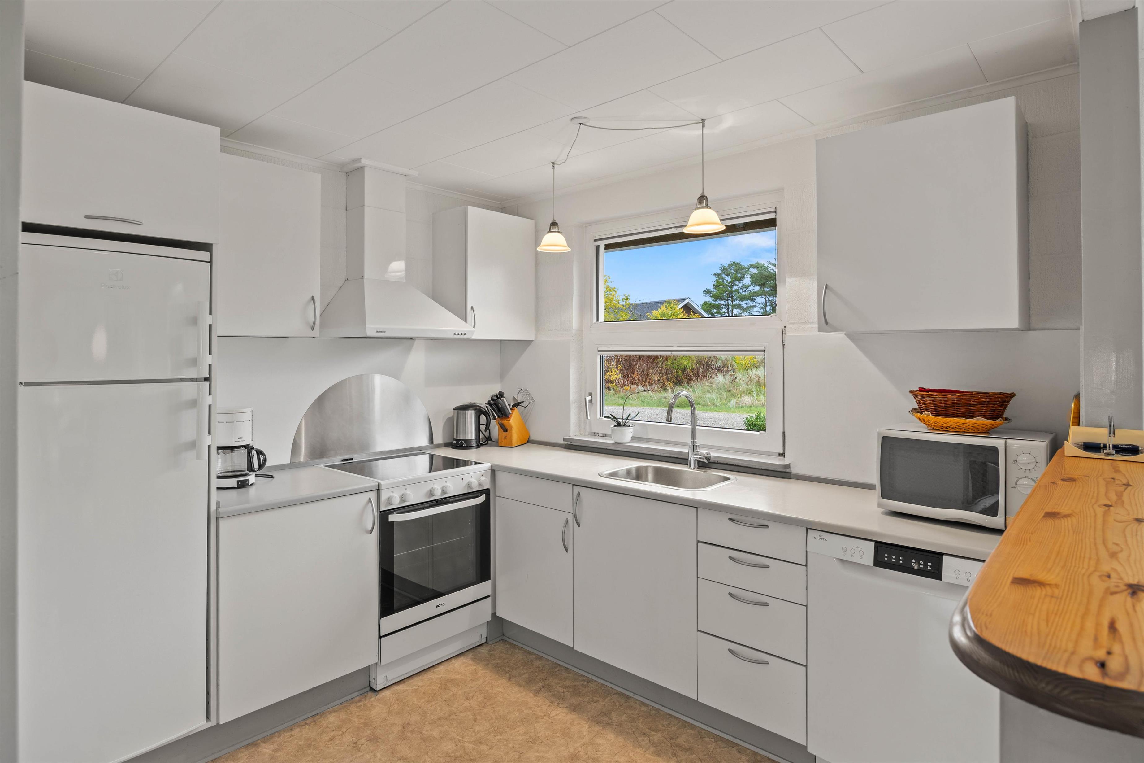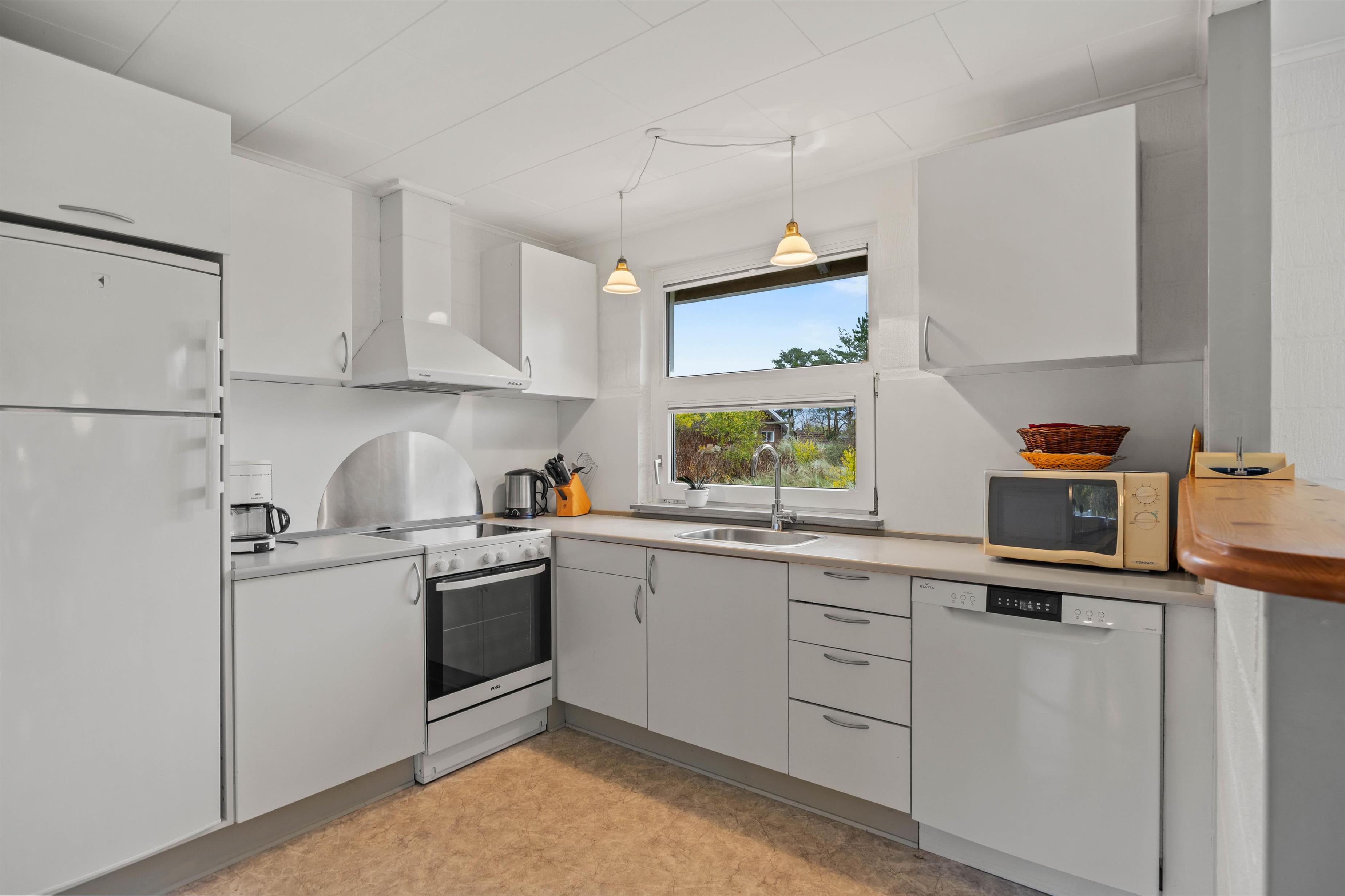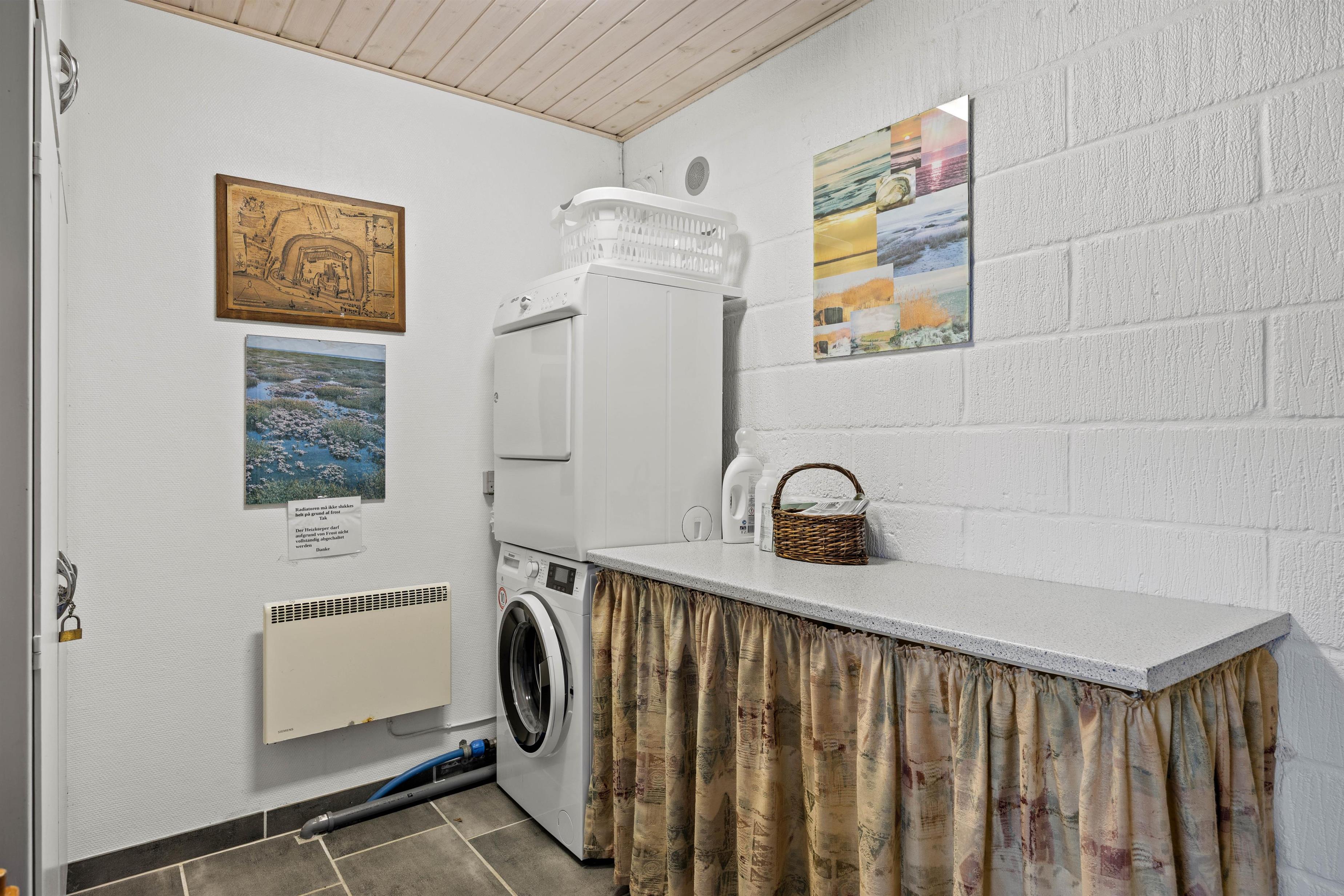 Sommerhuset er udstyret med en moderne opvaskemaskine og vaskemaskine, der gør de praktiske opgaver nemme at overskue, så I kan bruge mere tid på at slappe af og nyde jeres ferie. Desuden sikrer en luft til luft varmepumpe og gulvvarme i badeværelset, at komfortniveauet altid er højt, uanset årstiden.