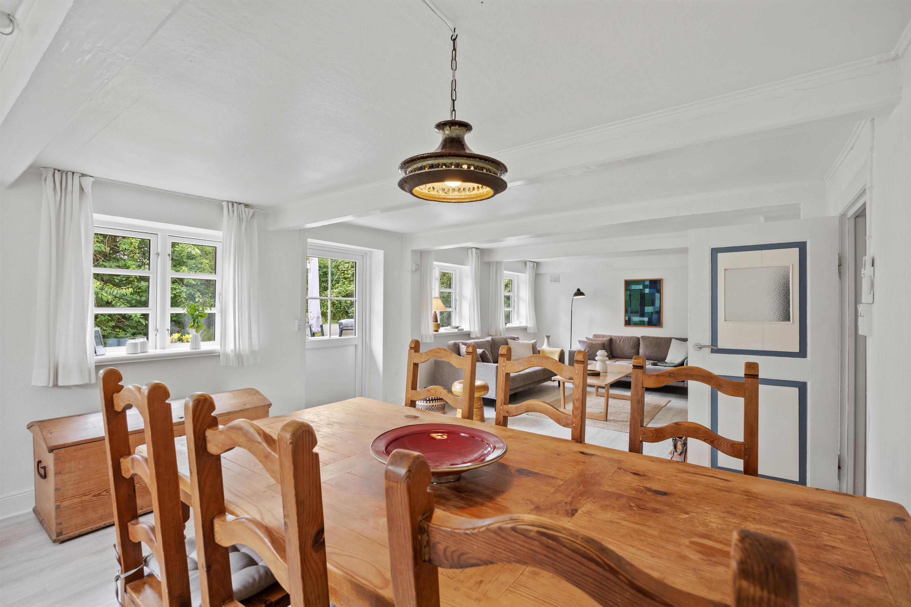 Landlig stil og dejligt opholdsrum med brændeovn