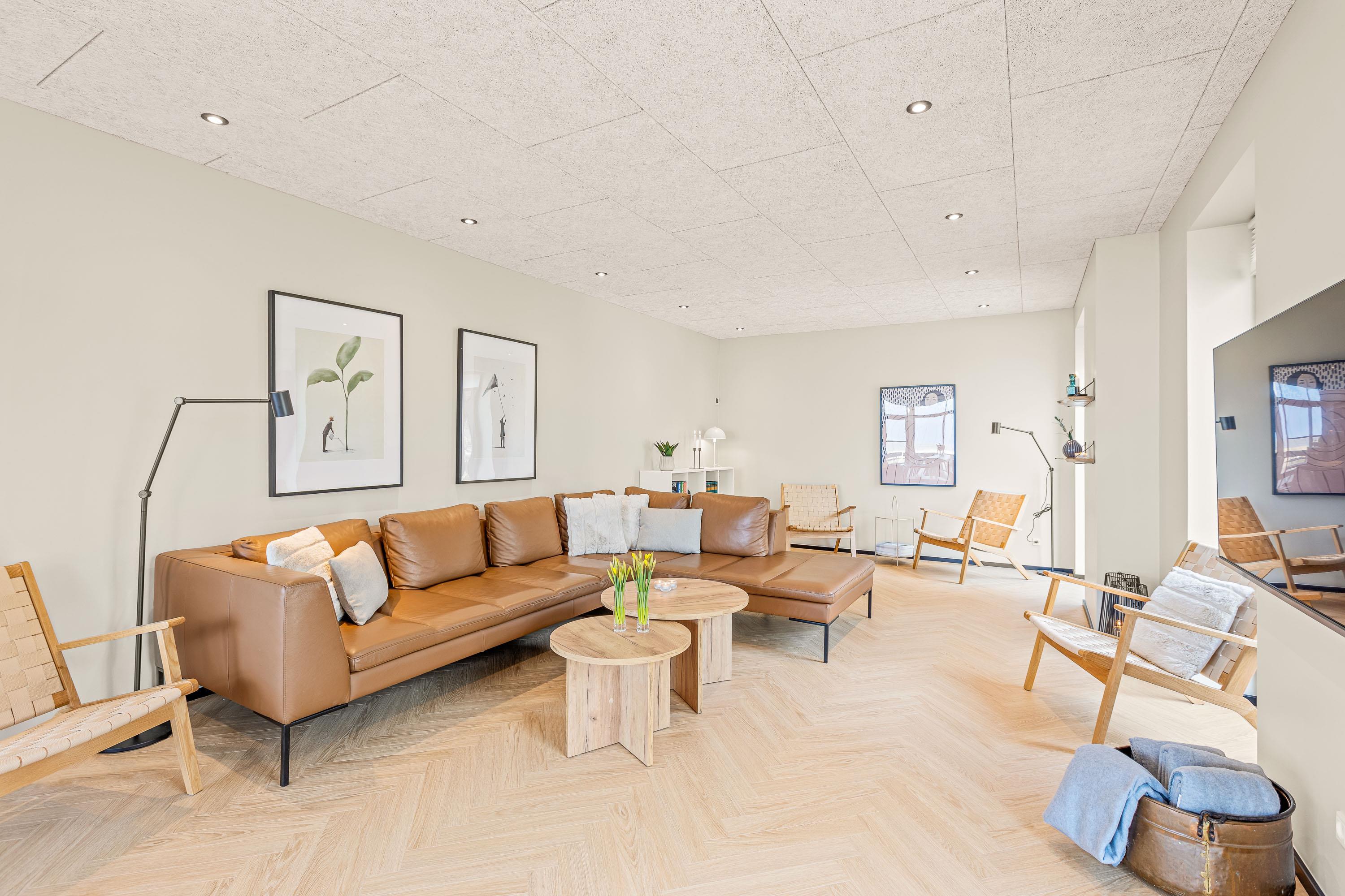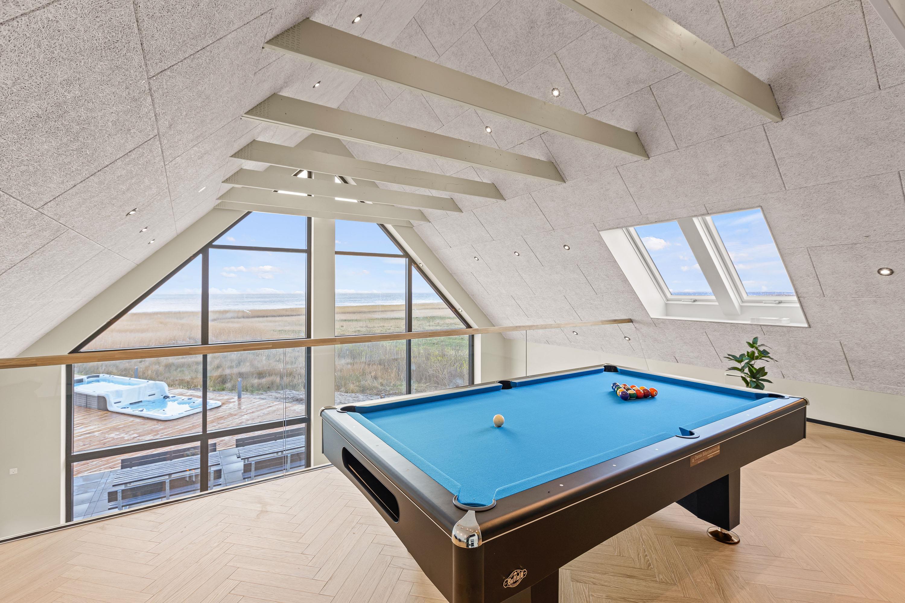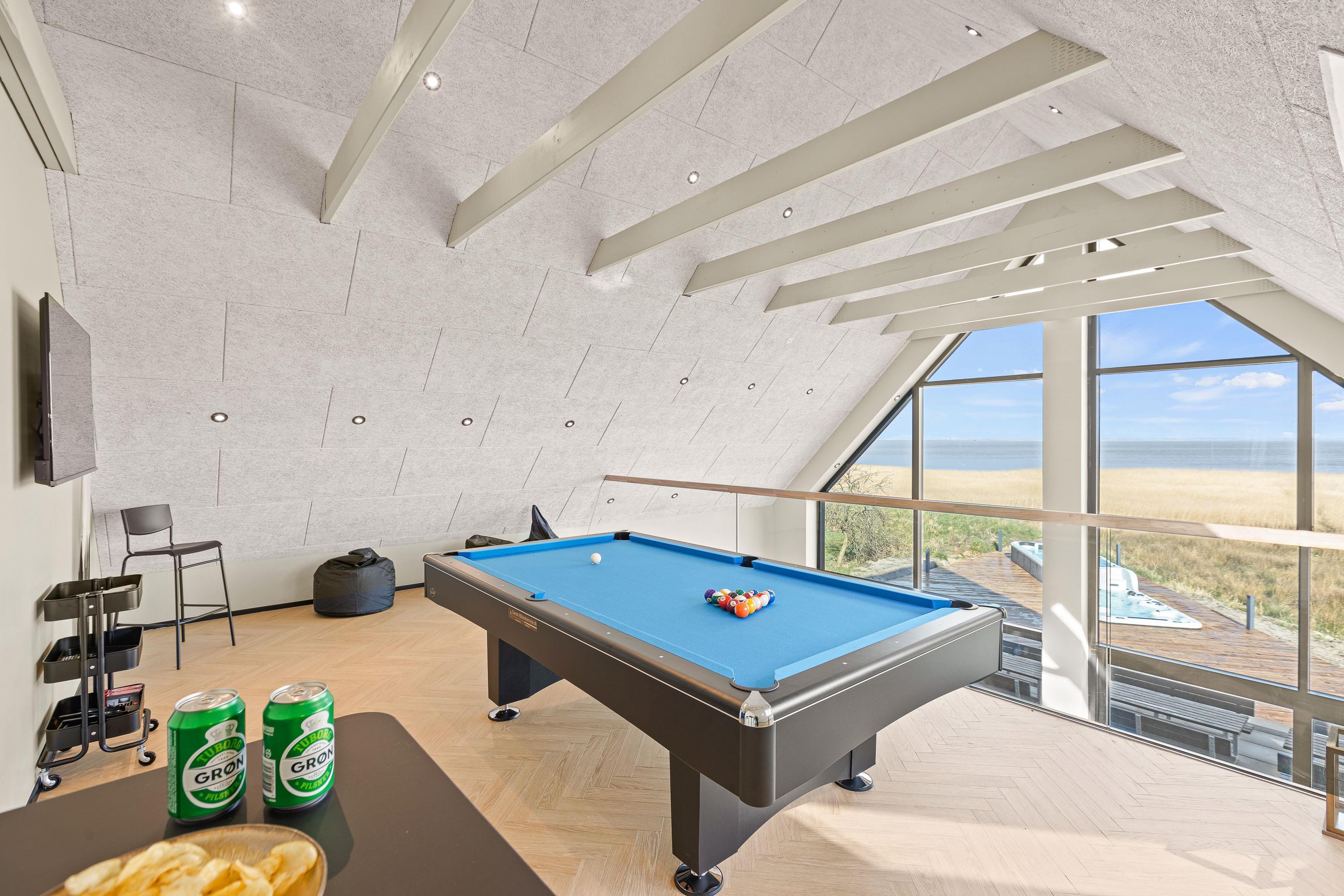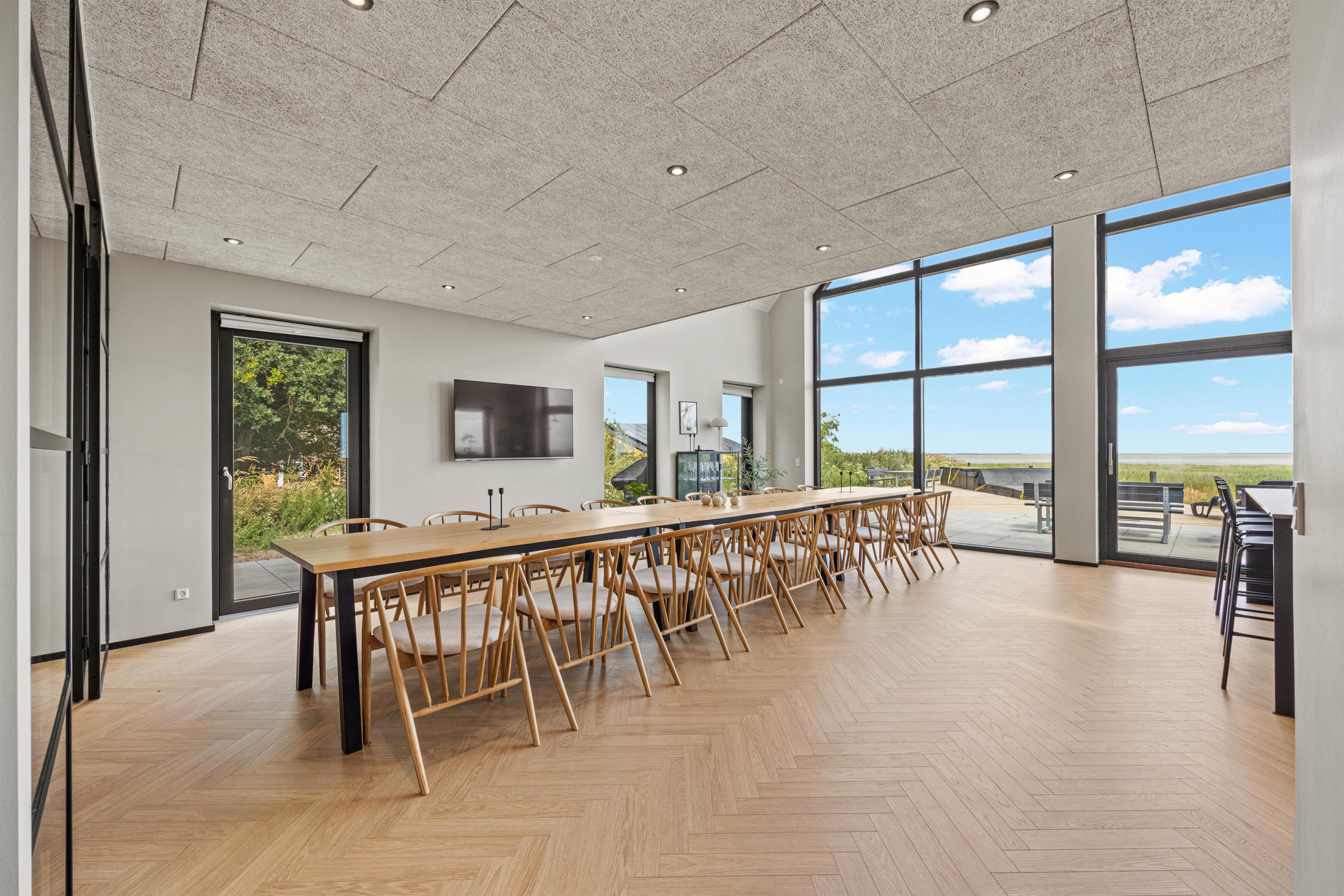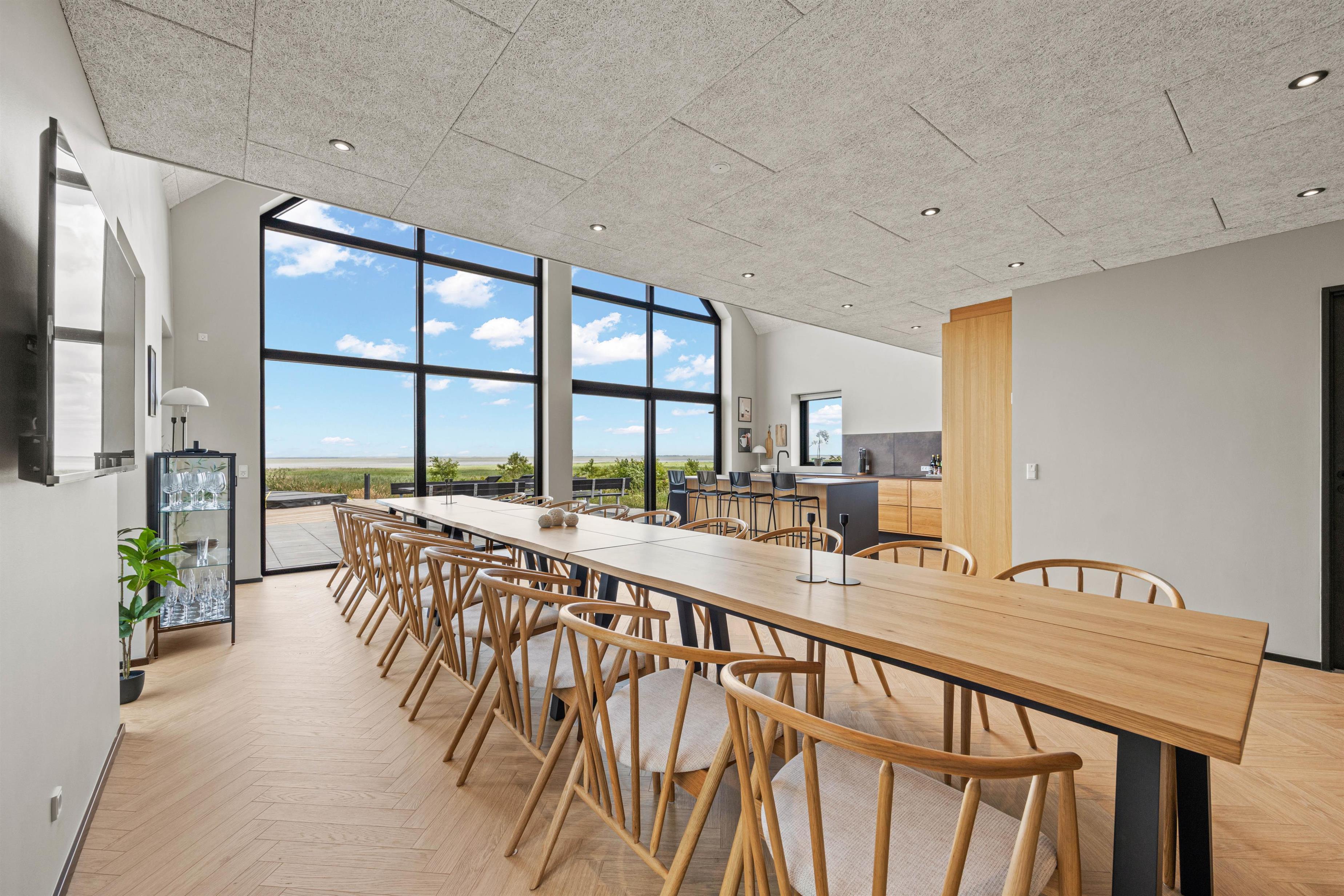På Gl Færgevej 11 finder du dette sommerhus fra 2023 med plads til op til 18 personer. Det åbne køkken med køkken-ø i forbindelse med opholds- og spiseplads, bliver gruppens samlingssted. Udover god plads til tilberedning af skønne måltider og samvær, er her også panoramaudsigt direkte ud til det fantastiske Vadehav. En rummelig fælles opholdsstue med fladskærms-TV giver mulighed for afslapning i sofagruppen eller ro til at læse en god bog. I aktivitetsrummet kan I spille poolbillard, og hygge jer uden at forstyrre resten af selskabet. Alle opholds- og soverum har trælaminatgulve.