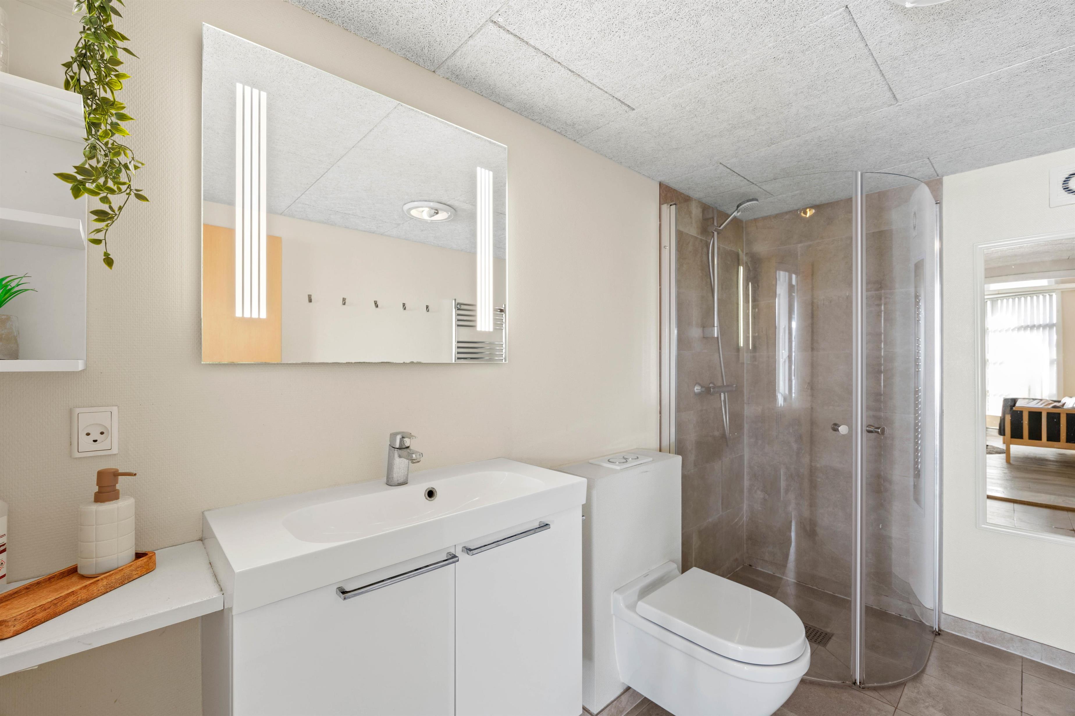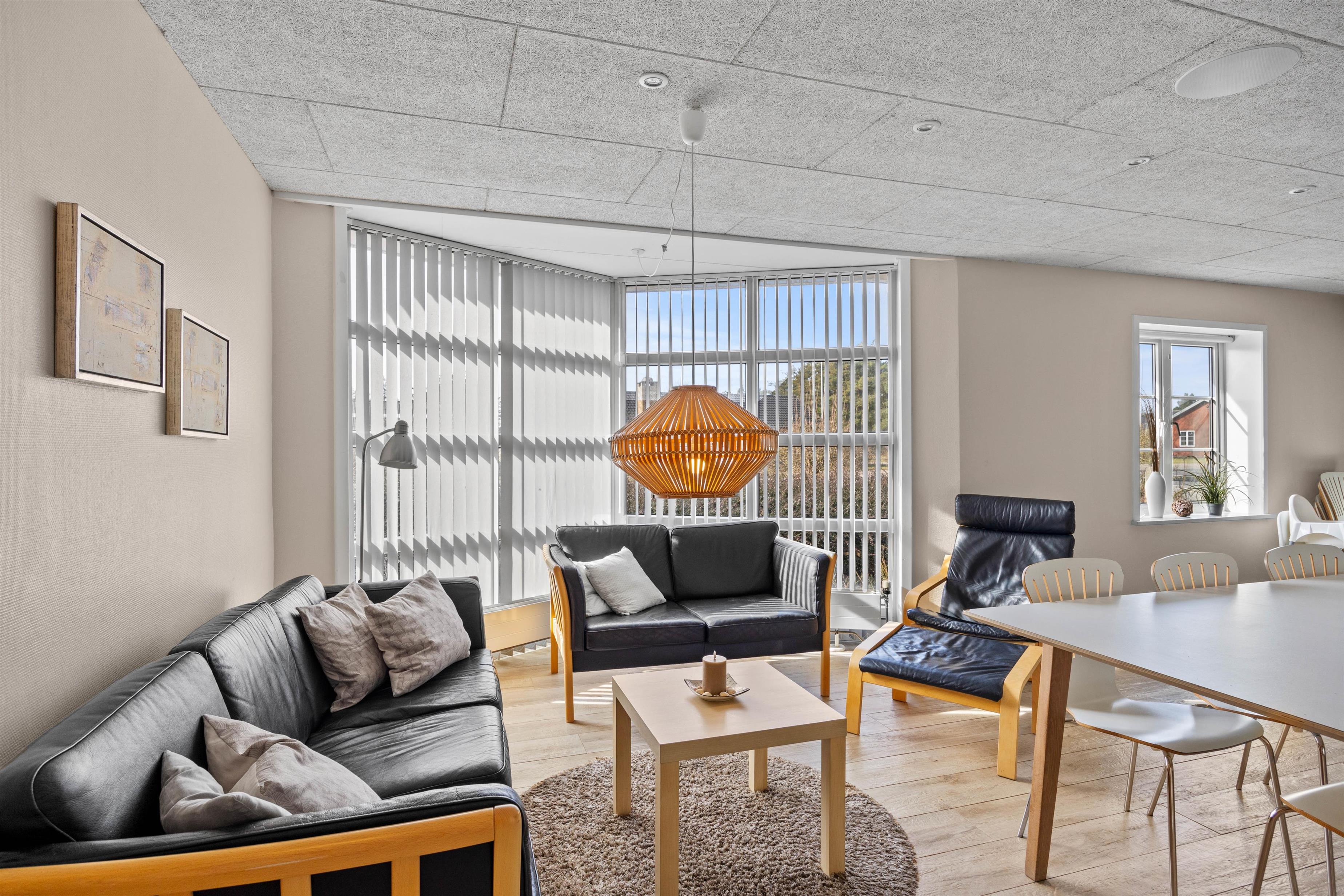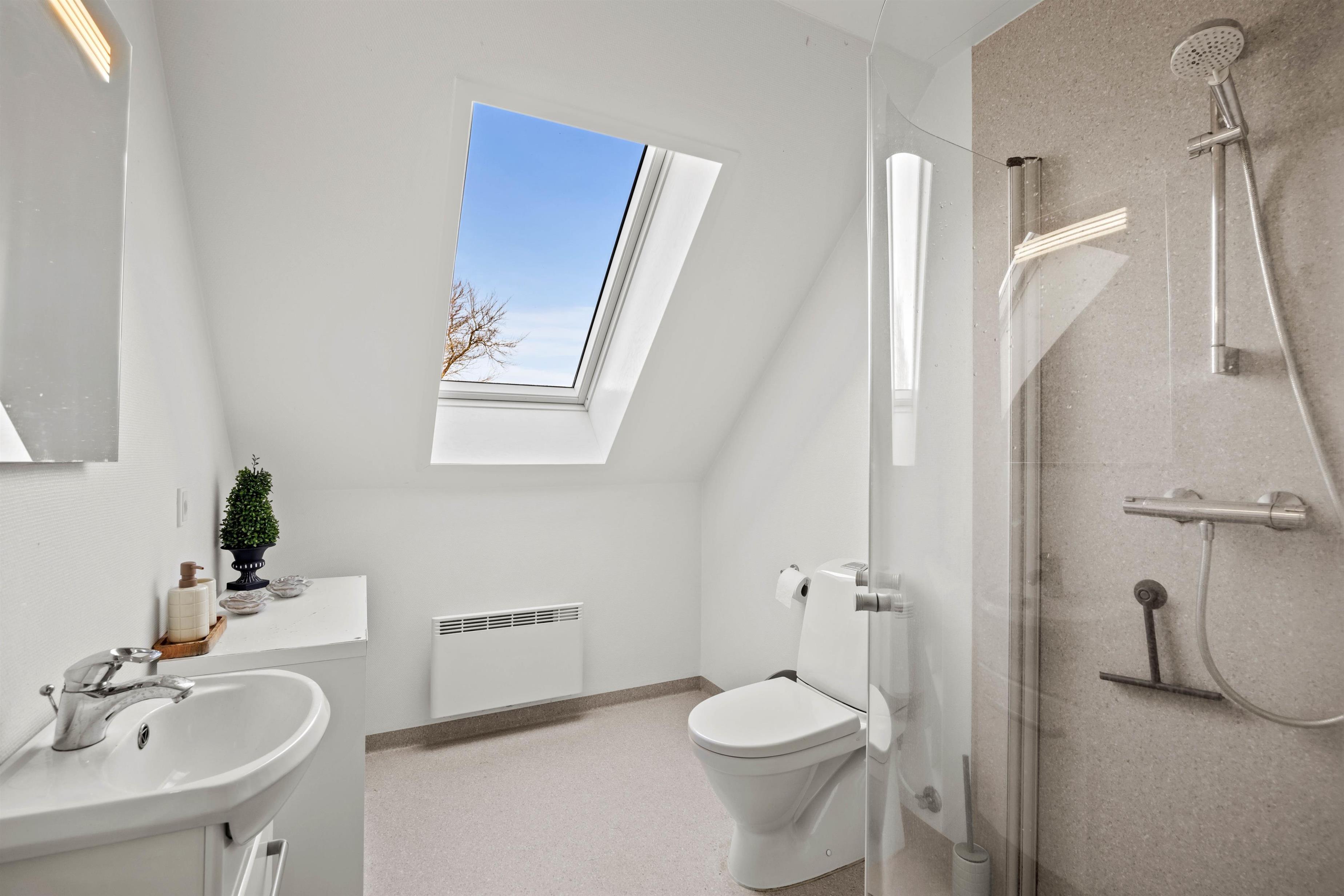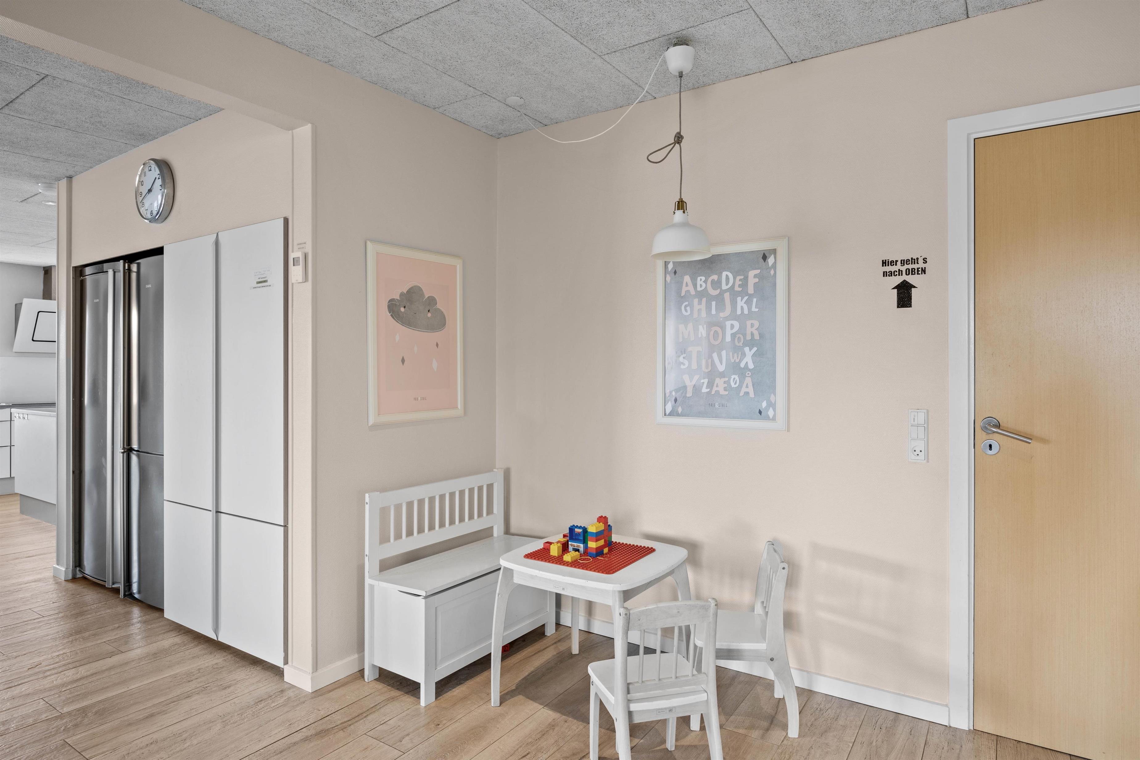 Den rummelige opholdsstue med flere siddegrupper indbyder til hygge, mens brændeovnen skaber en varm og behagelig atmosfære. Praktiske faciliteter som opvaskemaskine, vaskemaskine og tørretumbler samt 3 badeværelser og 2 gæstetoiletter sikrer, at alle får en behagelig oplevelse.