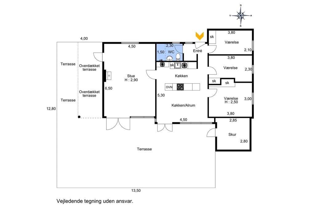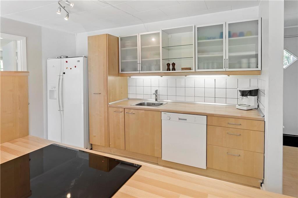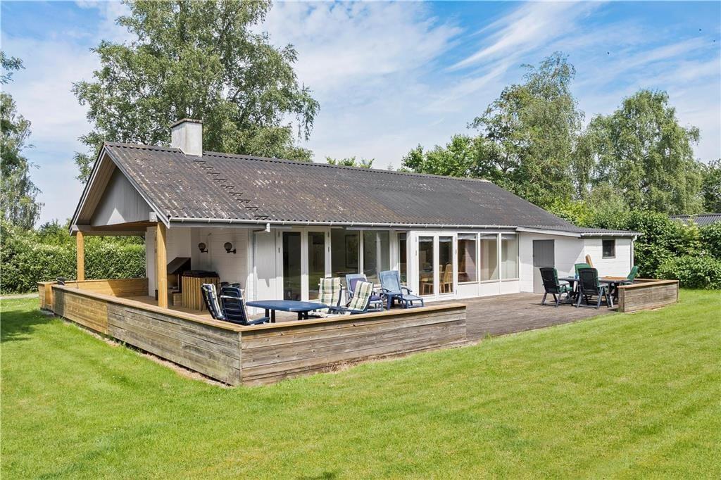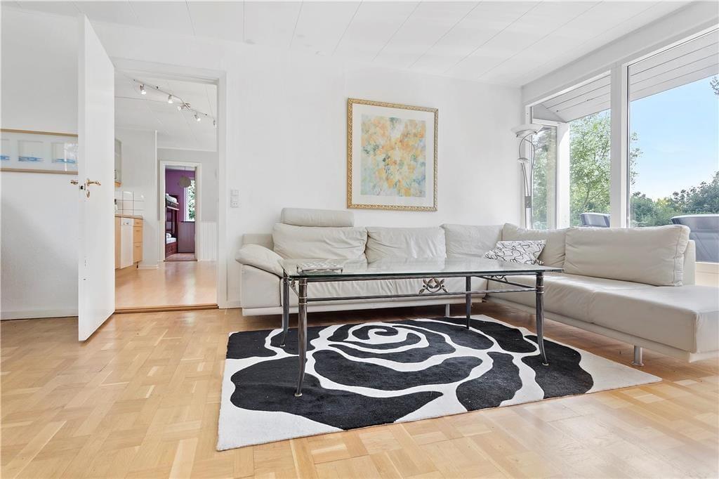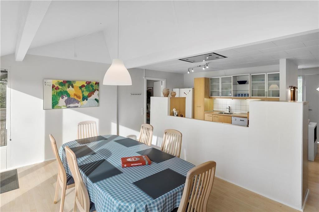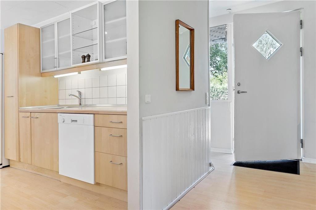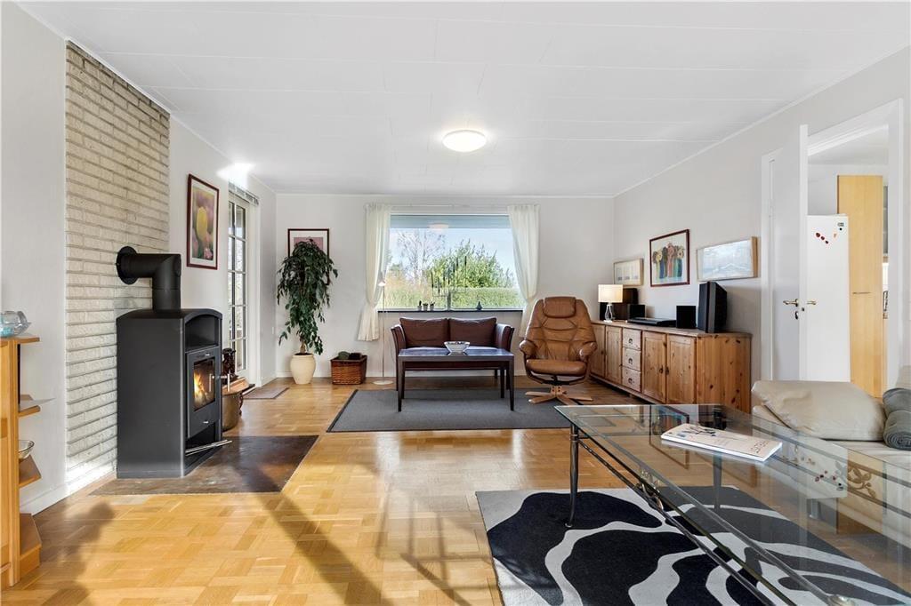 Indrettet med adgang til en lille entré, hvorfra der er indgang til husets badeværelse samt det ene soveværelse. Videre frem kommer man til køkken al-rummet, som indeholder et pænt køkken, som ligger i åben forbindelse med spiseafdelingen og som også byder på udgang til den dejlige træterrasse. Køkken-alrummet giver også adgang til husets 2 sidste soveværelser, samt den store dejligstue, som byder på både brændeovn, sofagruppe, lænestolshjørne og udgang til terrassen