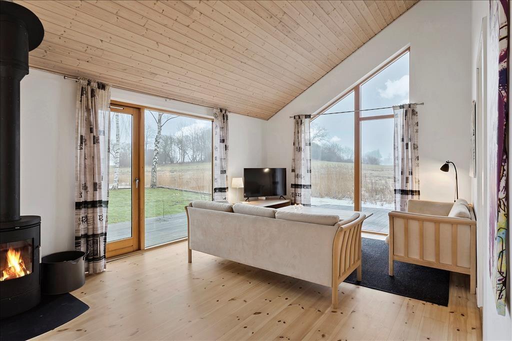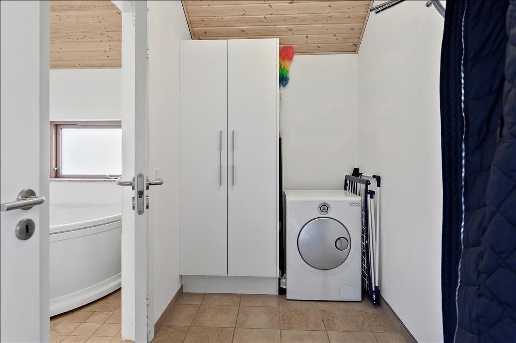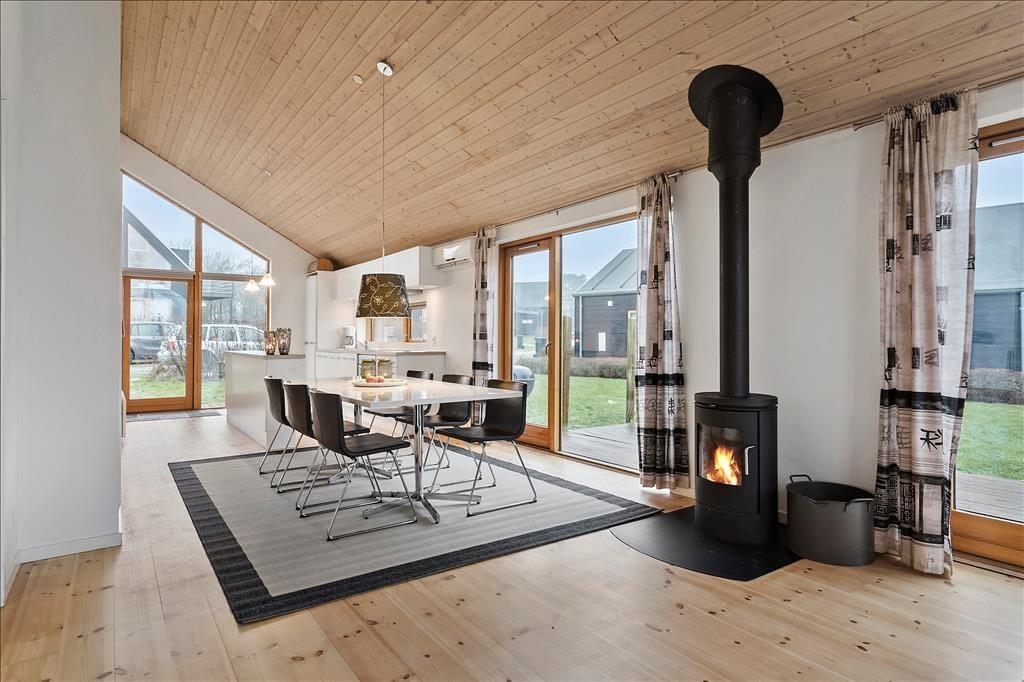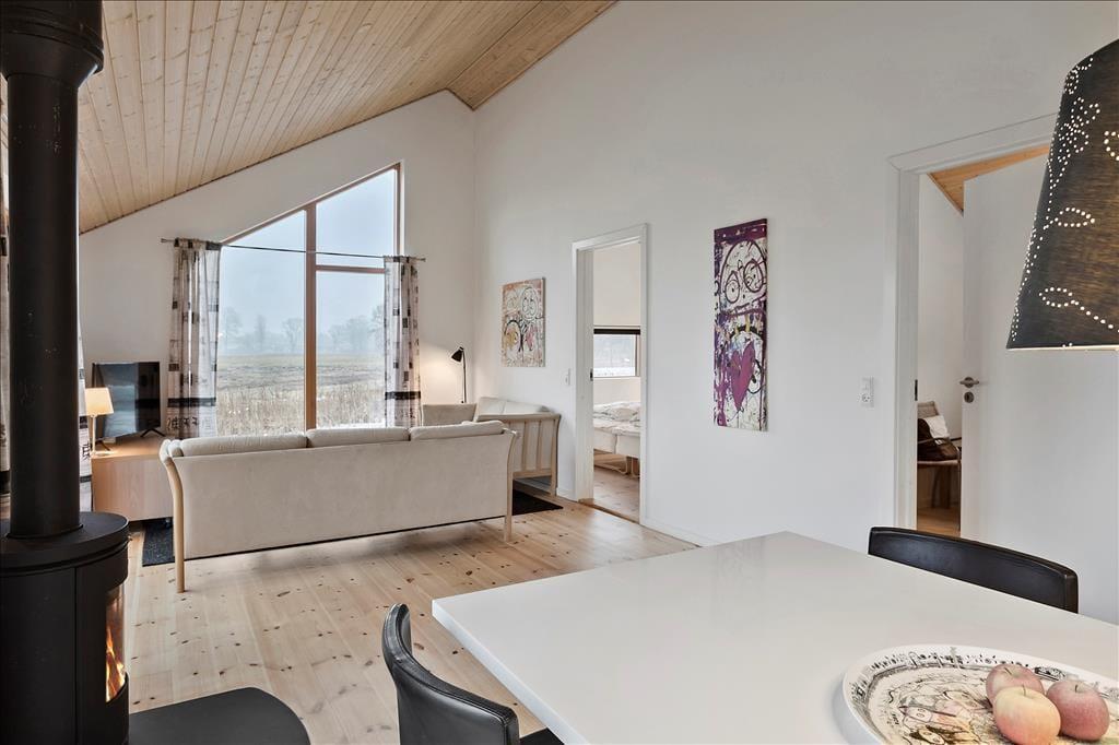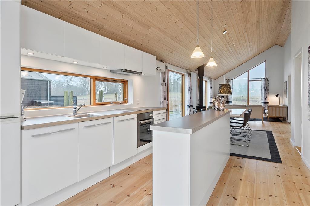 Fritidshuset indeholder: Entre ved køkken-alrummet som indeholder et skønt køkken, samt spiseafdeling tæt på. Bryggers og badeværelse med WC, bruser og spa. Stue med brændeovn og sofaafdeling, samt 3 gode soveværelser.