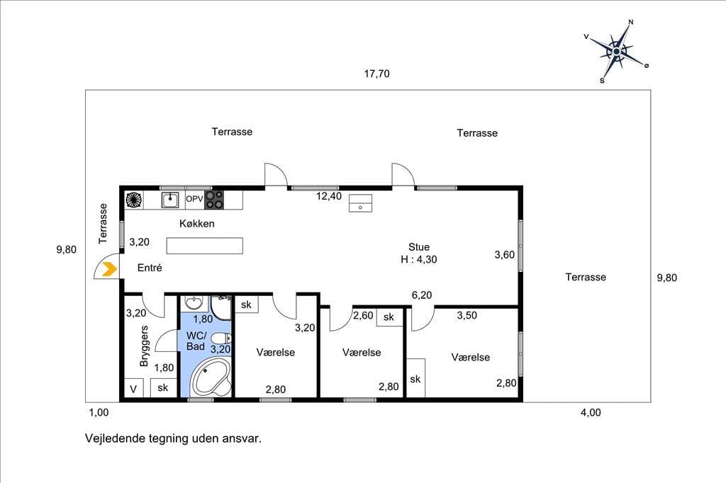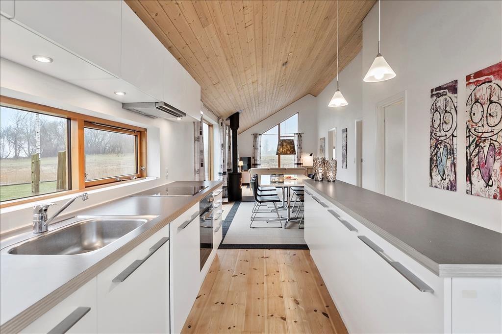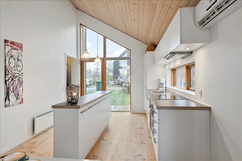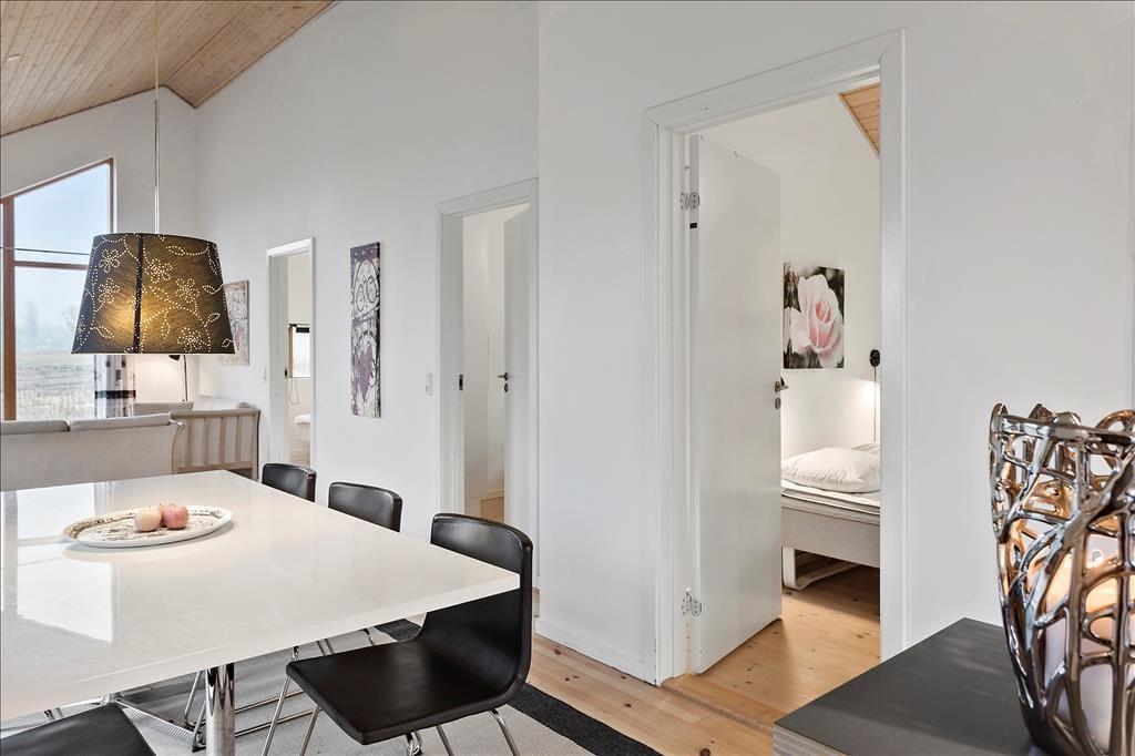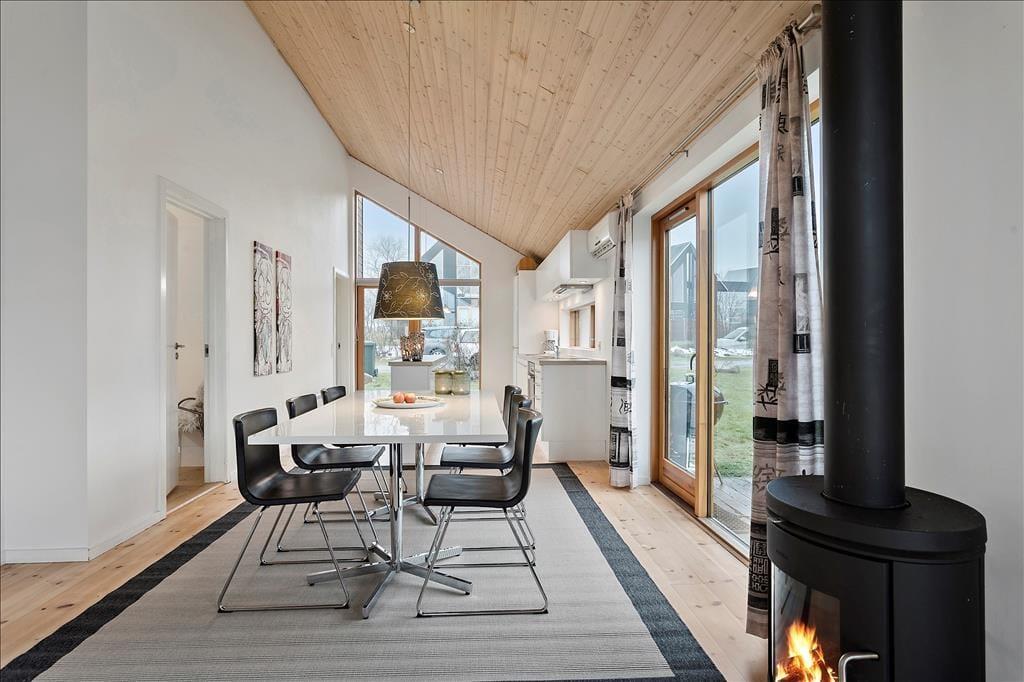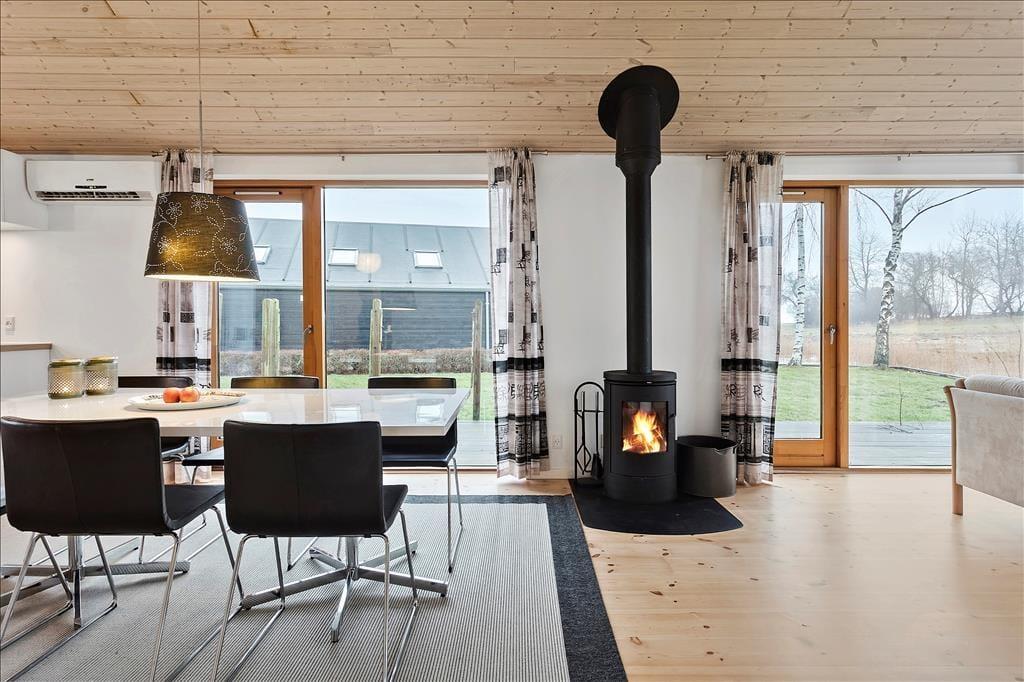 Fritidshuset indeholder: Entre ved køkken-alrummet som indeholder et skønt køkken, samt spiseafdeling tæt på. Bryggers og badeværelse med WC, bruser og spa. Stue med brændeovn og sofaafdeling, samt 3 gode soveværelser.