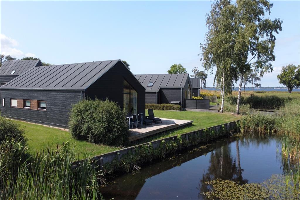 Hyggeligt fritidshus i Kongsnæs med havudsigt, spa, brændeovn og terrasse tæt på Stubbekøbings maritime miljø.