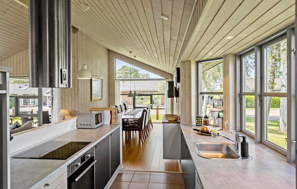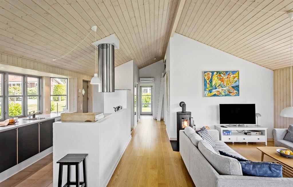 Tag familien under armen og rejs til Kongsnæs, hvor I et roligt område tæt på stranden finder denne perle af et feriehus. Indvendigt emmer det af hygge og gode indretningsløsninger med to soveværelser og en åben hems, hvor børnene kan bygge hule og overnatte. Husets hjerte er den åbne stue, der er udstyret med komfortable møbler, og som får dejlige lysindfald gennem de store vinduespartier. Skulle vejret vise lidt tænder, kan I fyre op i brændeovnen og nyde dens knitrende varme til madlavningen i det veludstyrede køkken, inden I flader ud i sofaen med en god film til langt ud på aftenen.