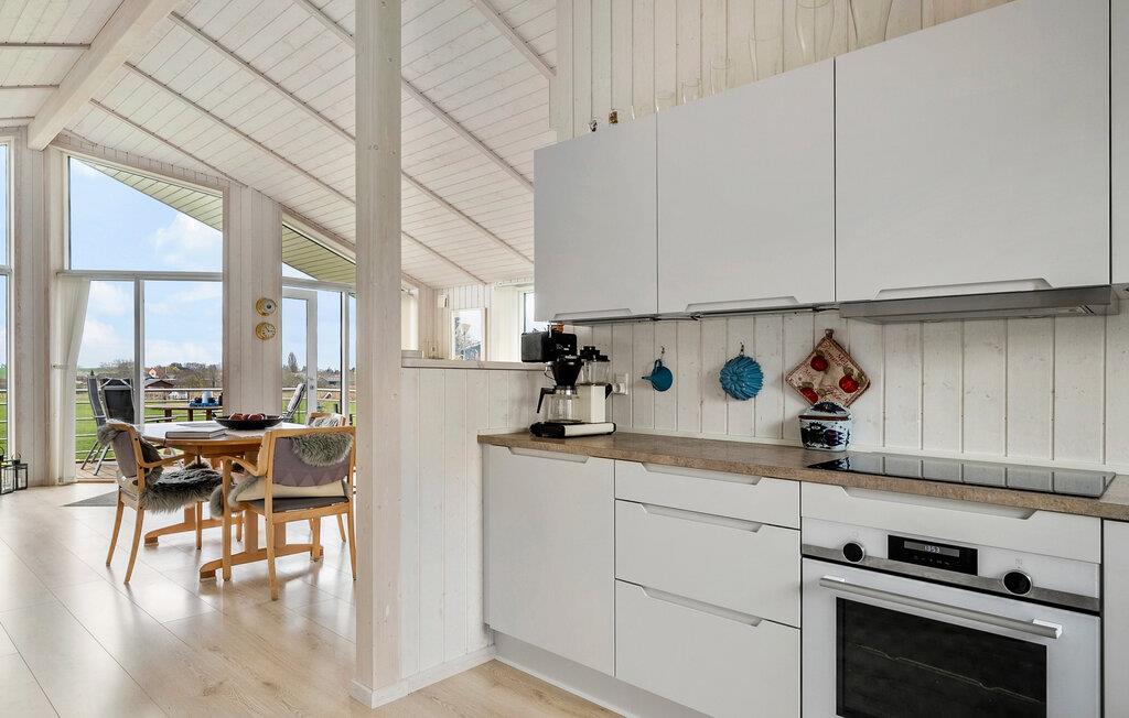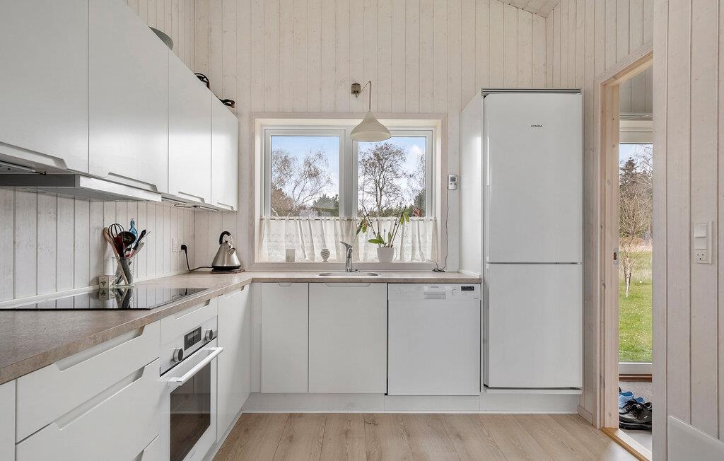 I et roligt område inviterer dette velholdte sommerhus til en afslappende ferie. Slap af i den hyggelige opholdsstue med højt til loftet, store vinduer og masser af naturligt lys. Den klare, skandinaviske stil skaber en behagelig boligatmosfære. Nyd måltiderne sammen ved spisebordet og afslut aftenen på sofaen med en god bog eller en stimulerende samtale. I kan lave mad sammen i det moderne, åbne køkken.