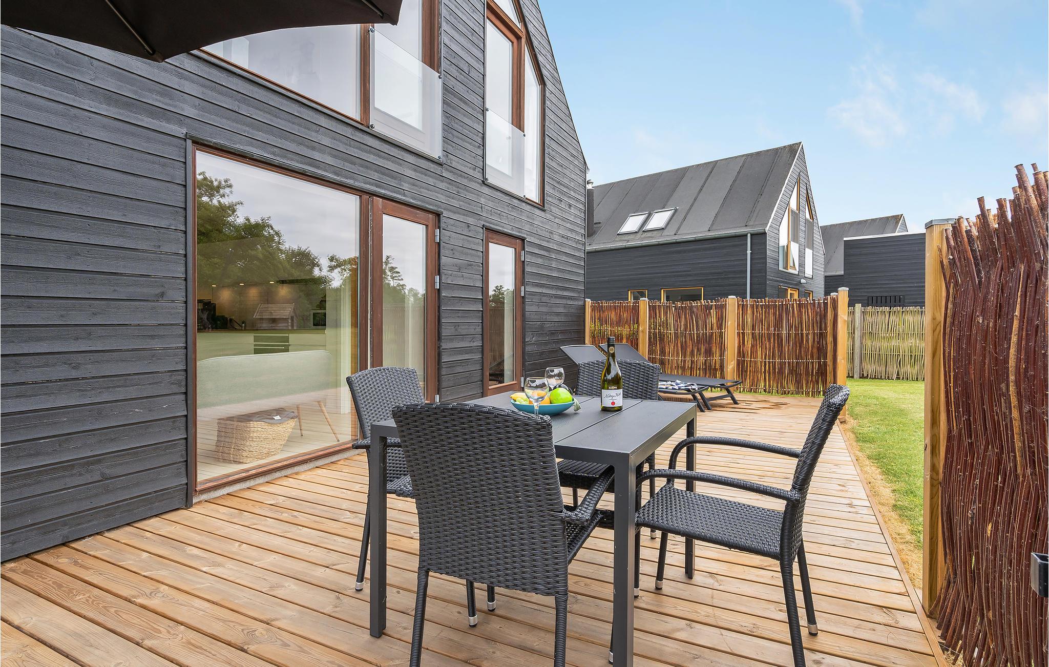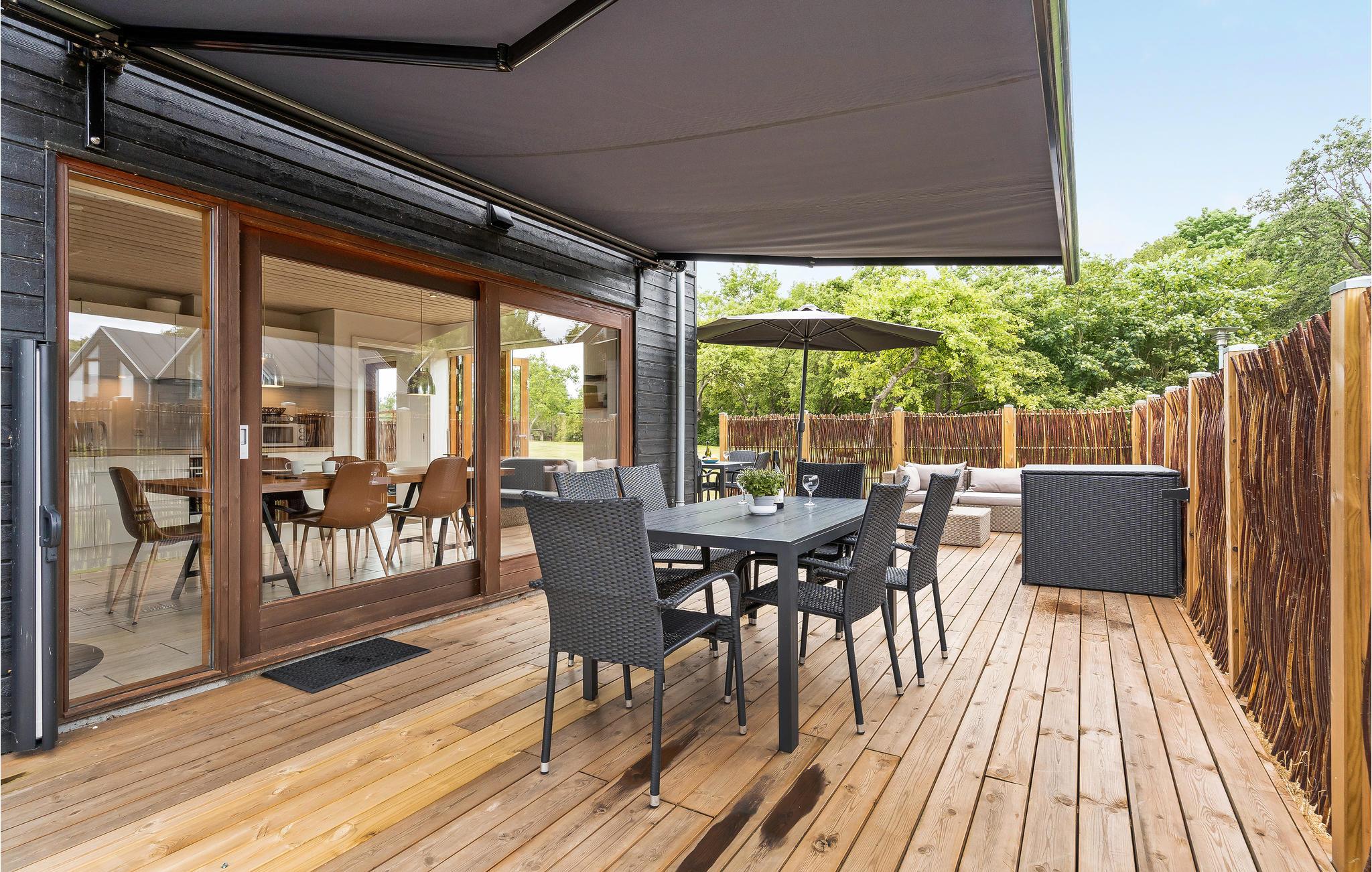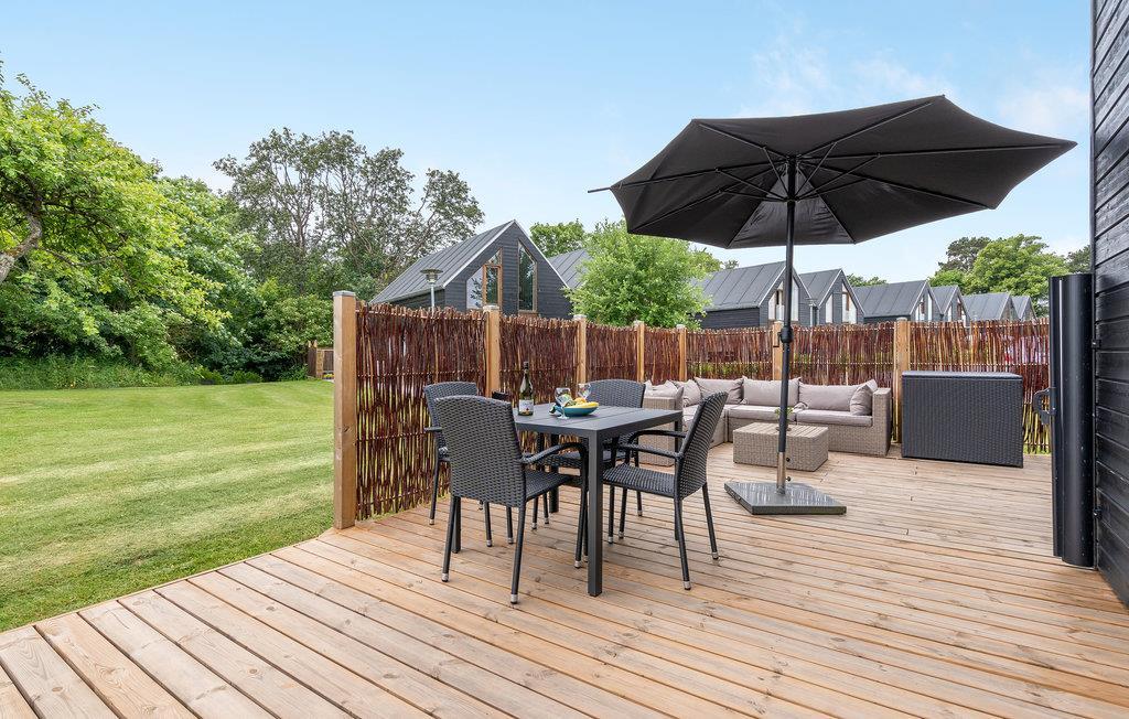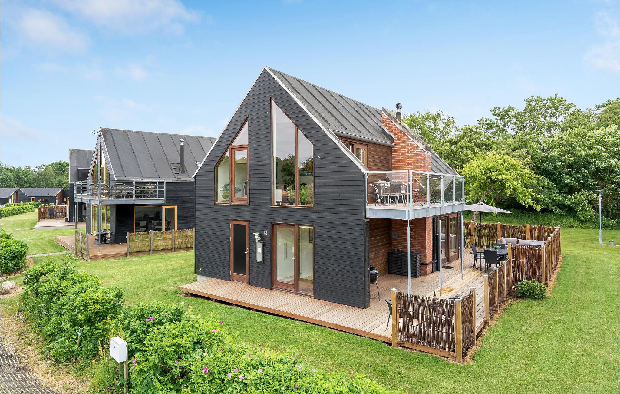 Arkitekttegnet feriehus med panoramaudsigt og spabad i Kongsnæs Feriecenter ved Stubbekøbing.