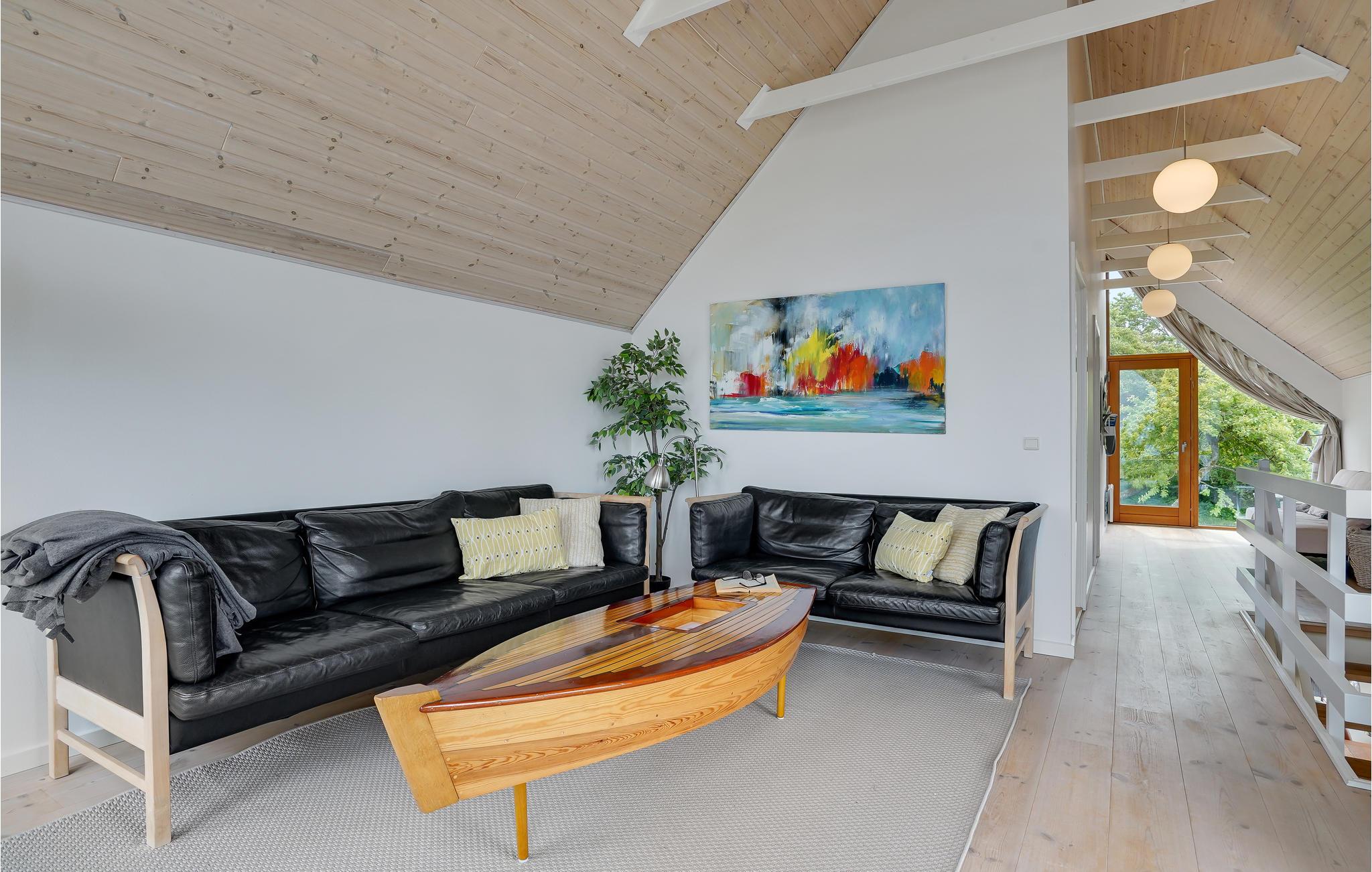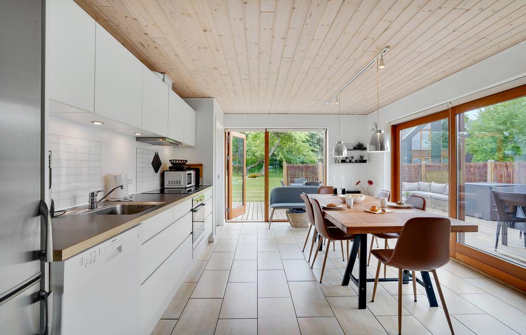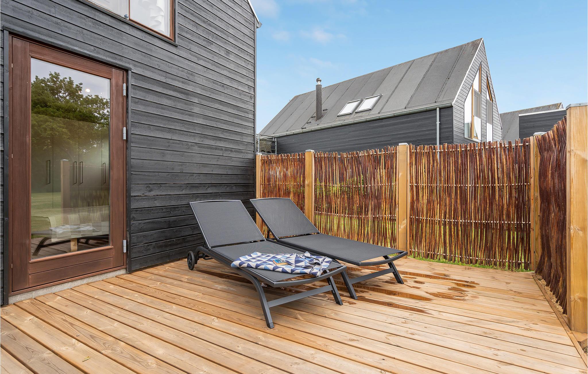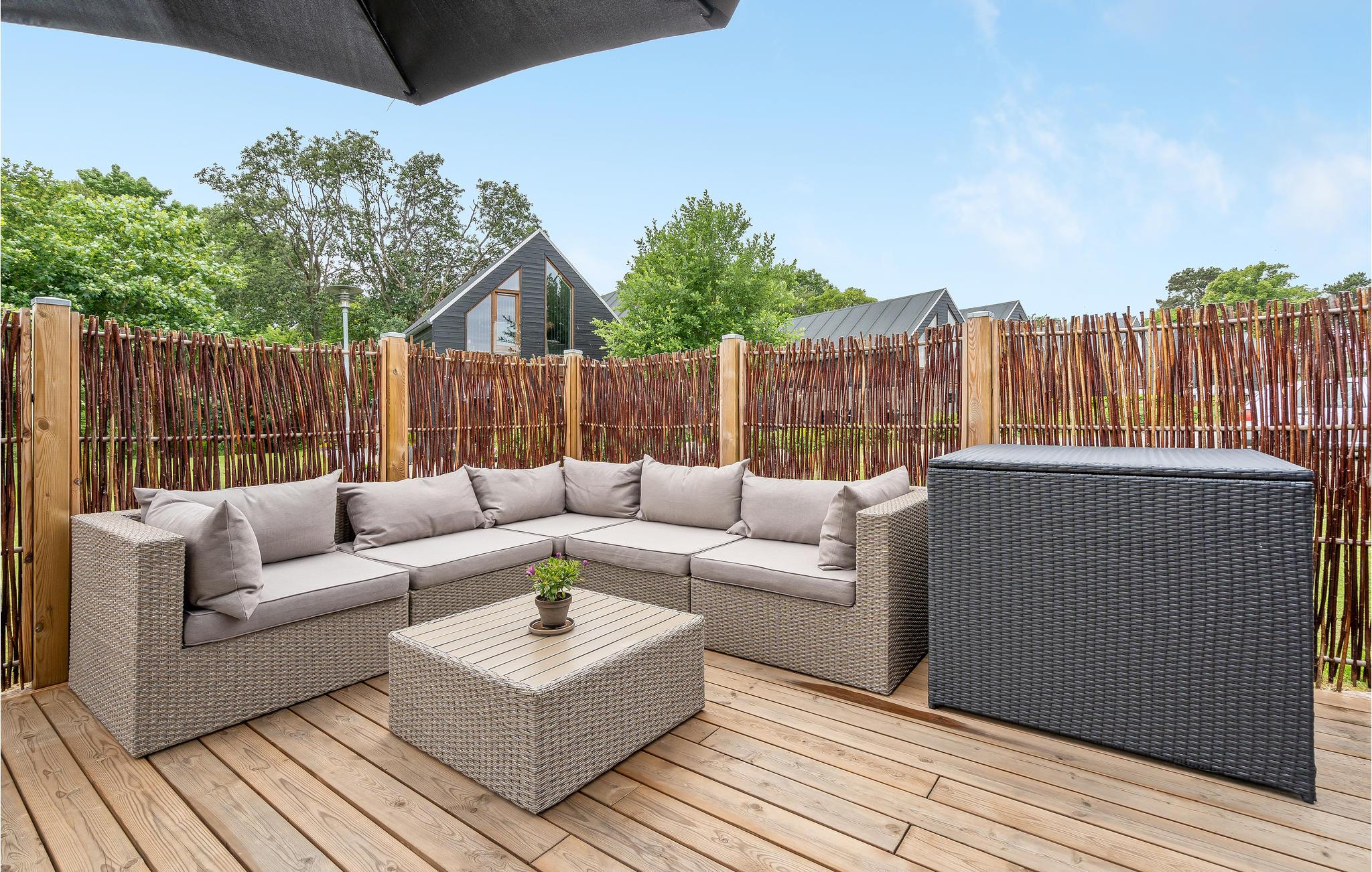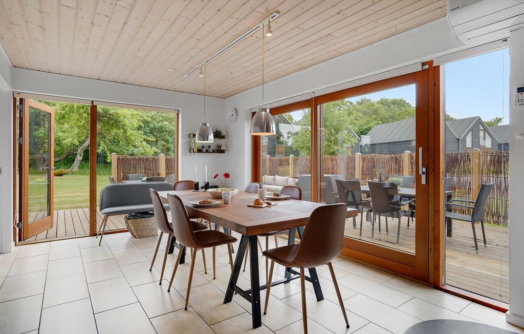 Arkitekttegnet feriehus med panoramaudsigt og spabad i Kongsnæs Feriecenter ved Stubbekøbing.