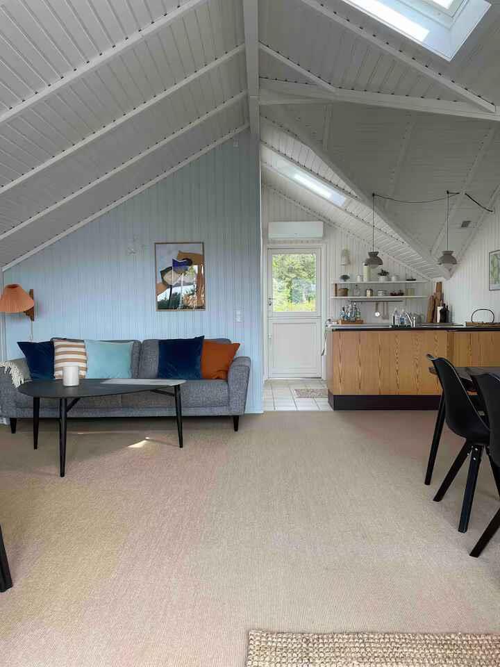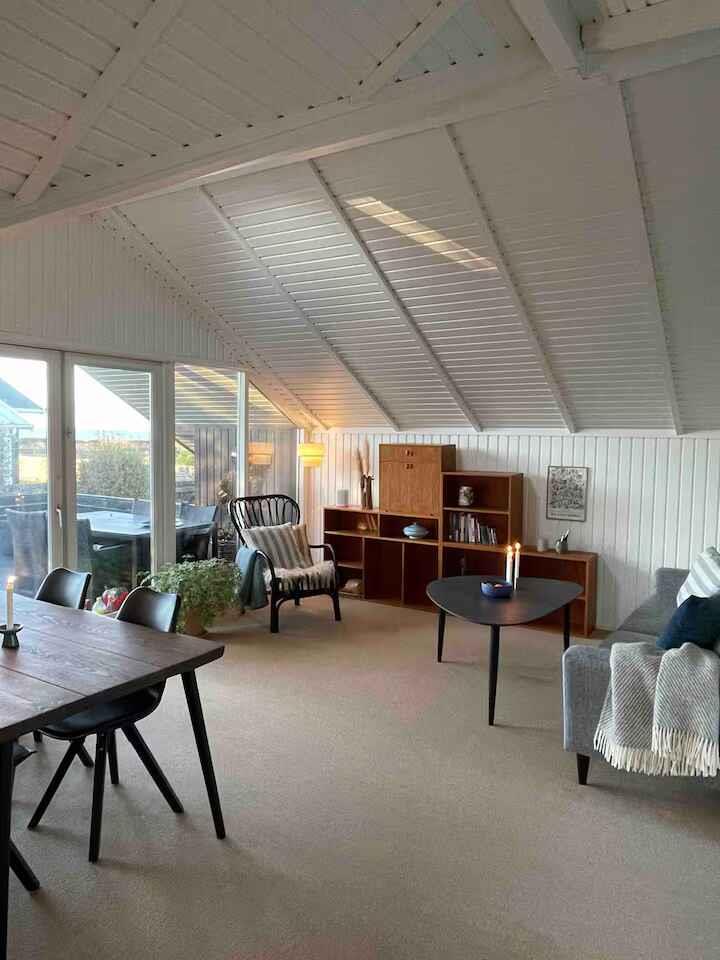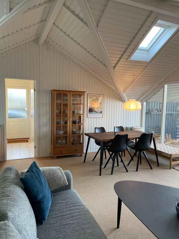 Sommerhus med smuk havudsigt og rolig sandstrand kun få skridt væk, perfekt til afslapning og samvær.